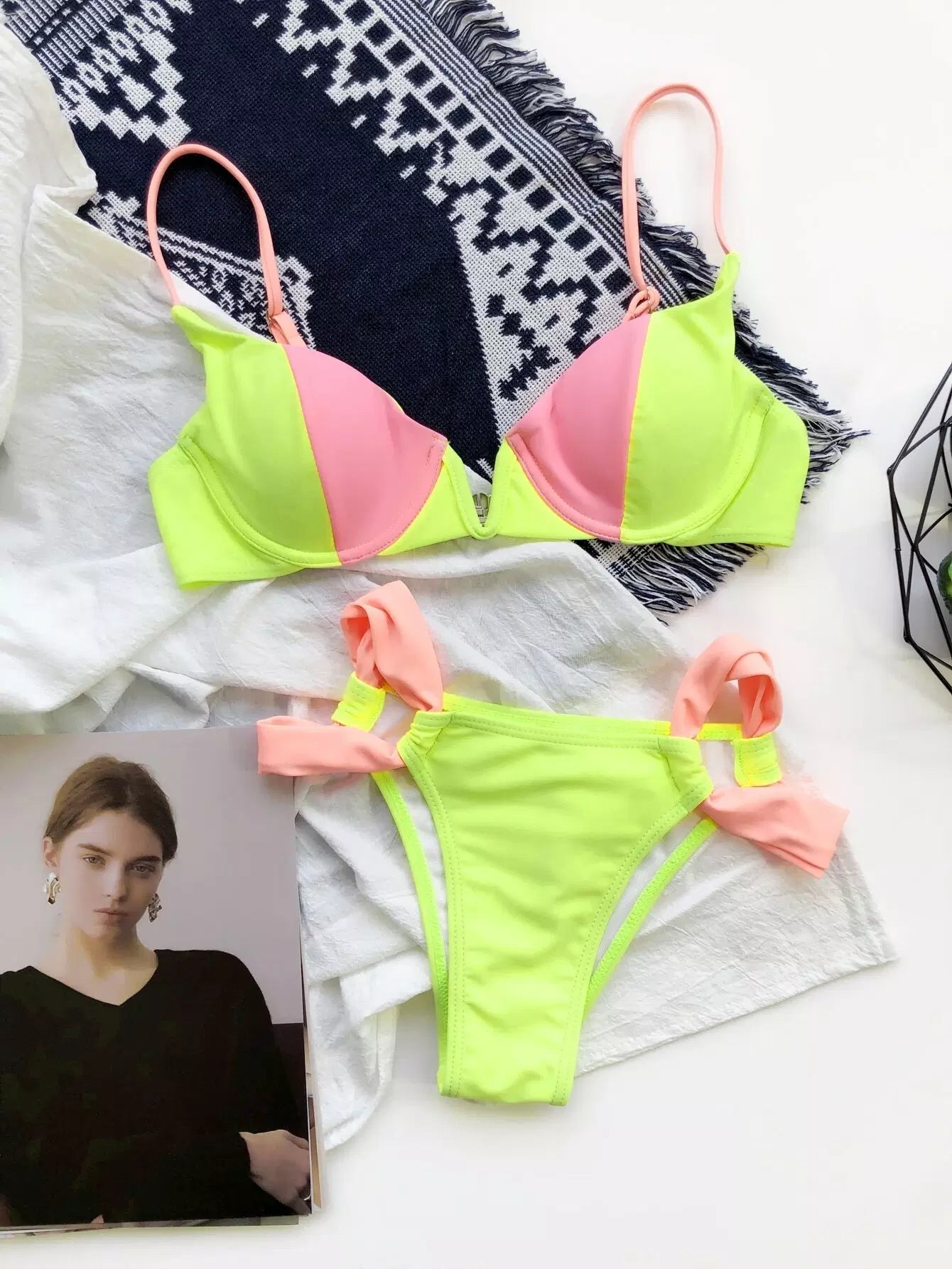 بدلة سباحة بيكيني سلكية ملونة على شكل حرف V سلكية على شكل حرف V