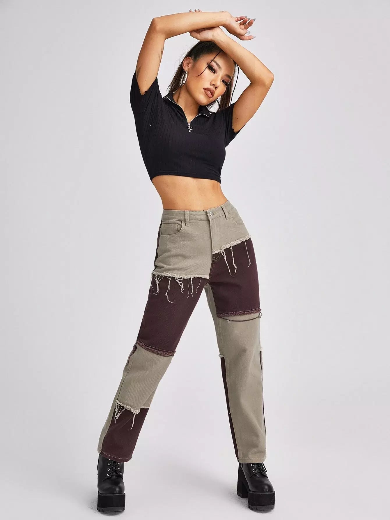 بنطال جينز قصير بحواف ملونة بحواف ملونة