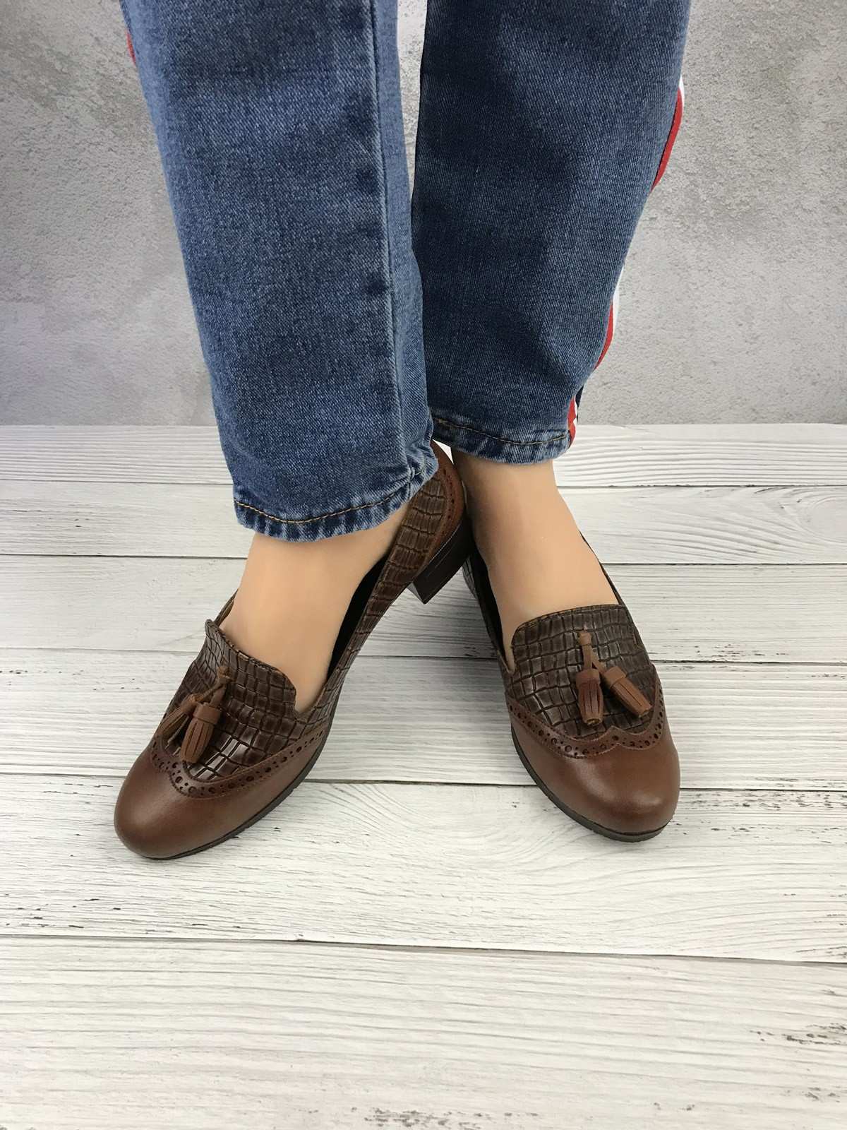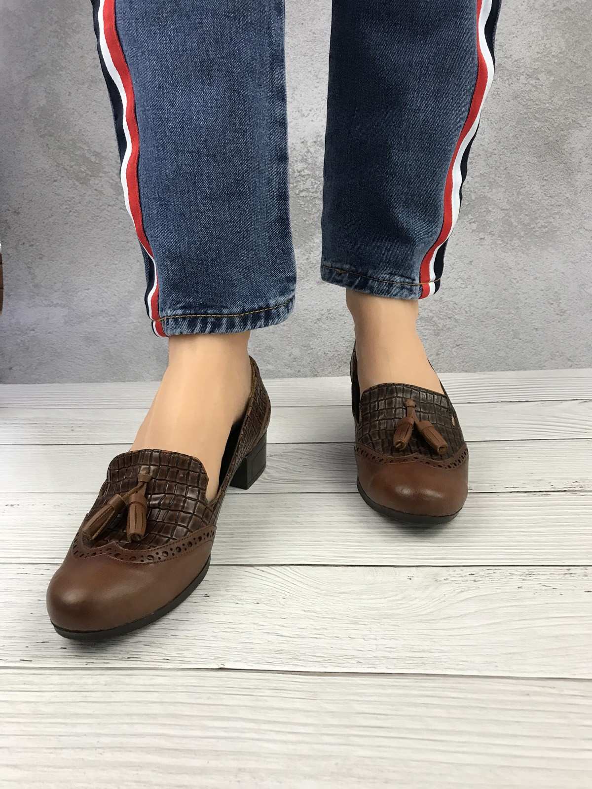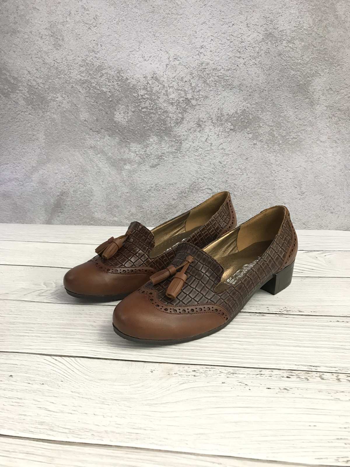 حذاء طبي مريح بكعب متوسط جلد الثعبان بني اللون للنساء