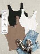 طقم ملابس صيفية من 3 قطع من كومفورتكانا، قميص داخلي سادة بدون أكمام