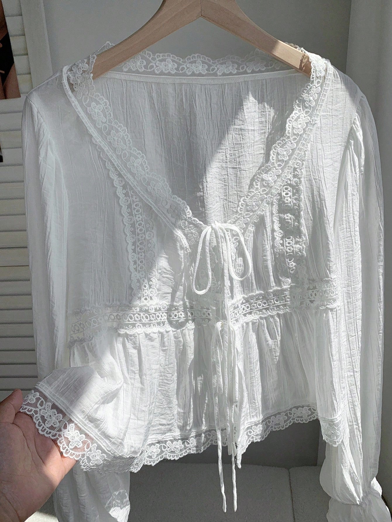 بلوزة كومفورتكانا كاجوال من الفسكوز باللون الأبيض بتفاصيل دانتيل رقيقة وحافة عادية