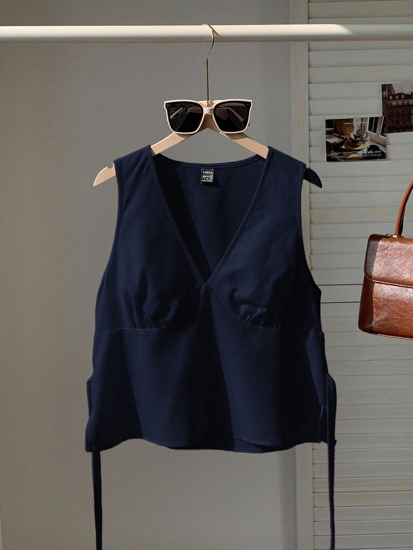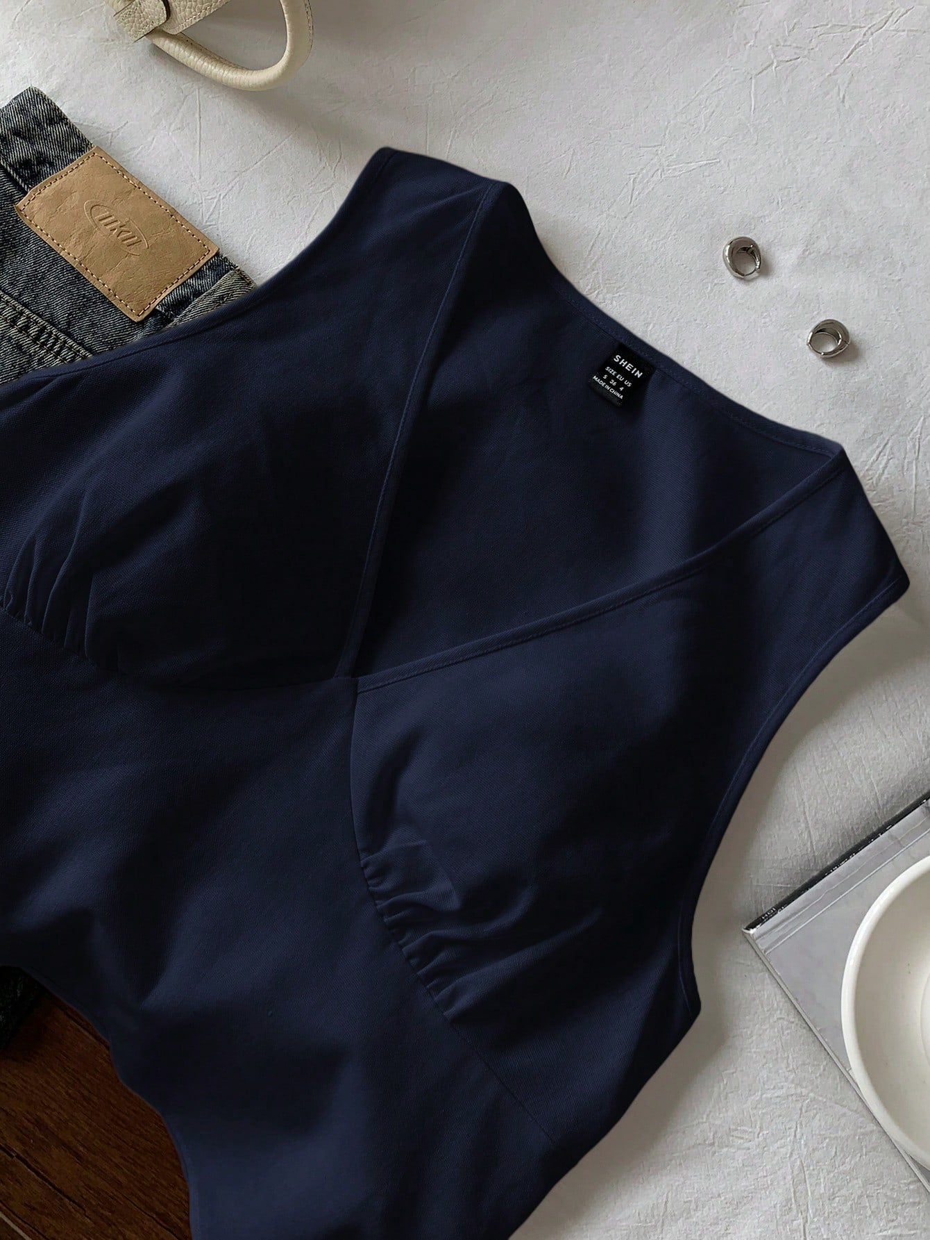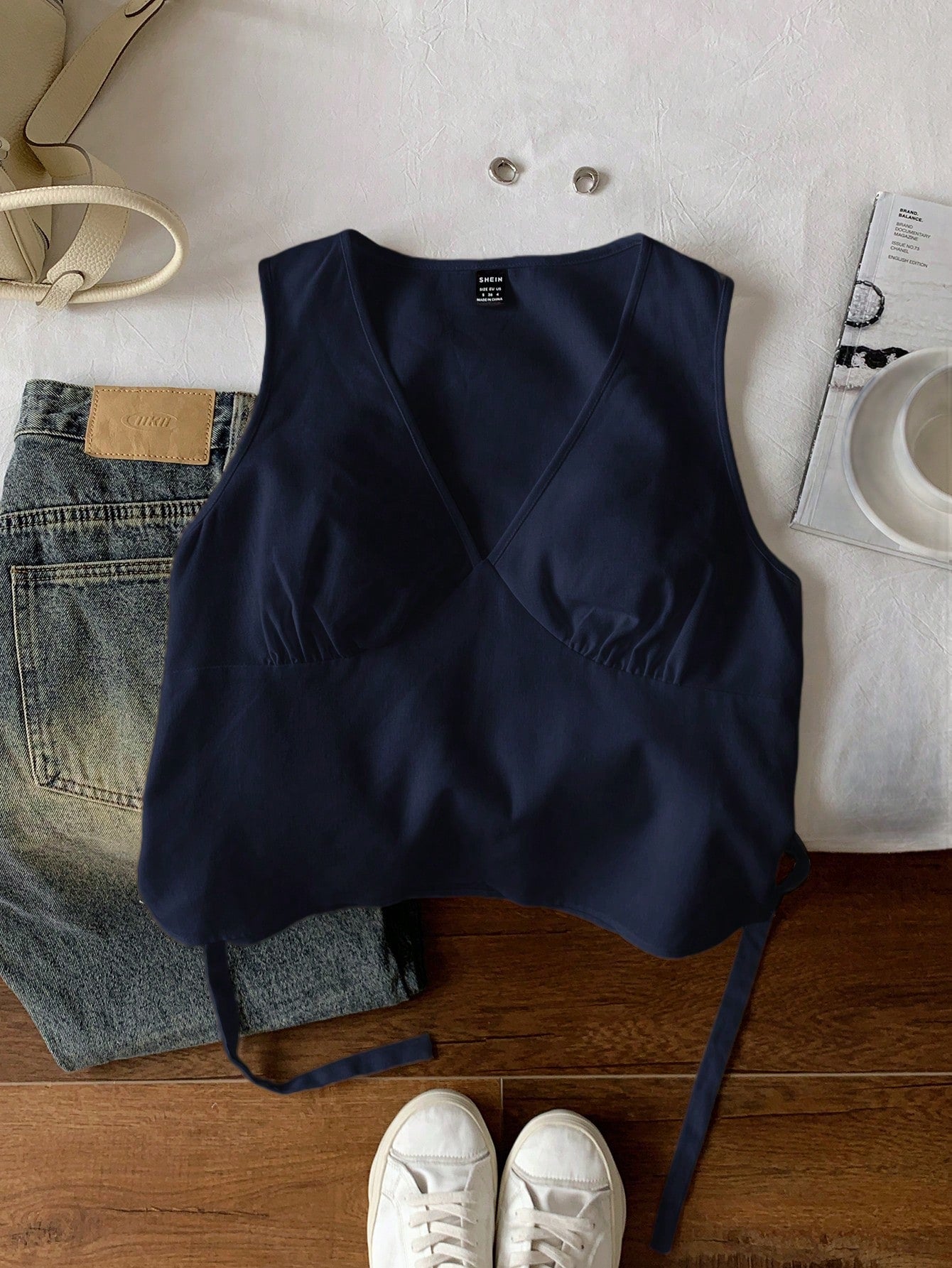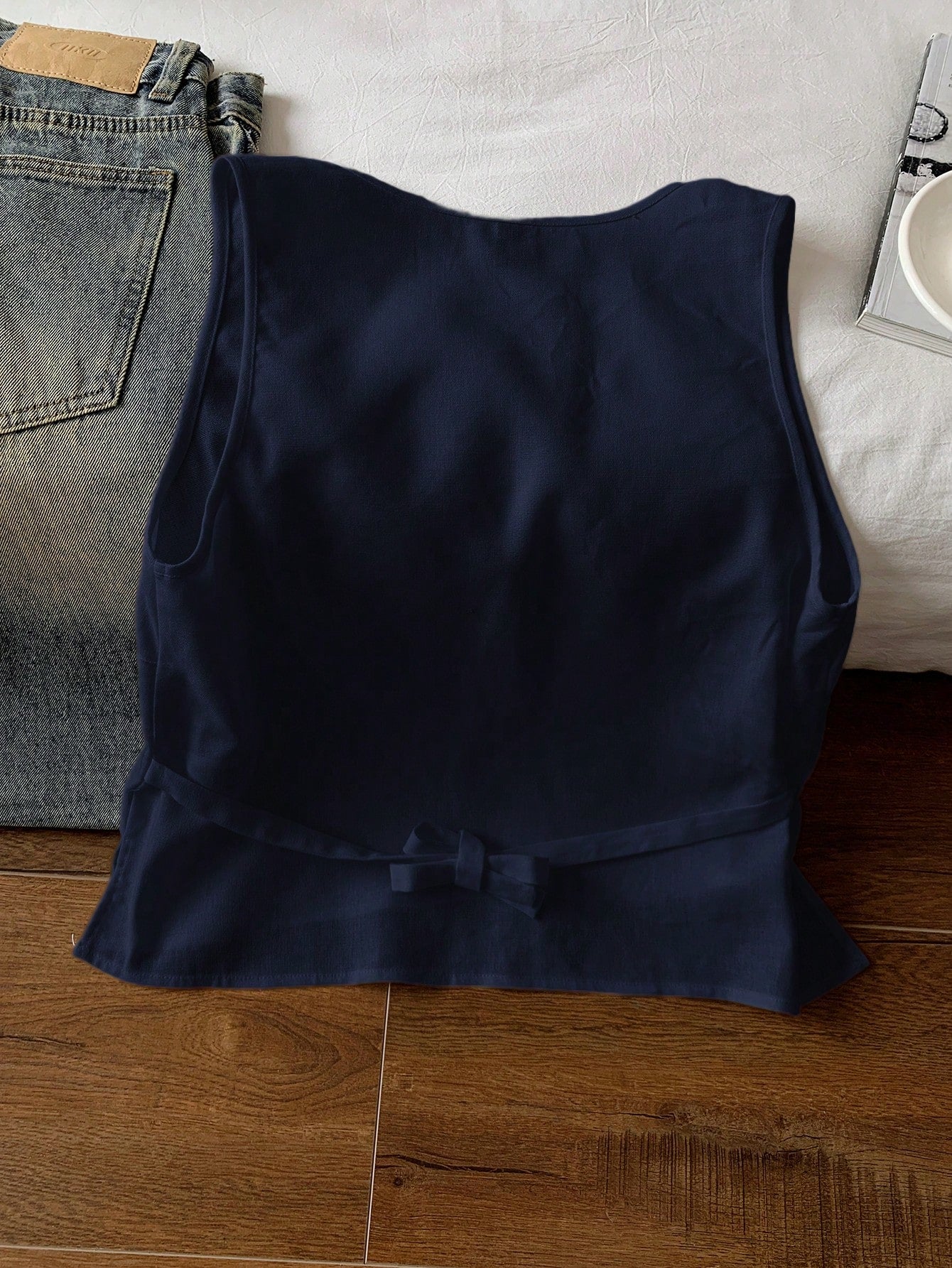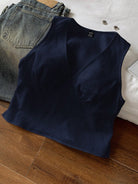 بلوزة نسائية بدون أكمام من الكتان الأزرق الداكن من كومفورتكانا