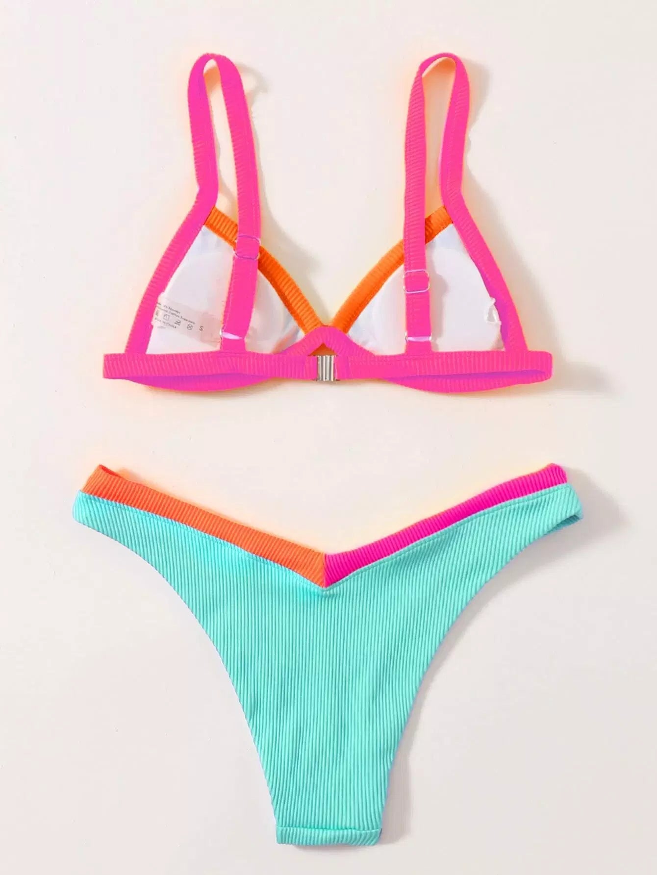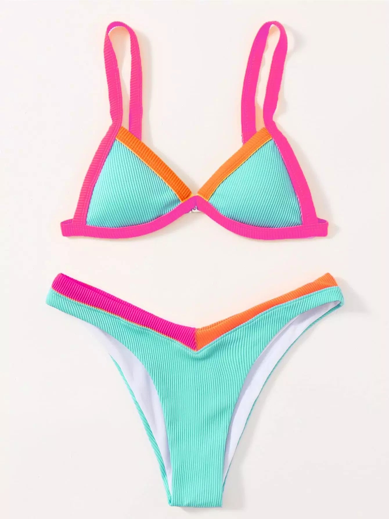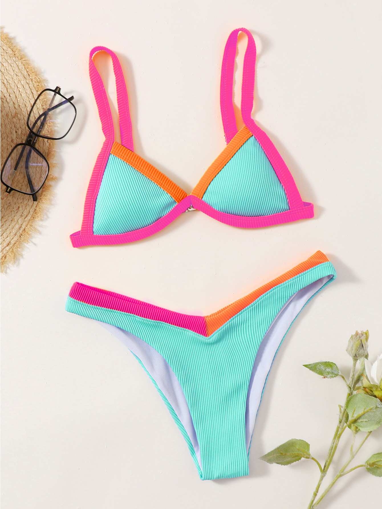 بدلة سباحة بيكيني بيكيني مثلث ضلع ملزم بلون مغاير
