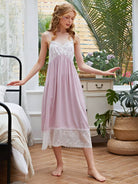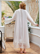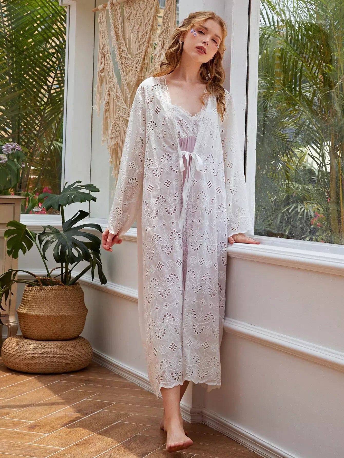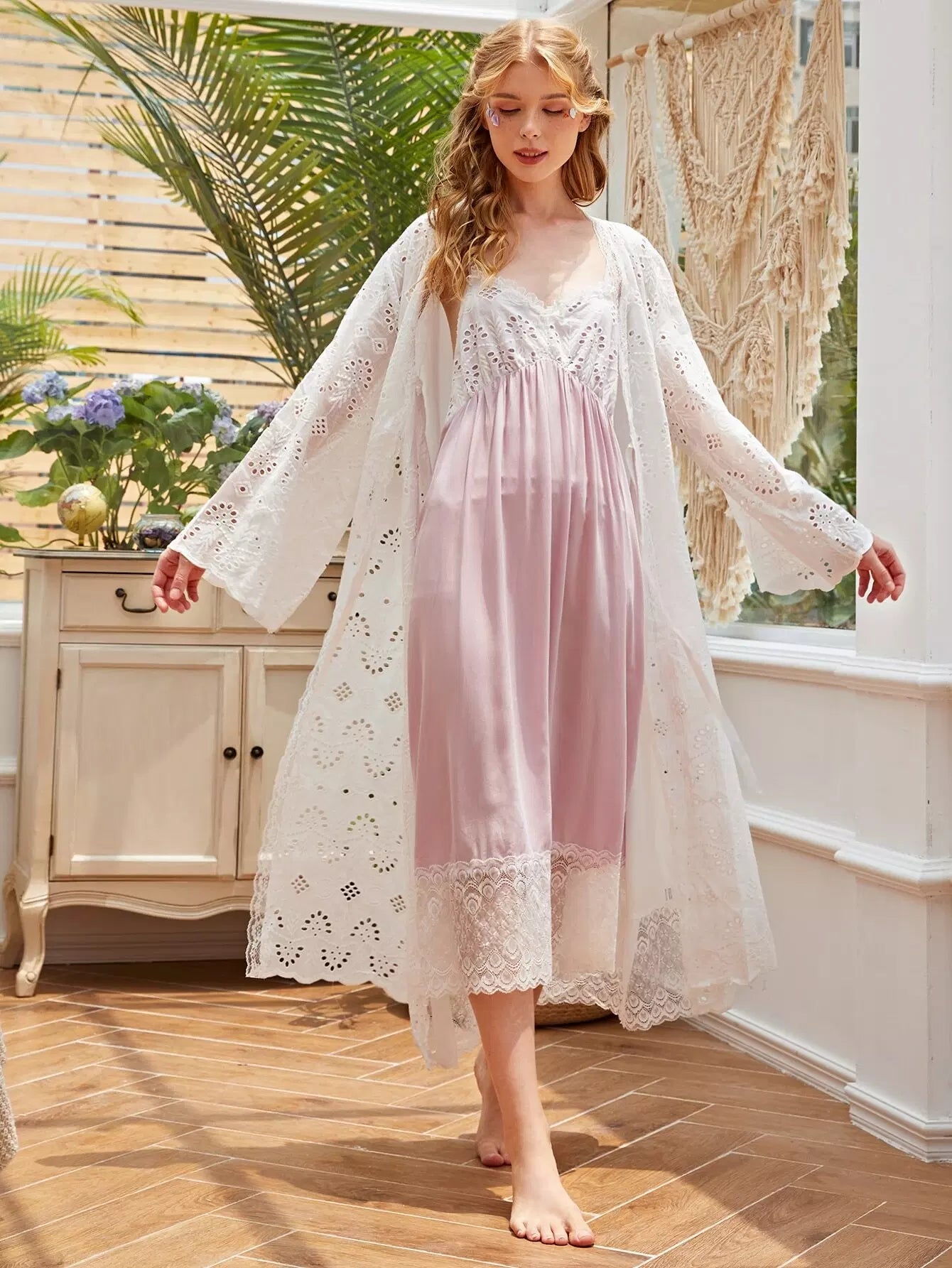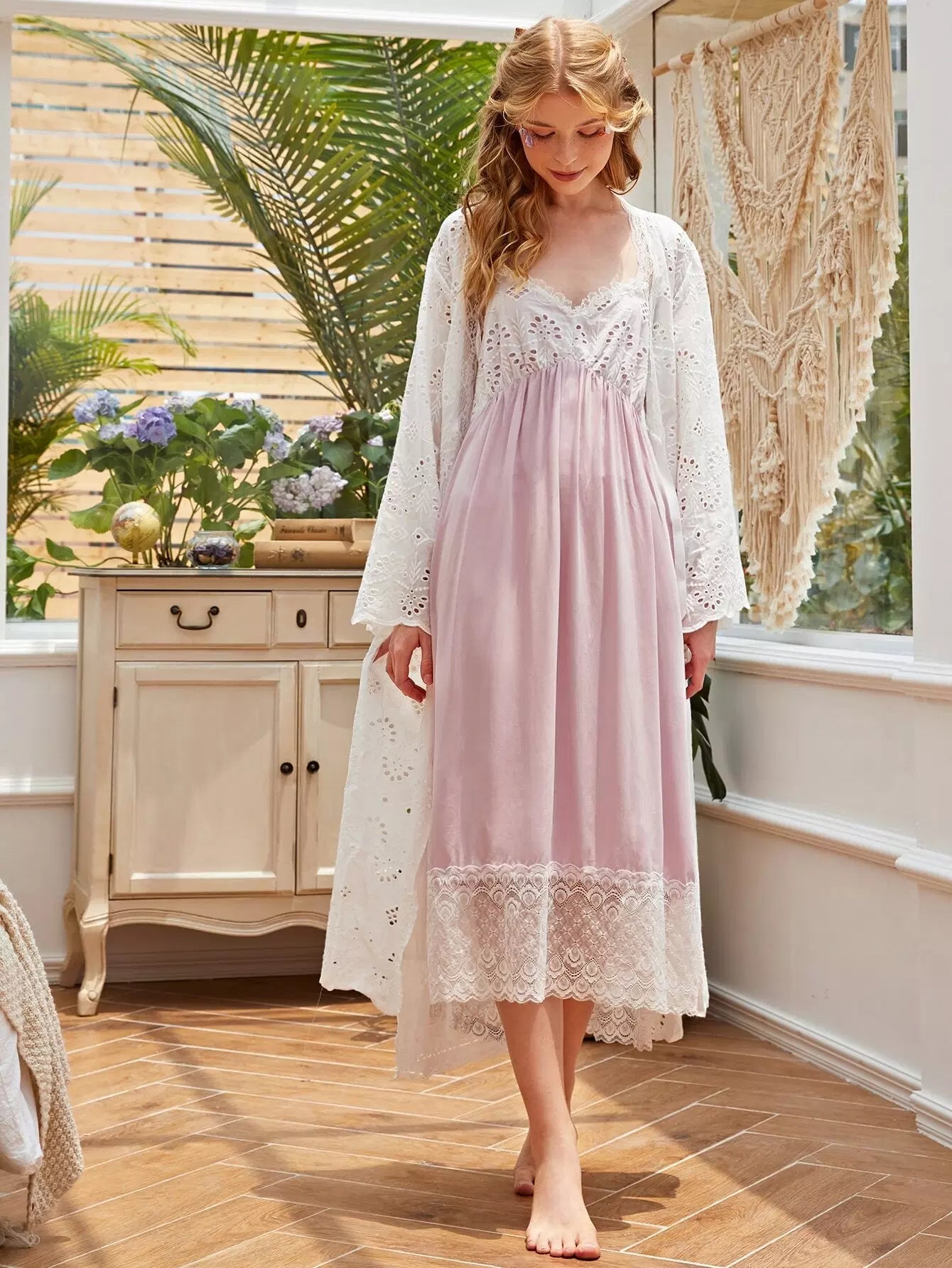 فستان نوم من الدانتيل بلون مغاير بدون أكمام من الدانتيل مع رداء نوم شيفي