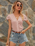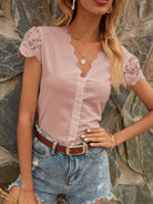 Contrast Lace Scallop V-neck Blouse