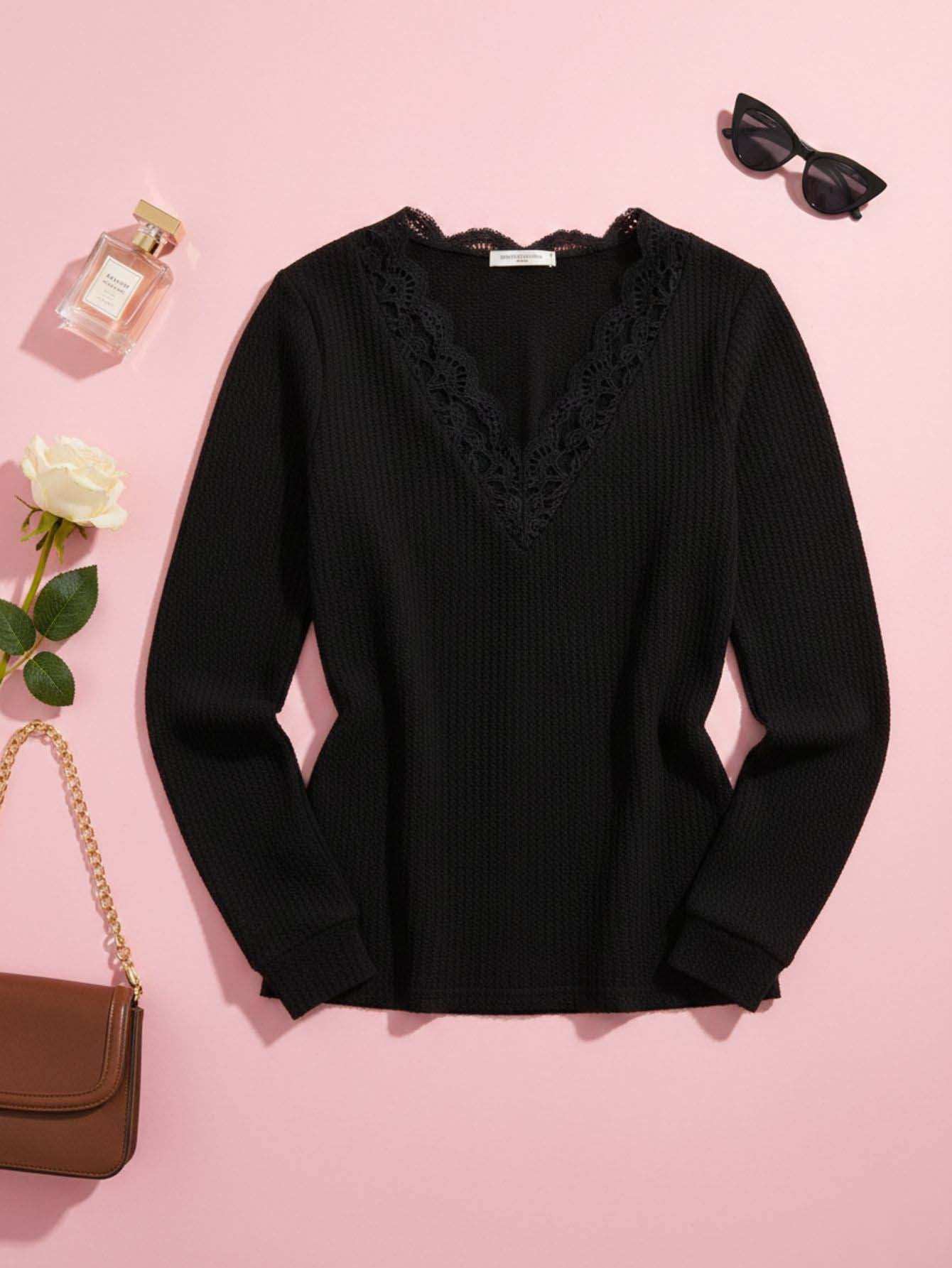 تي شيرت دانتيل بلون مغاير من الدانتيل المتشابك