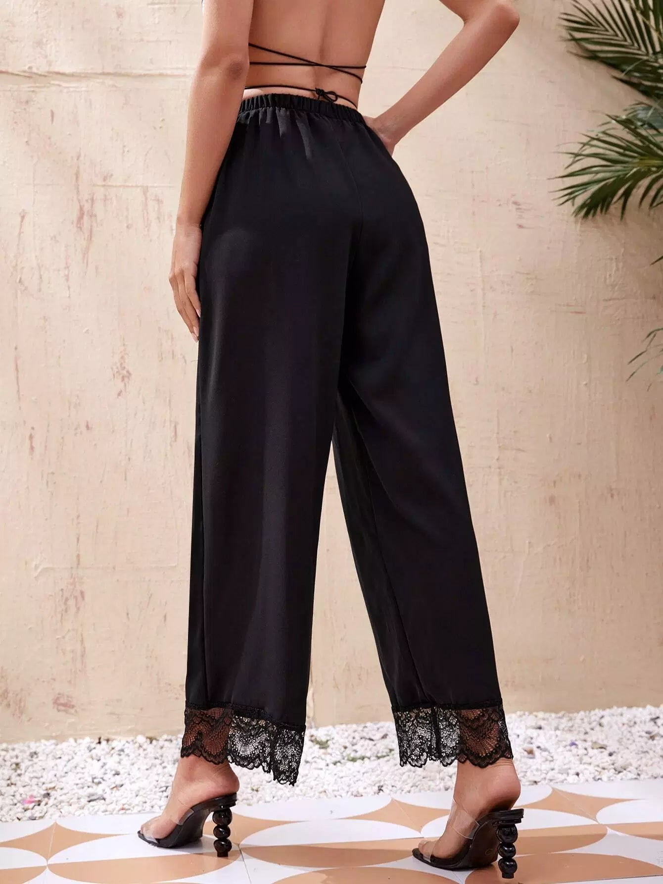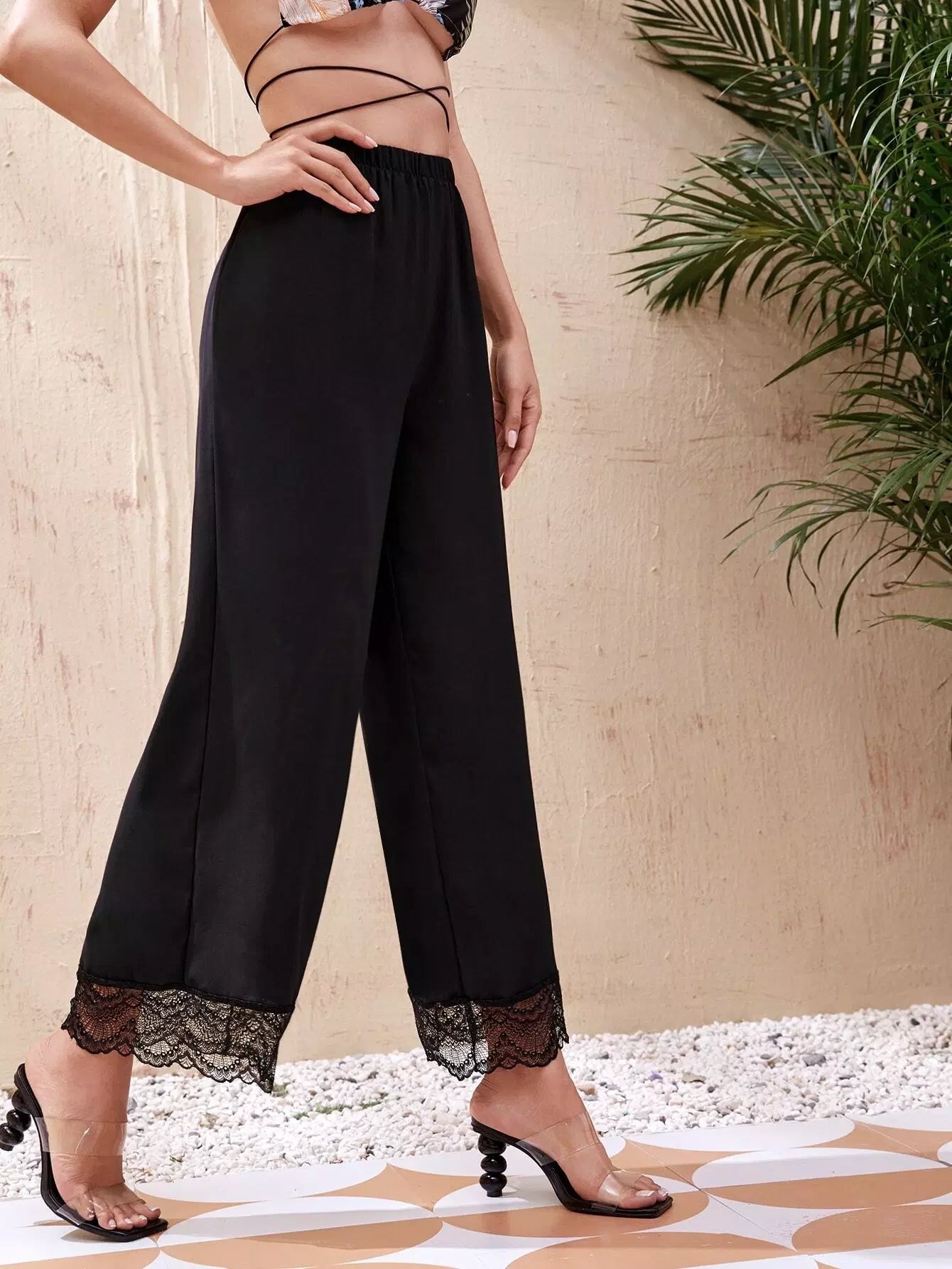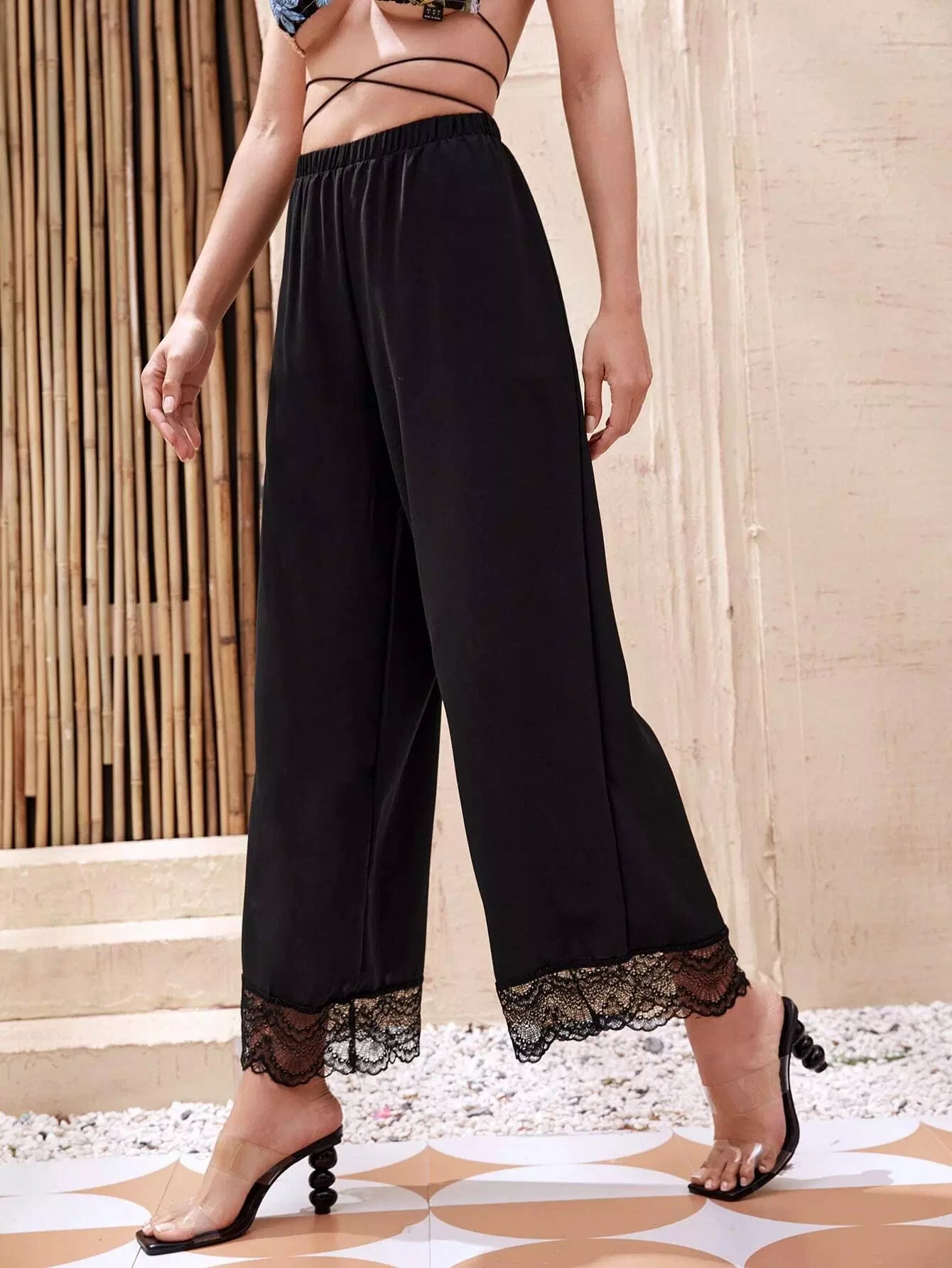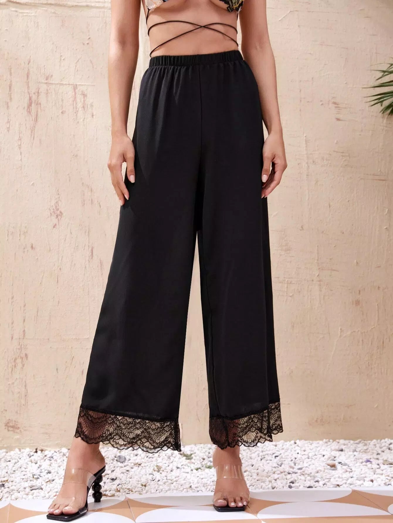 بنطال واسع الساق من الدانتيل المتباين