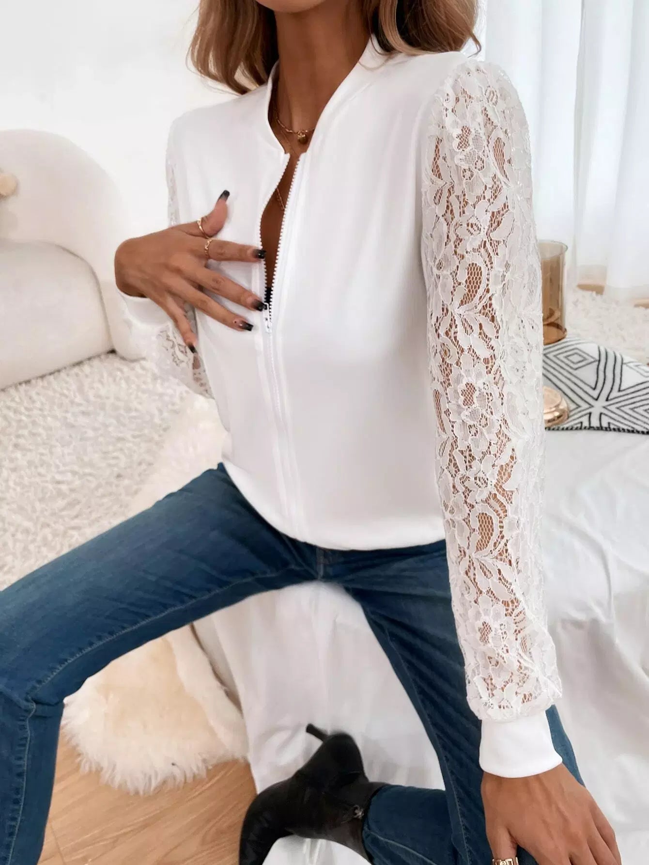 جاكيت دانتيل بسحاب بلون مغاير