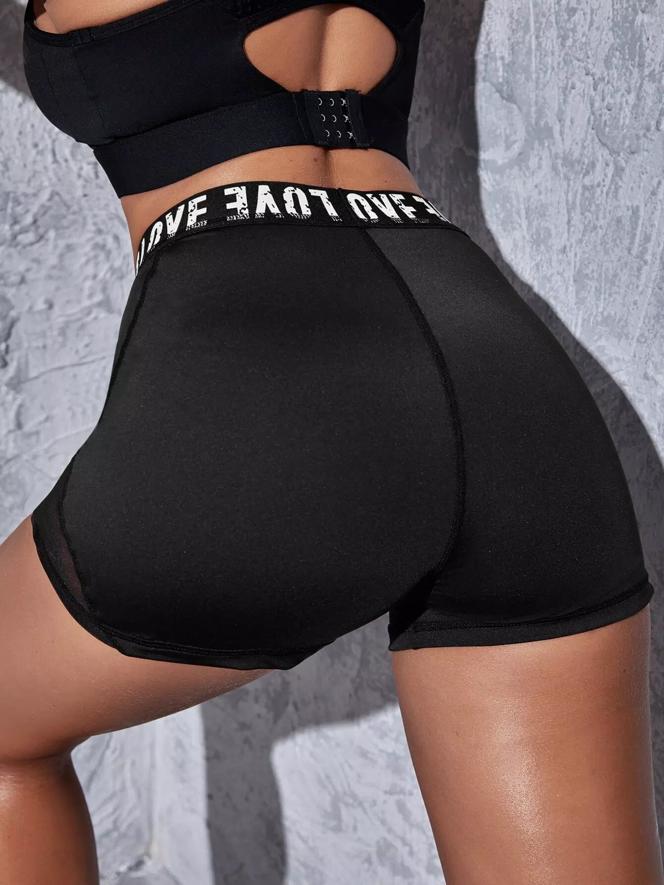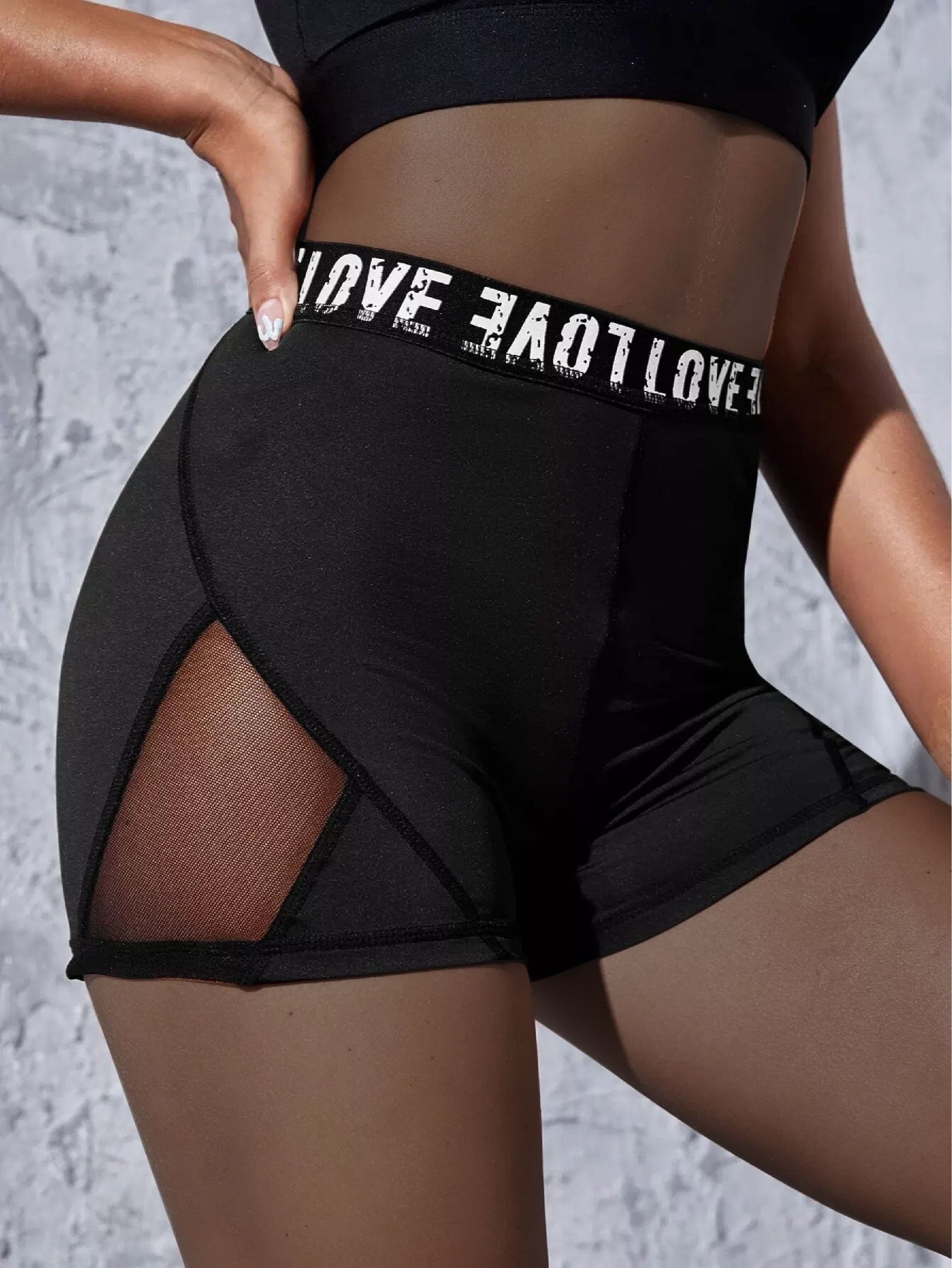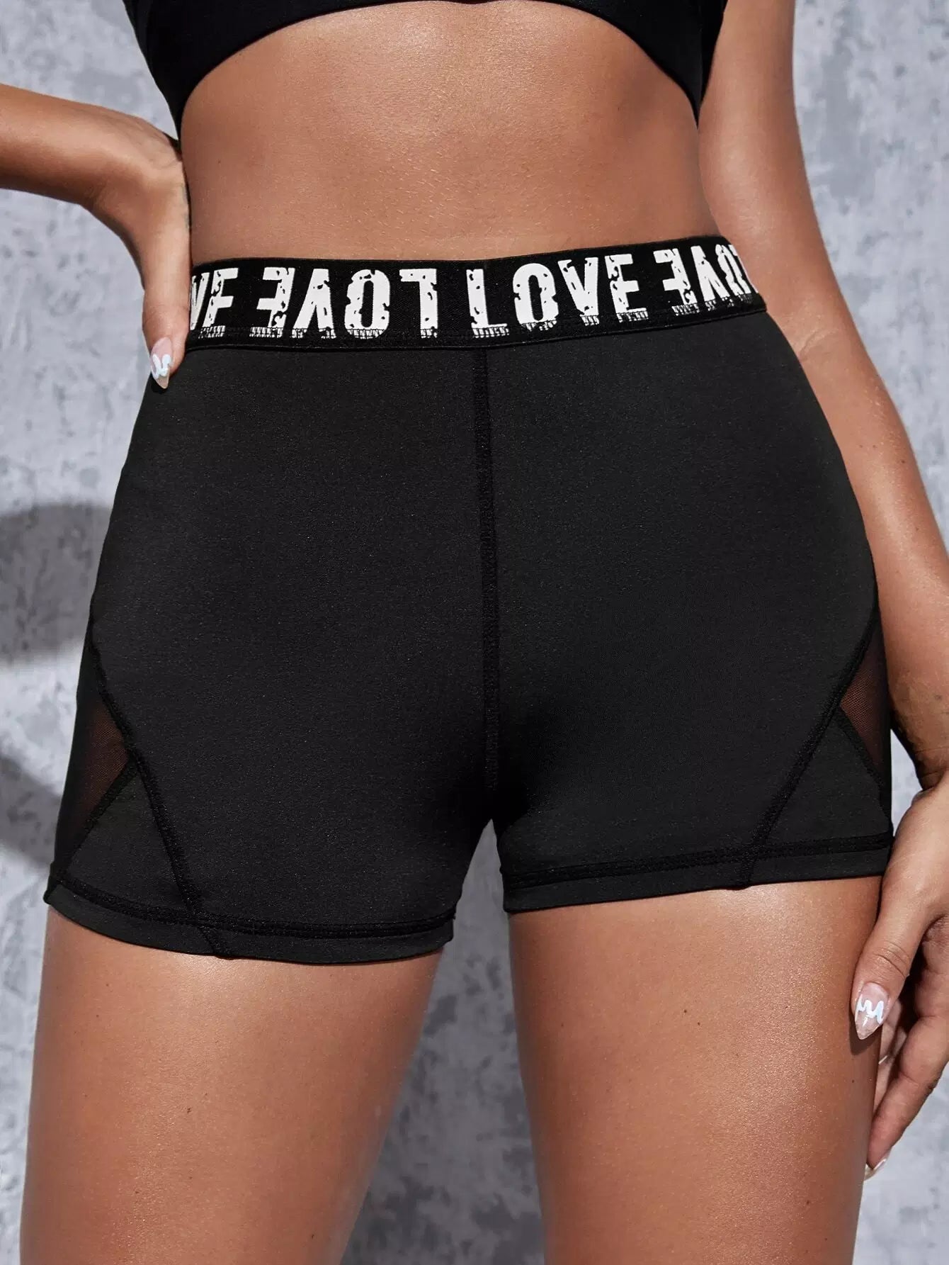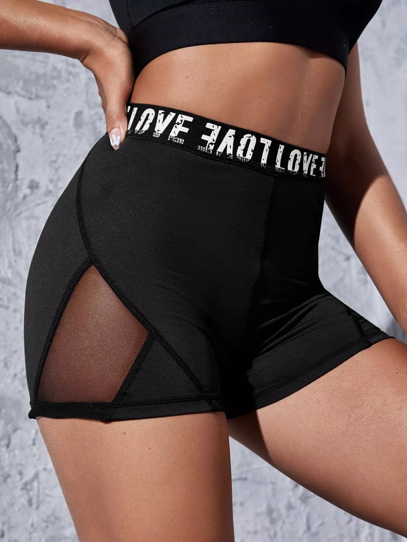 شورت رياضي بخصر شبكي بحروف متباينة على شكل حرف متباين