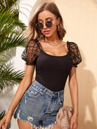 تي شيرت بأكمام شبكية منتفخة بلون مغاير