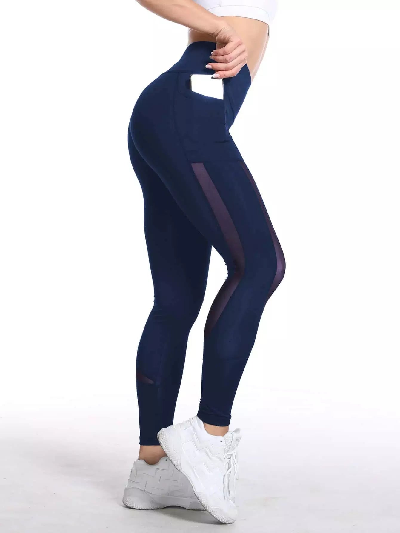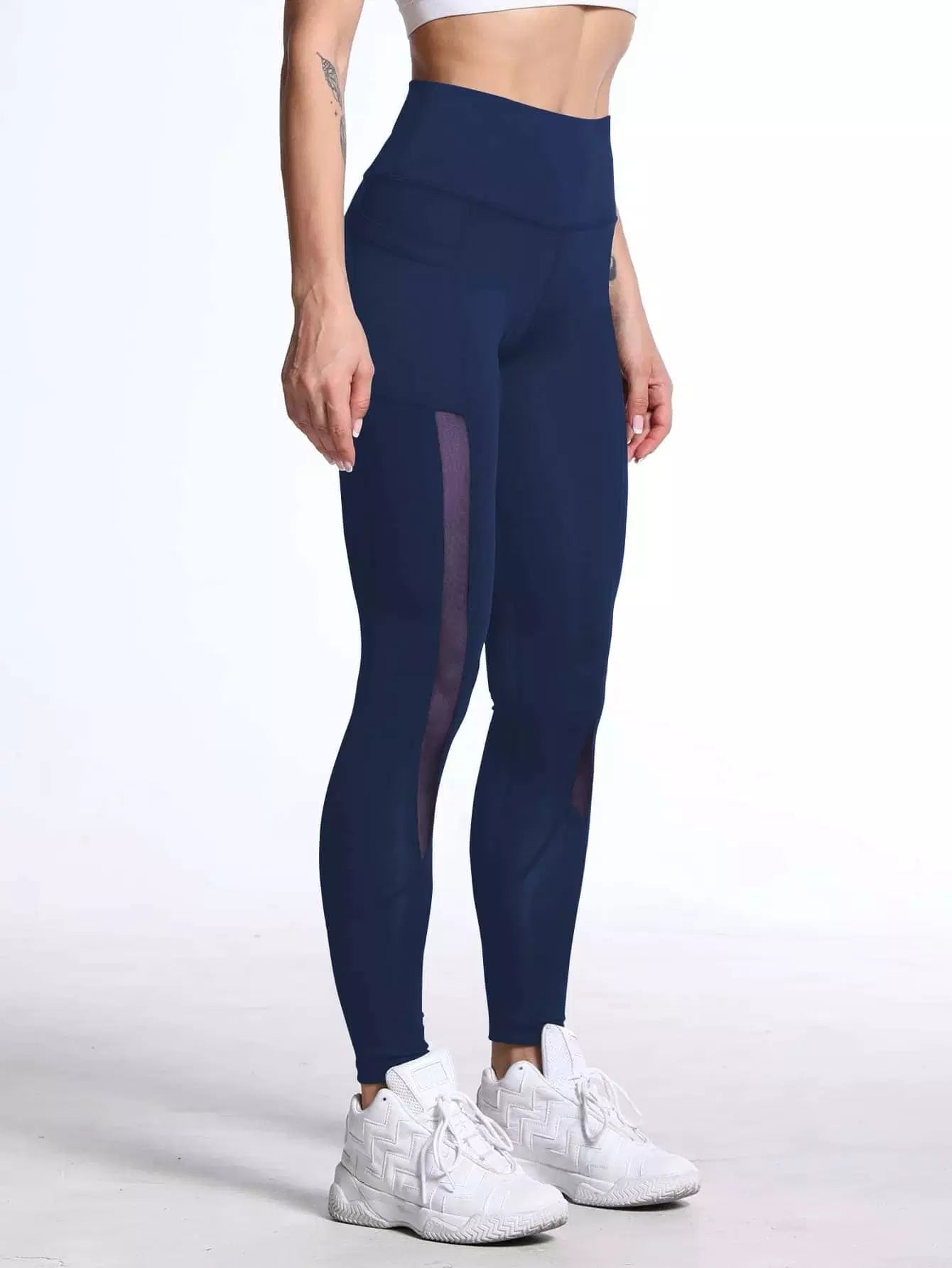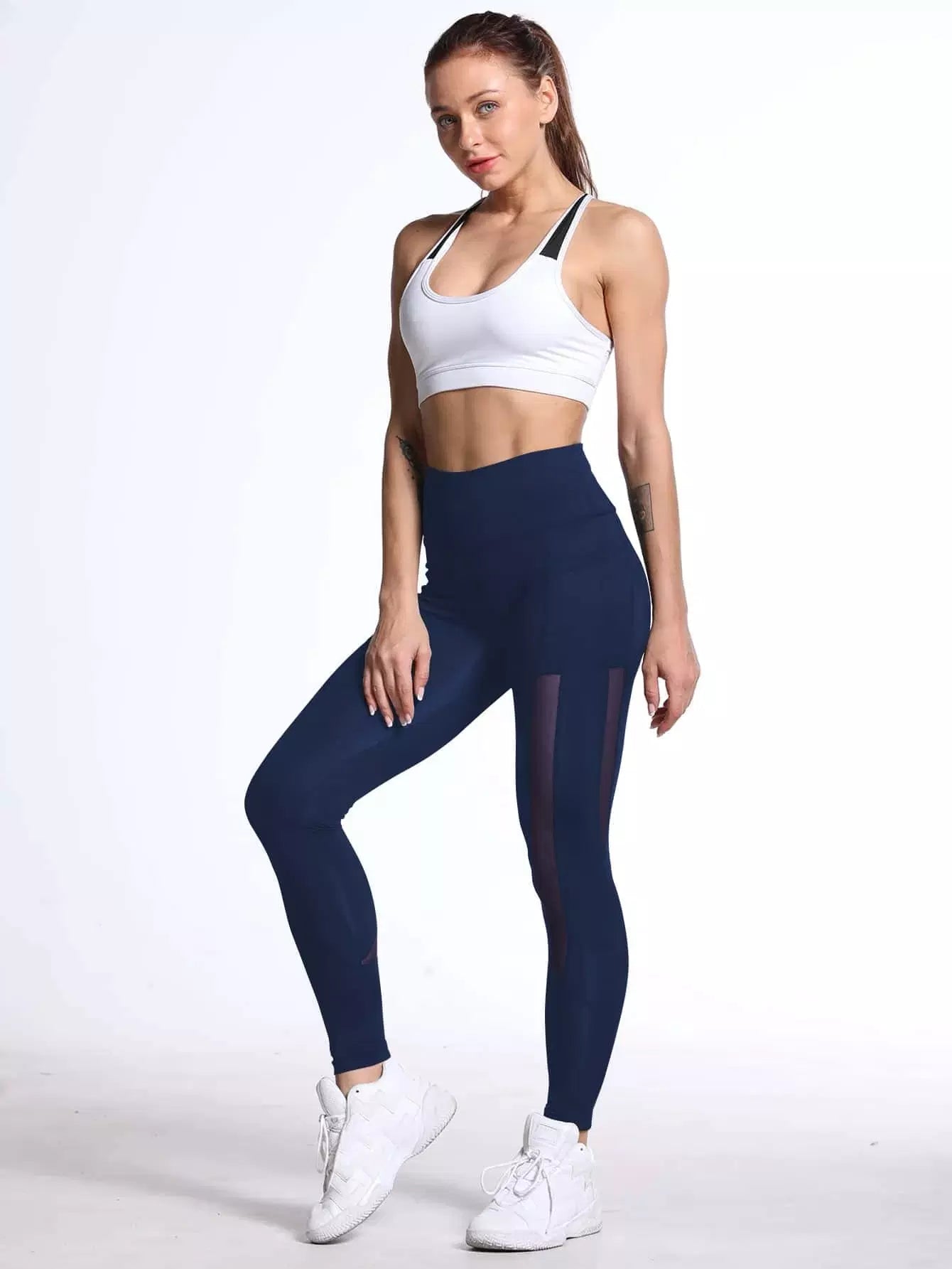 بنطلون ضيق رياضي بحزام خصر عريض شبكي بلون مغاير