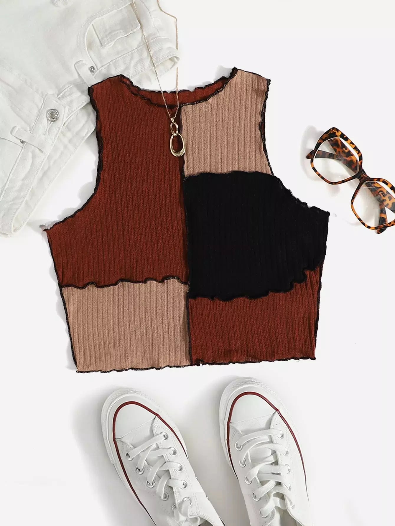 تانك بدون أكمام بدون أكمام ملون بغرزة متباينة