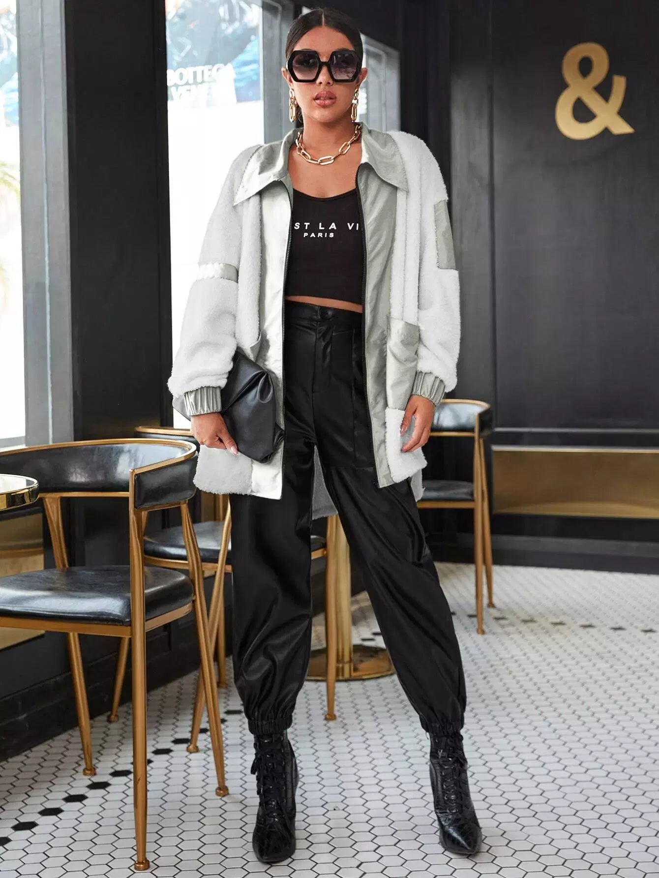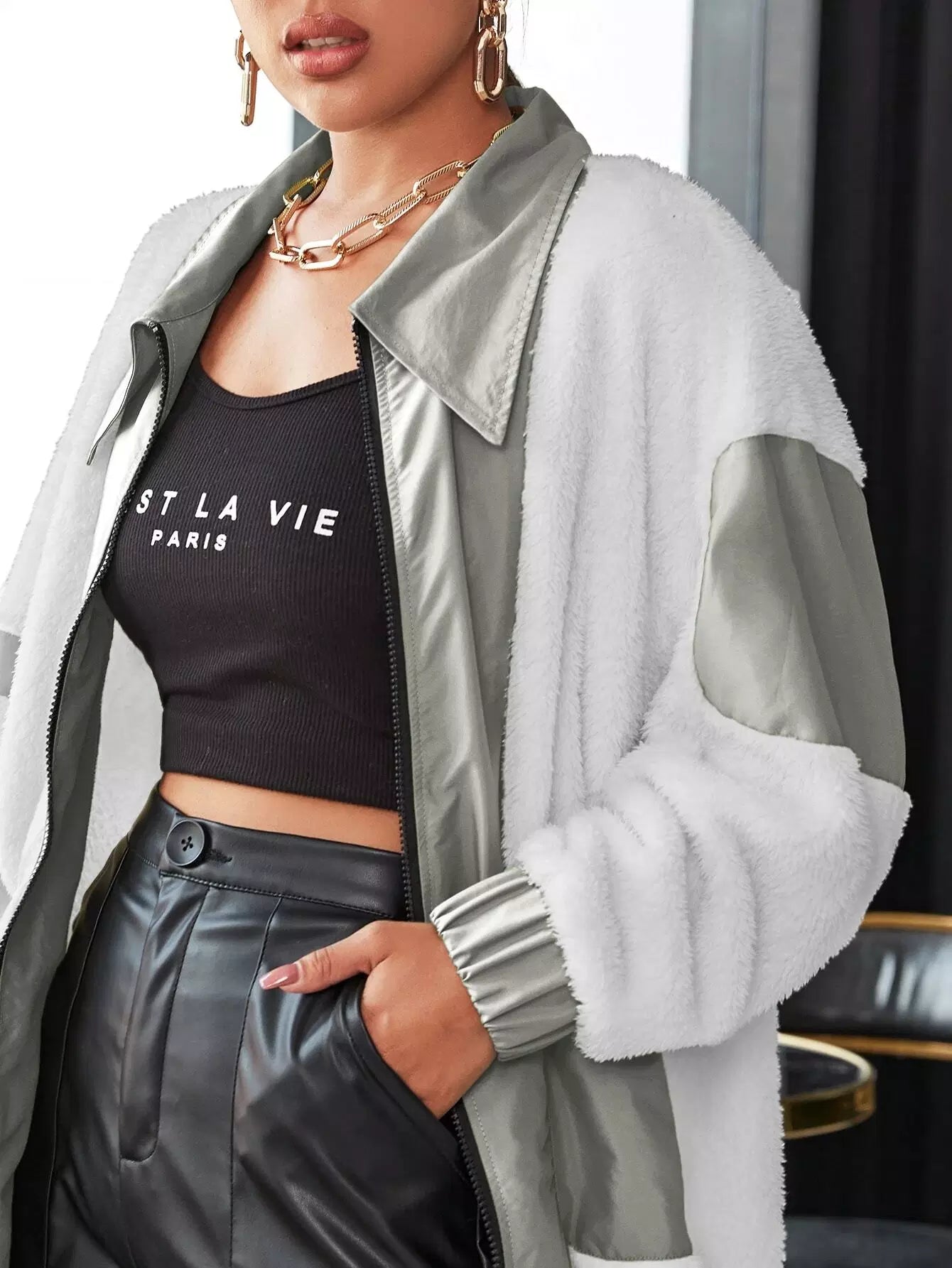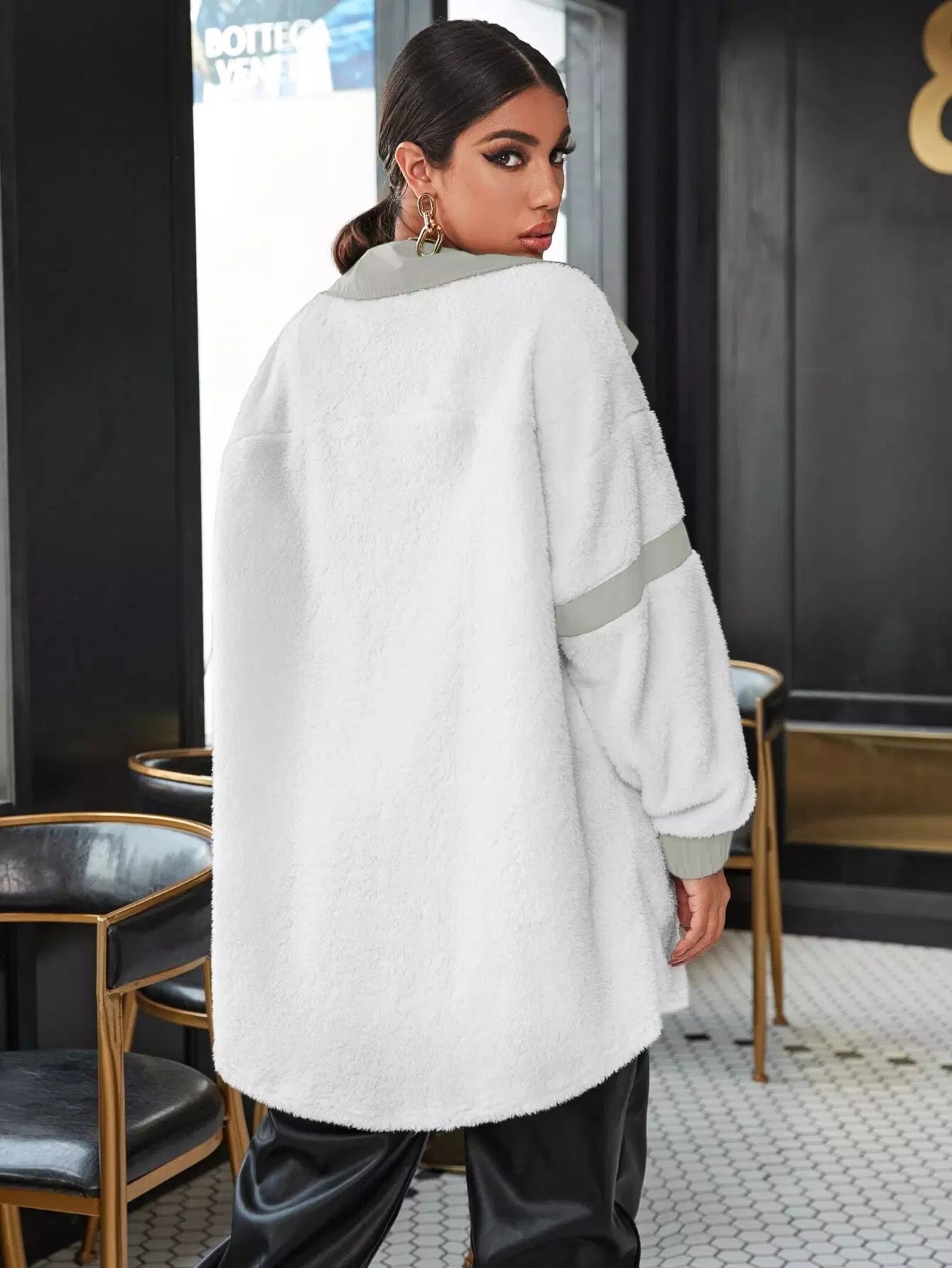 معطف تيدي بلون مغاير بسحّاب للأعلى