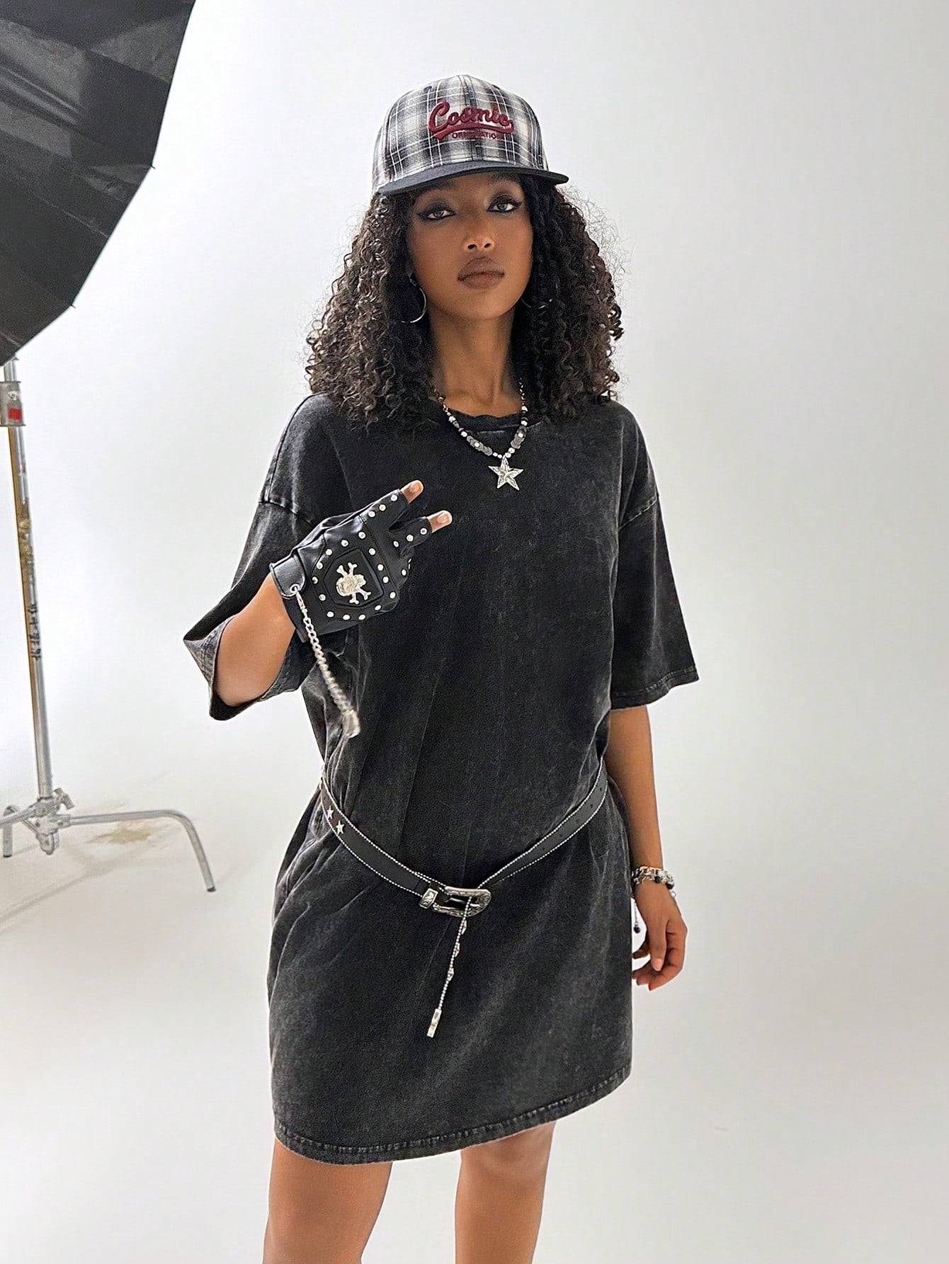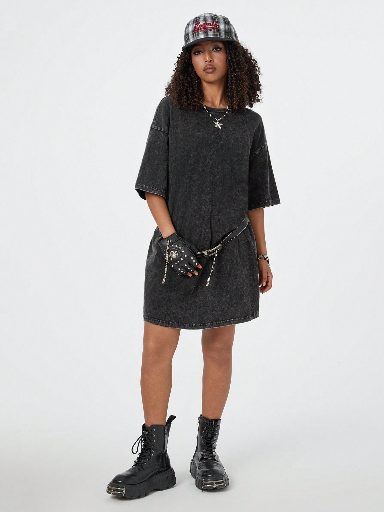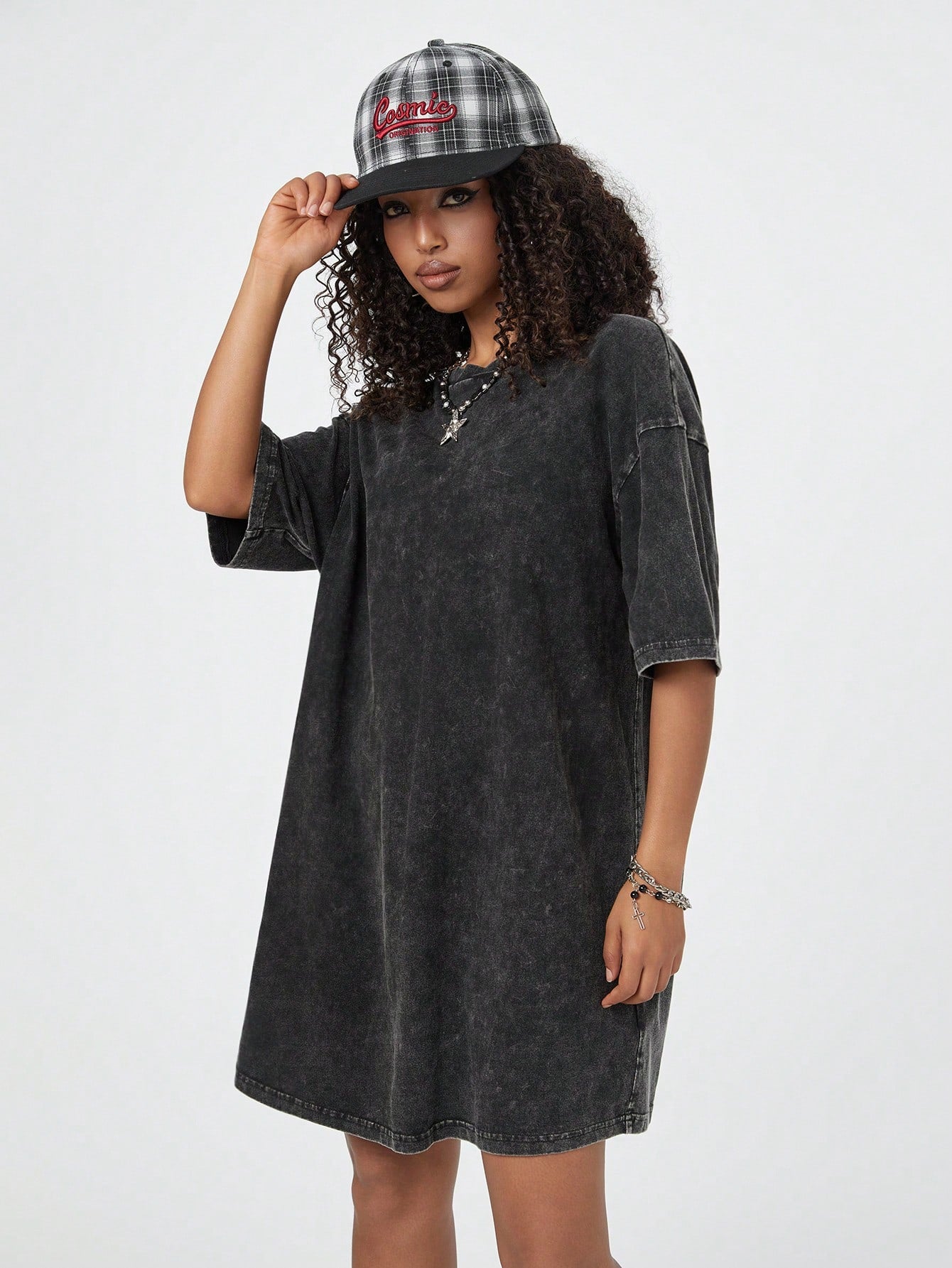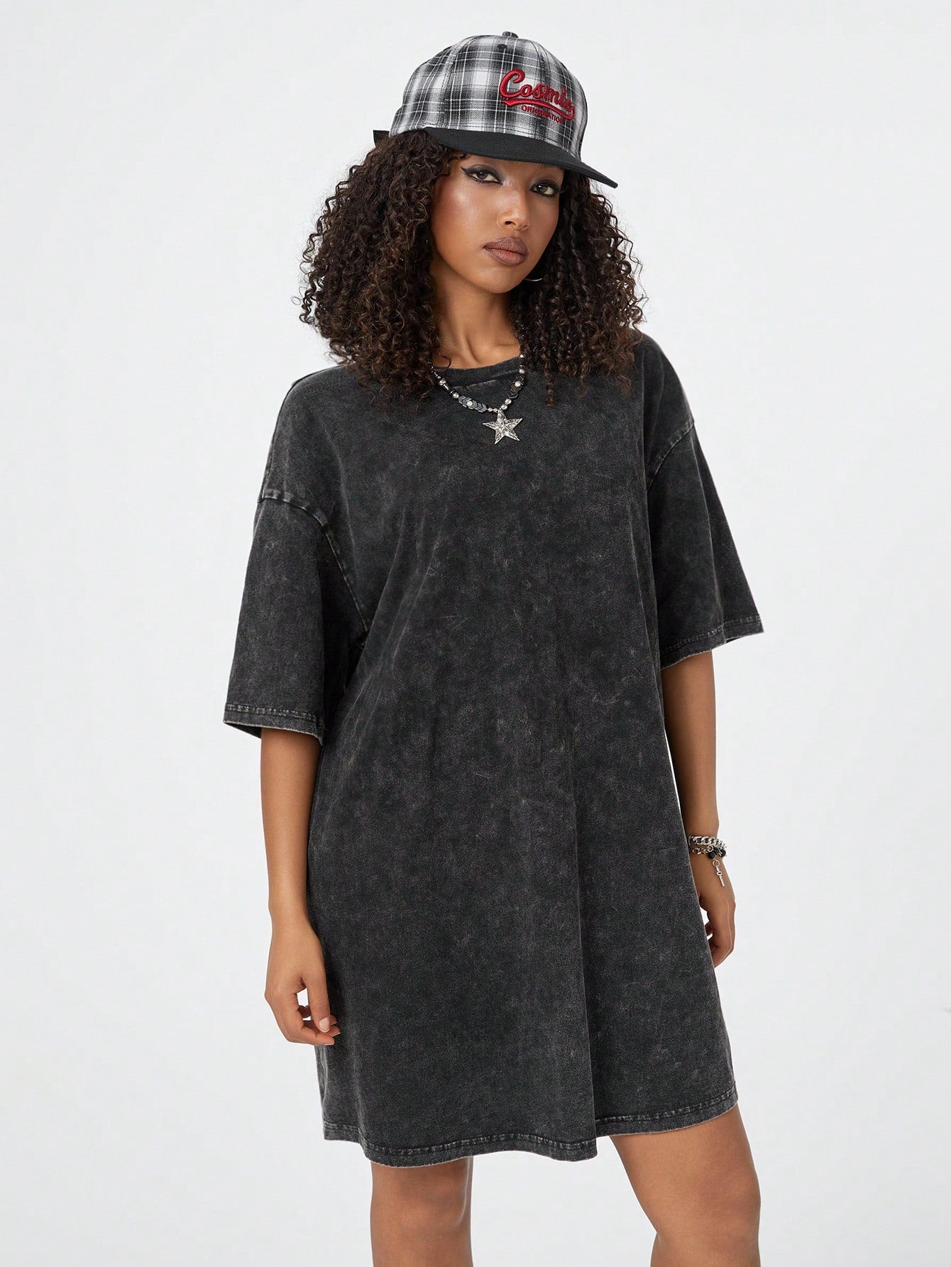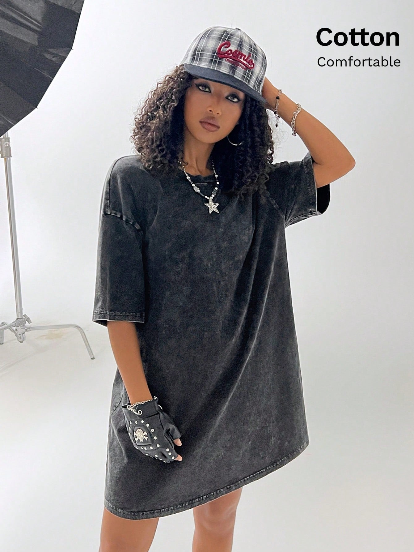 فستان تي شيرت مريح من القطن المغسول بالثلج من كولان