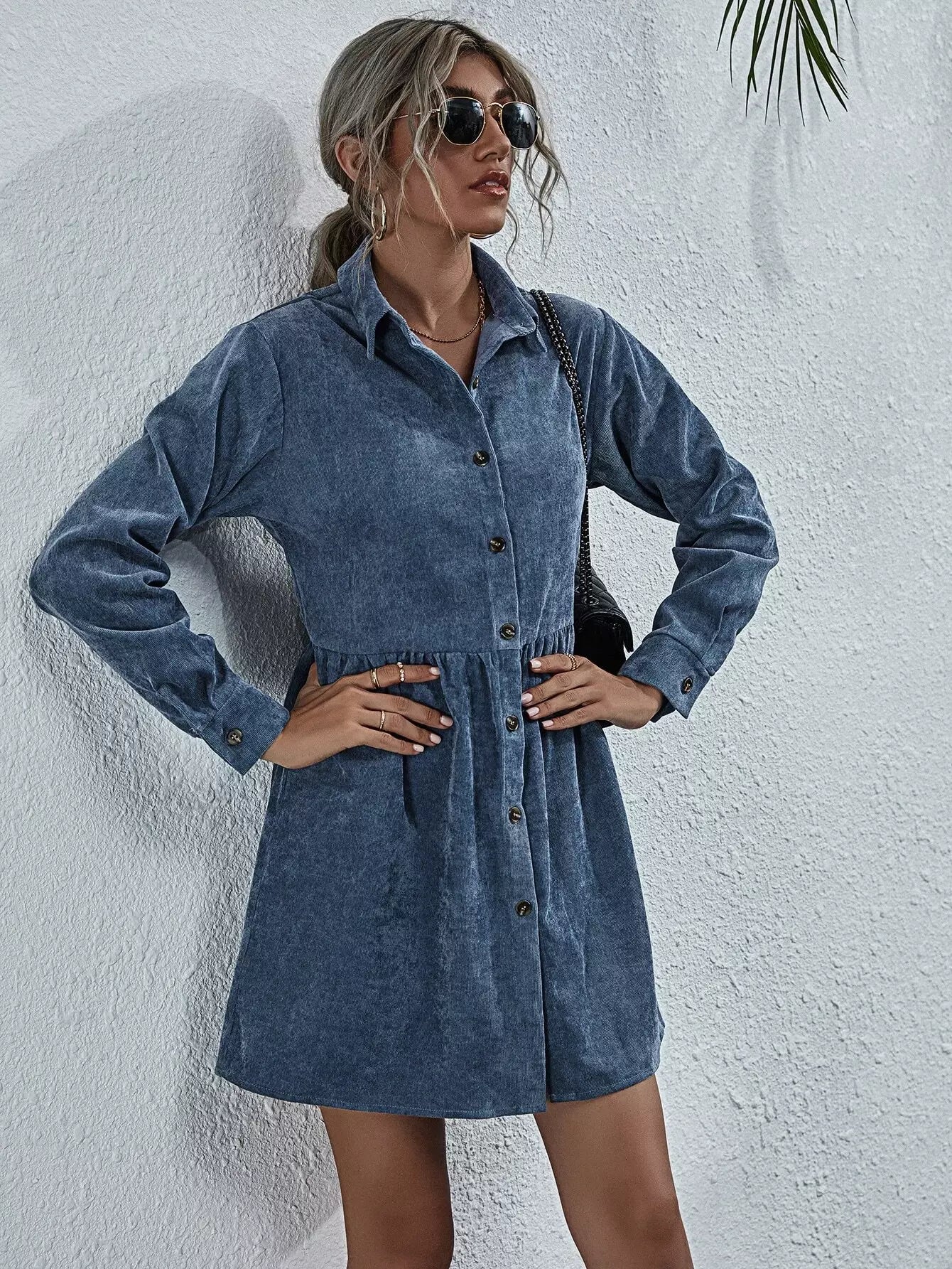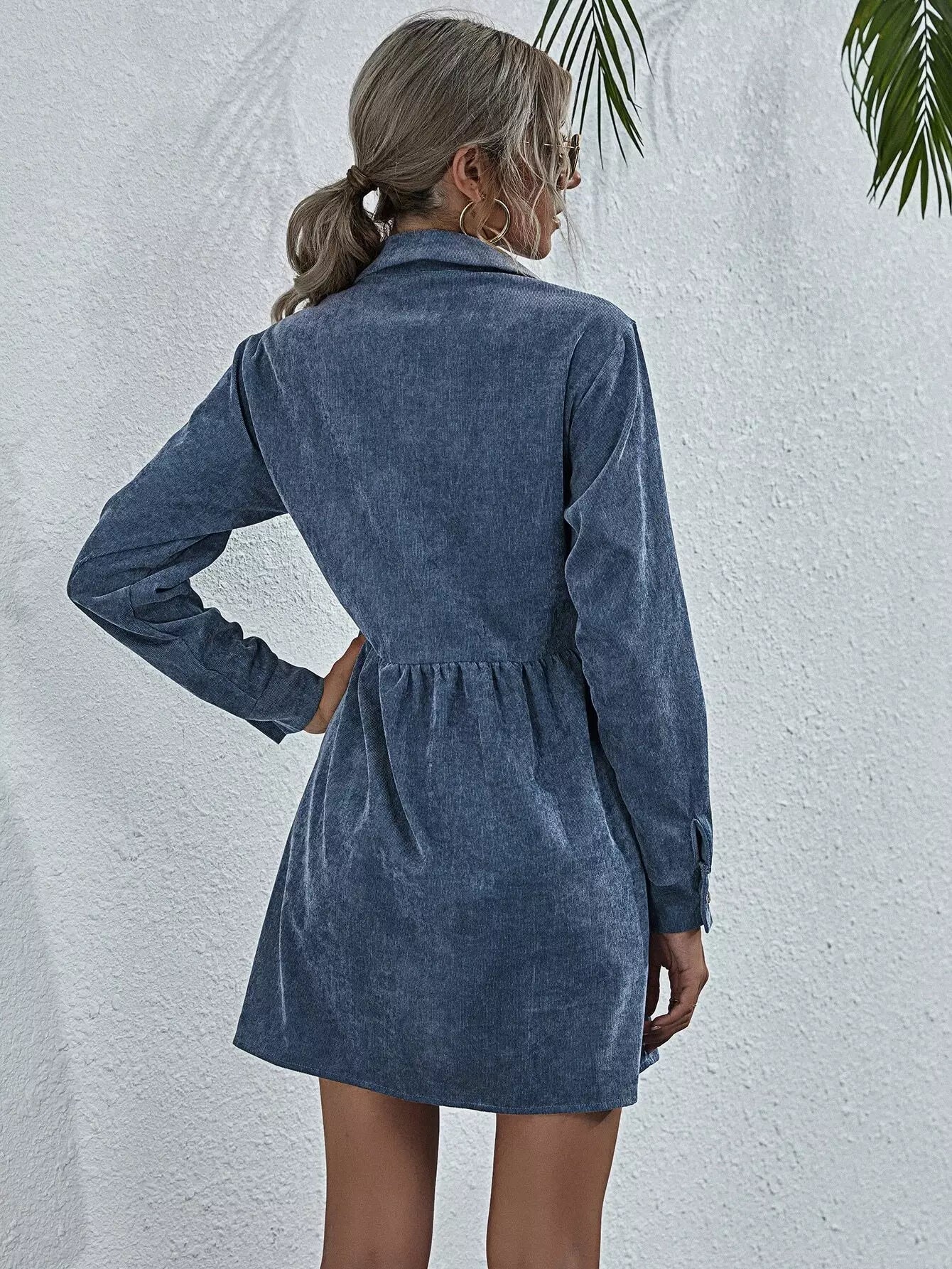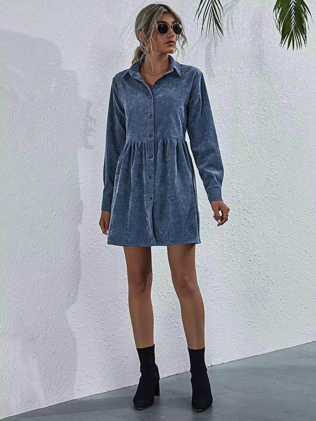 فستان قصير بأزرار من الأمام بأزرار قميص بأزرار من الأمام
