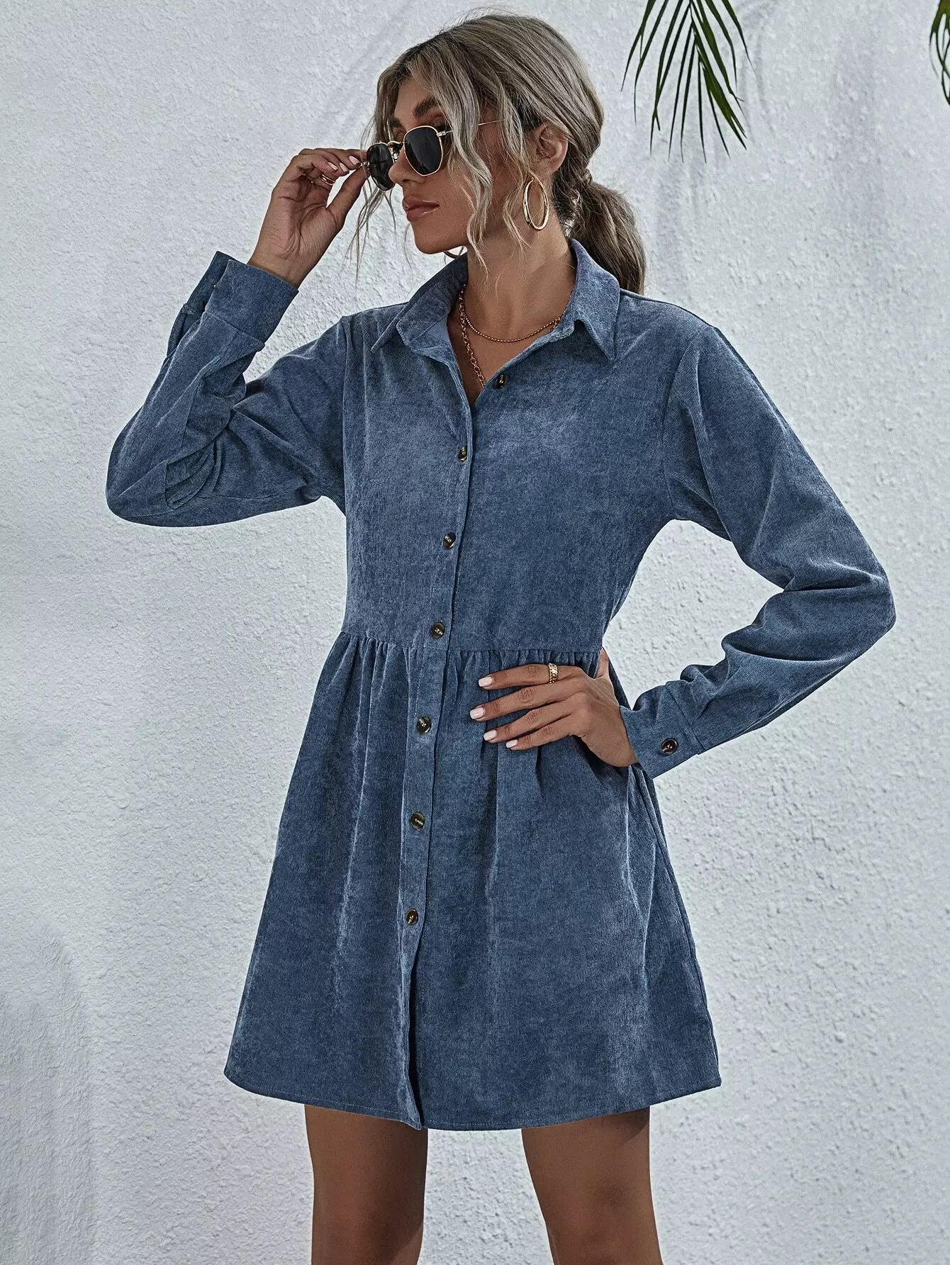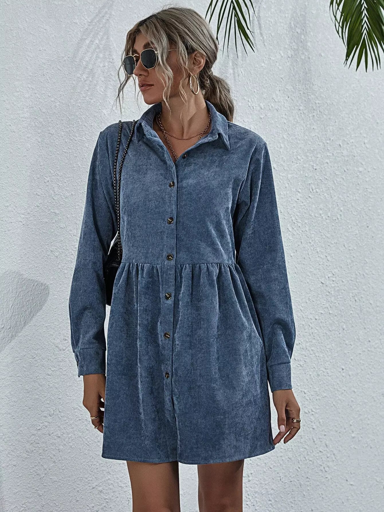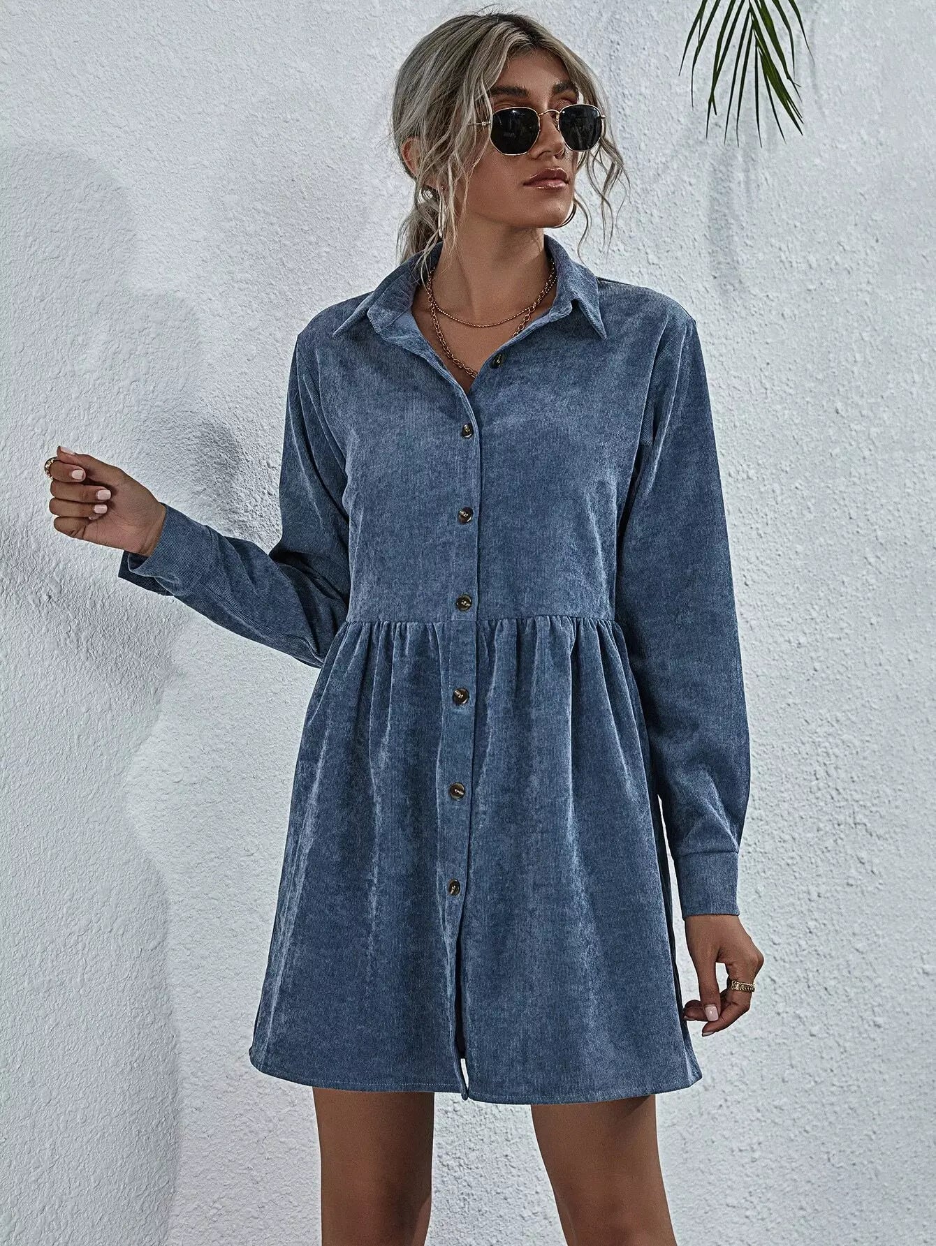 فستان قصير بأزرار من الأمام بأزرار قميص بأزرار من الأمام