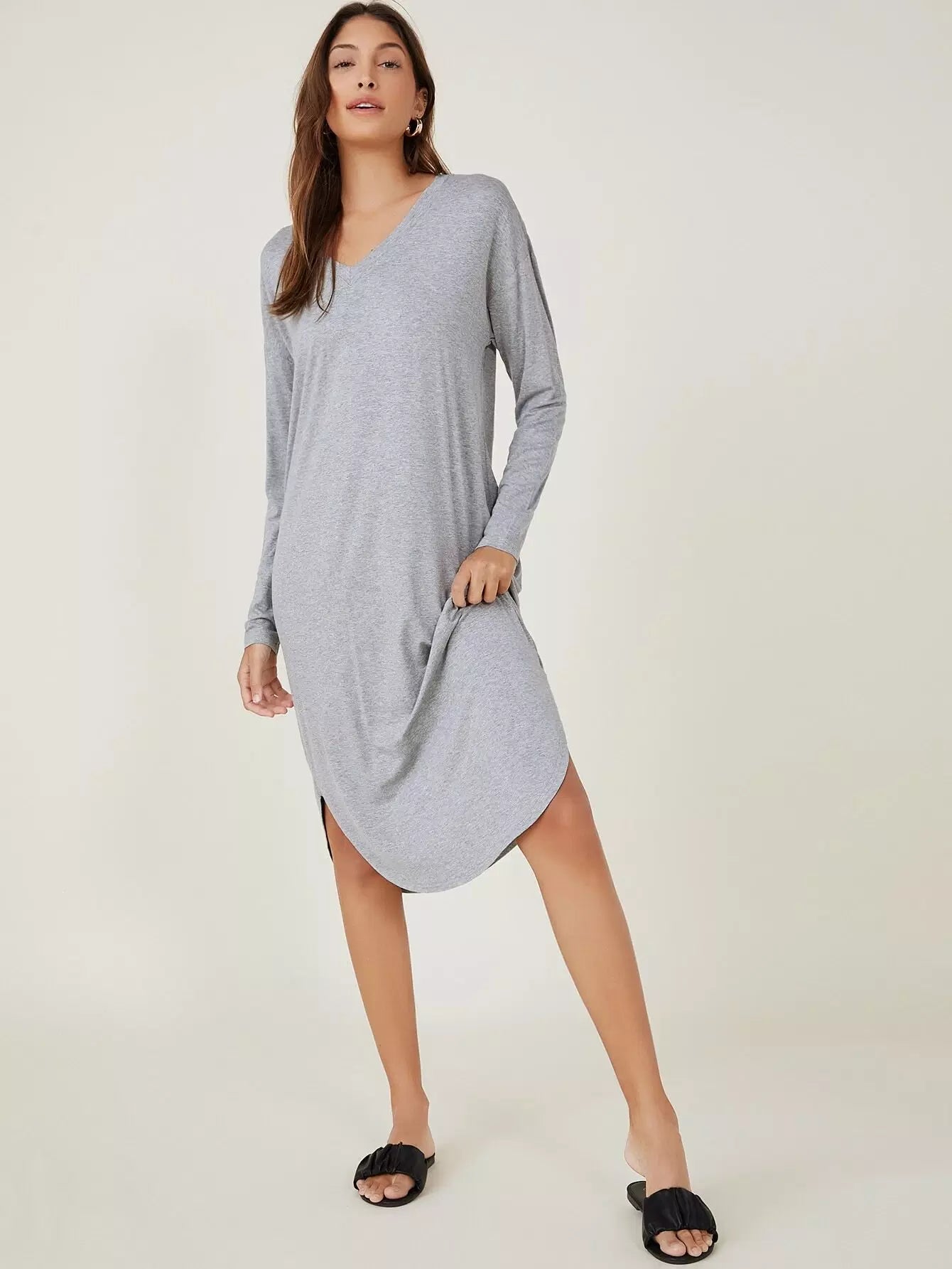 فستان قطني منسدل الكتف منسدل الحافة منحني السادة