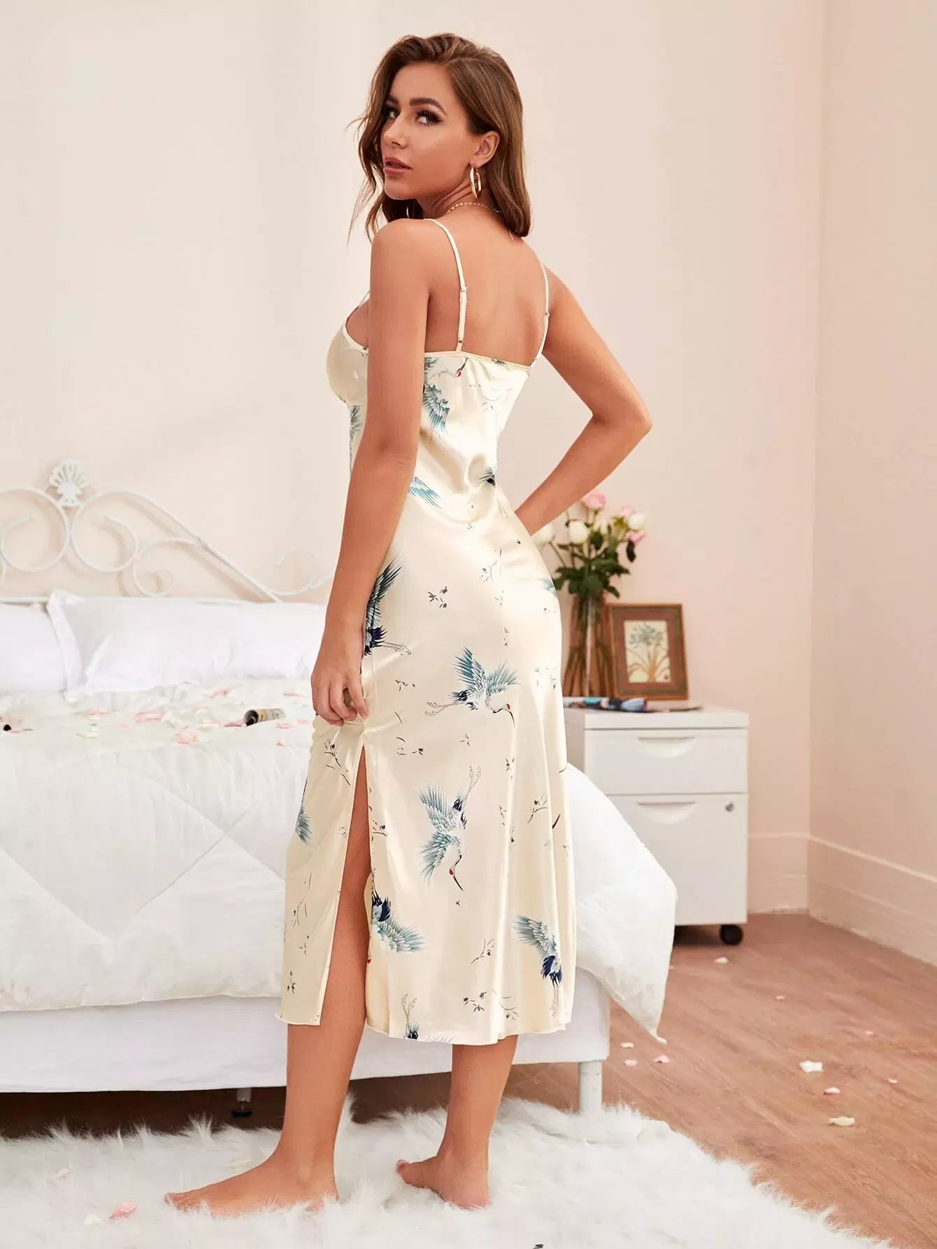 فستان سهرة ليلي بطبعة رافعة مطبوع على الجانبين