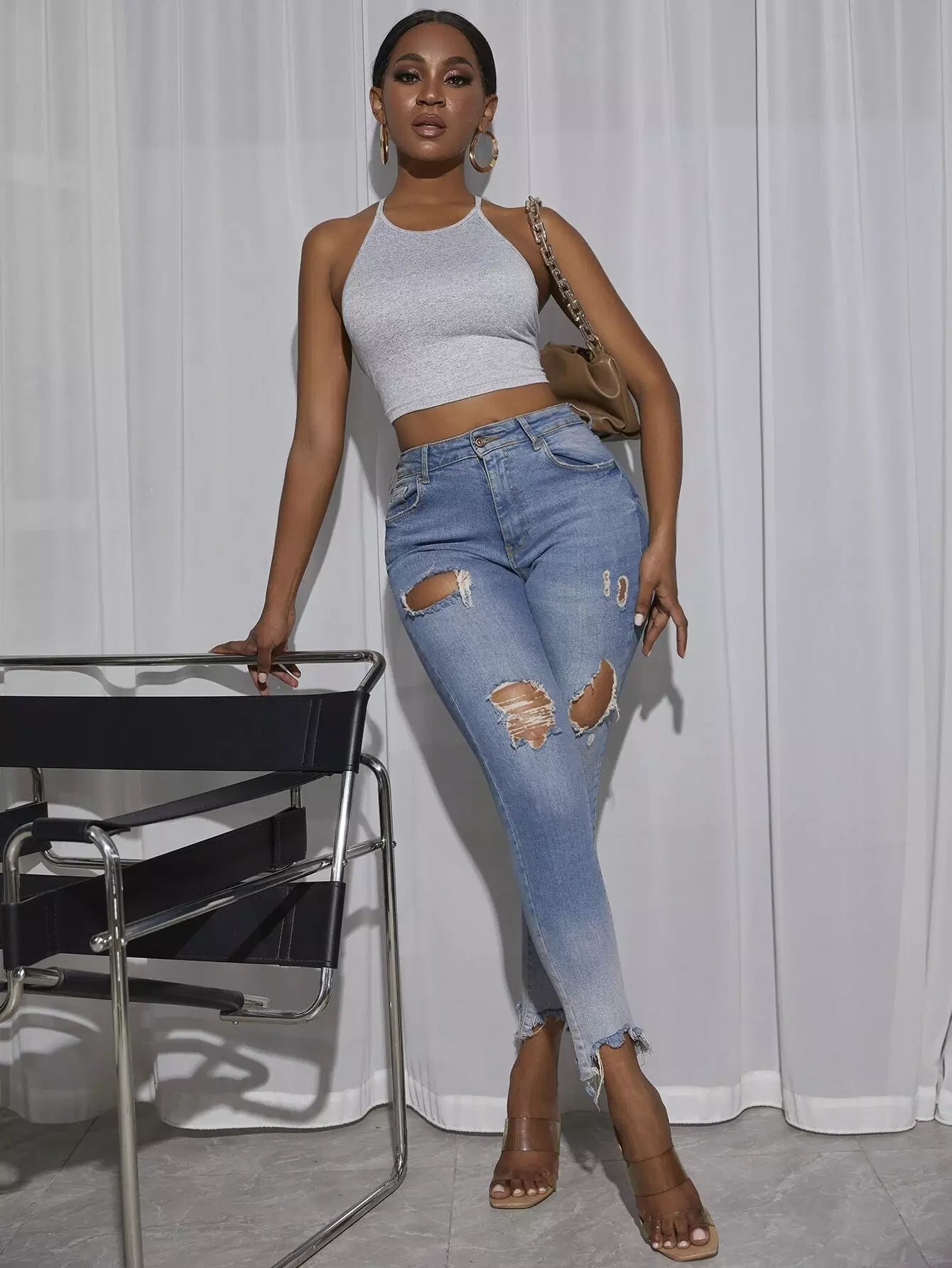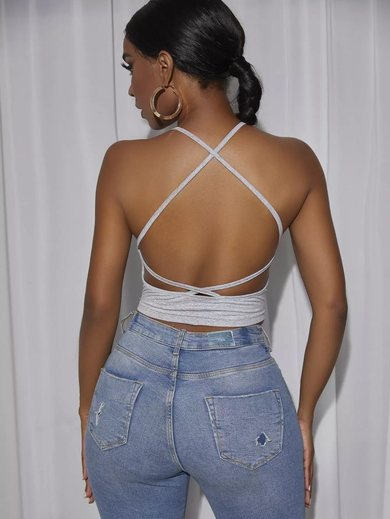 بلوزة بدون أكمام على شكل صليب متقاطع من الخلف