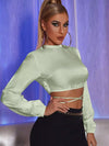 النساء - بلوزة من الساتان متقاطعة بدون ظهر