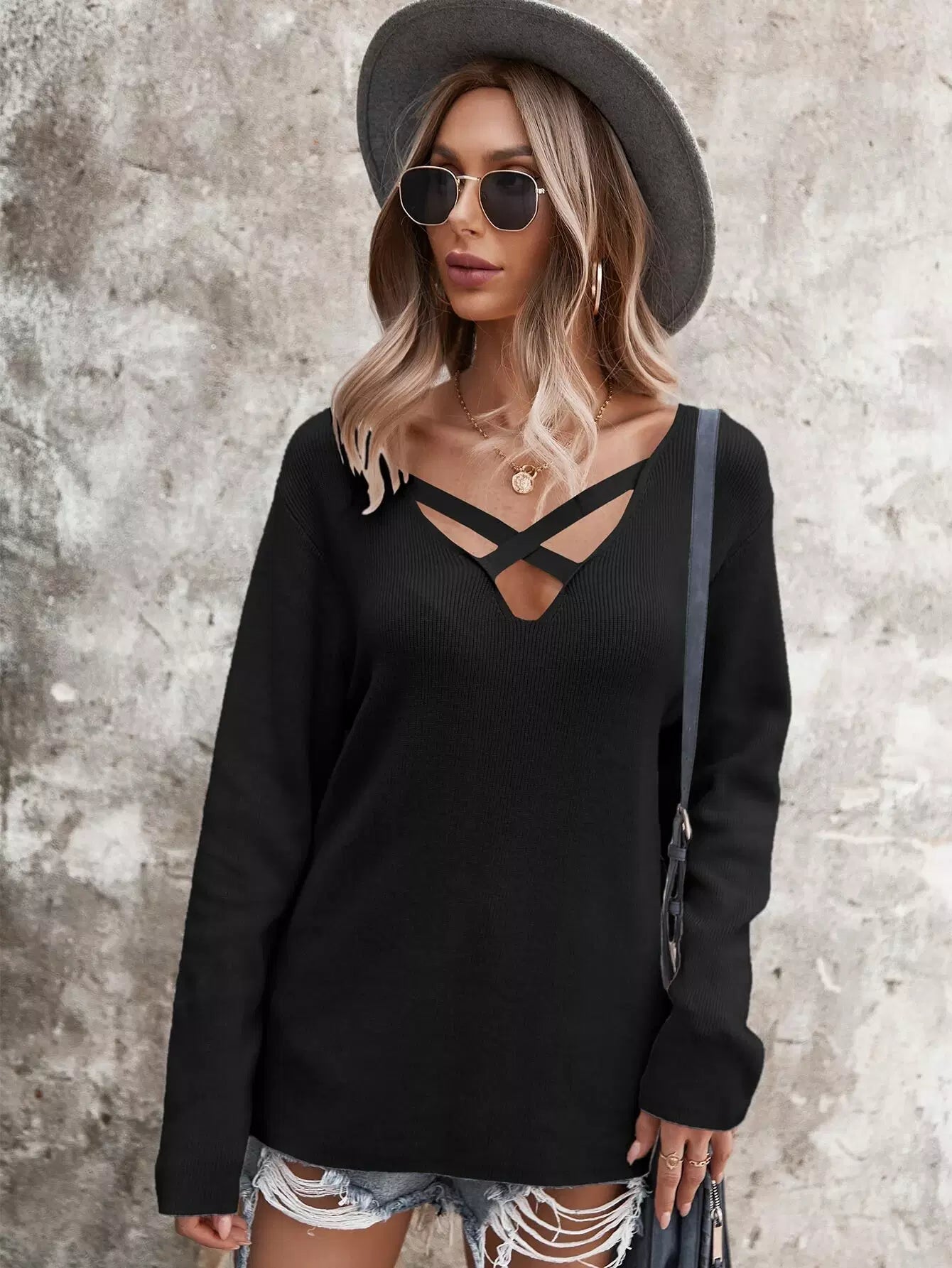 سترة برقبة على شكل صليب متقاطع على شكل حرف V