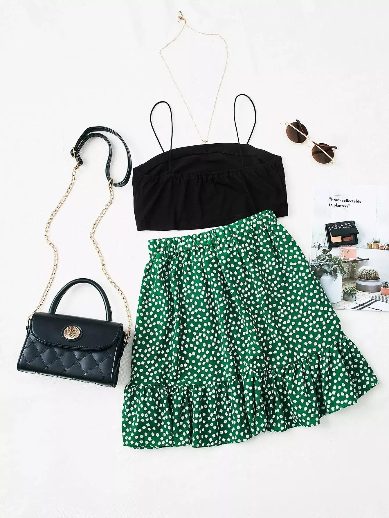 للنساء - بلوزة كامي قصيرة وتنورة بحزام مزهّرة