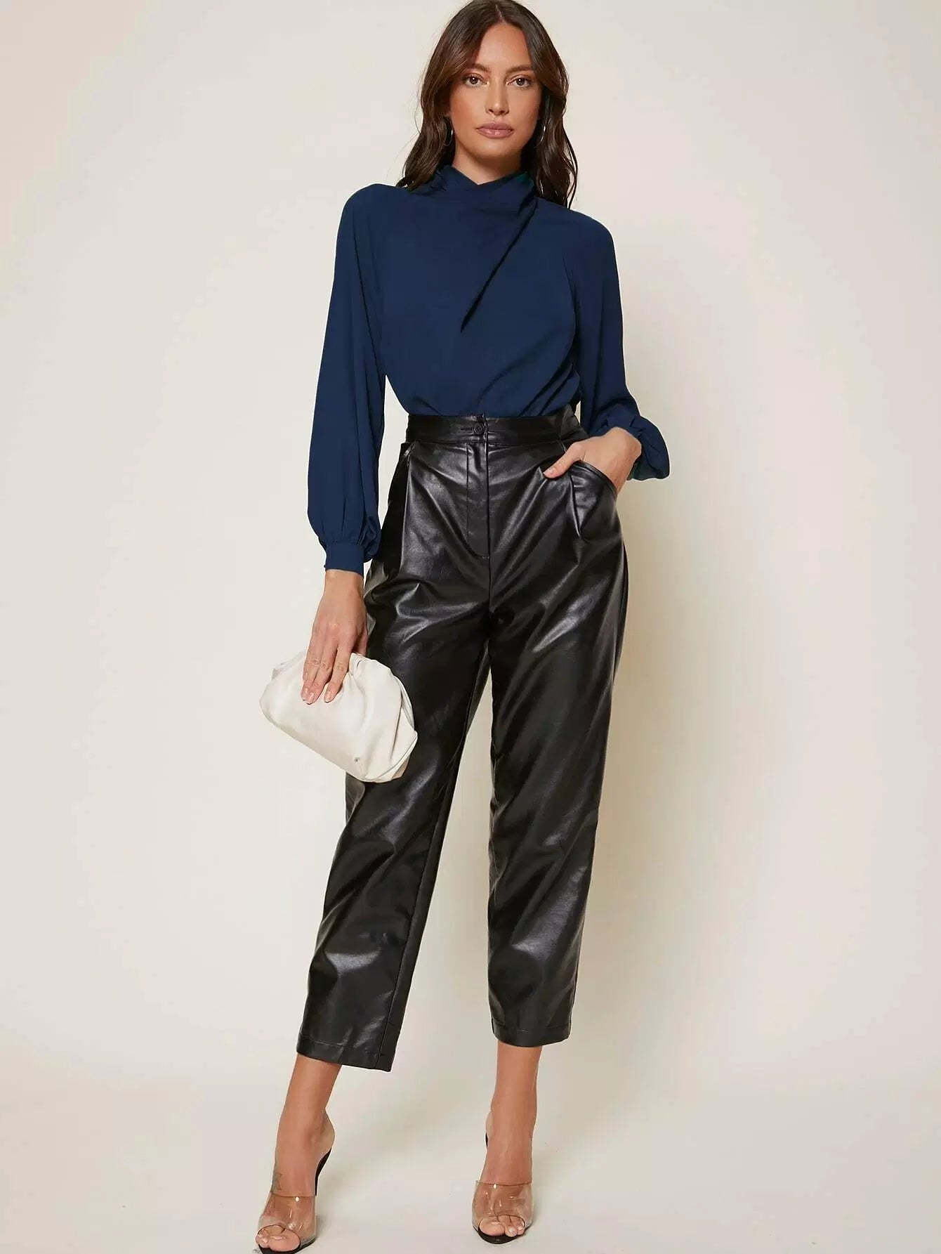 بلوزة بأكمام من الأمام ملفوفة على شكل صليب