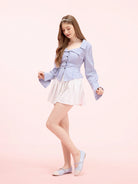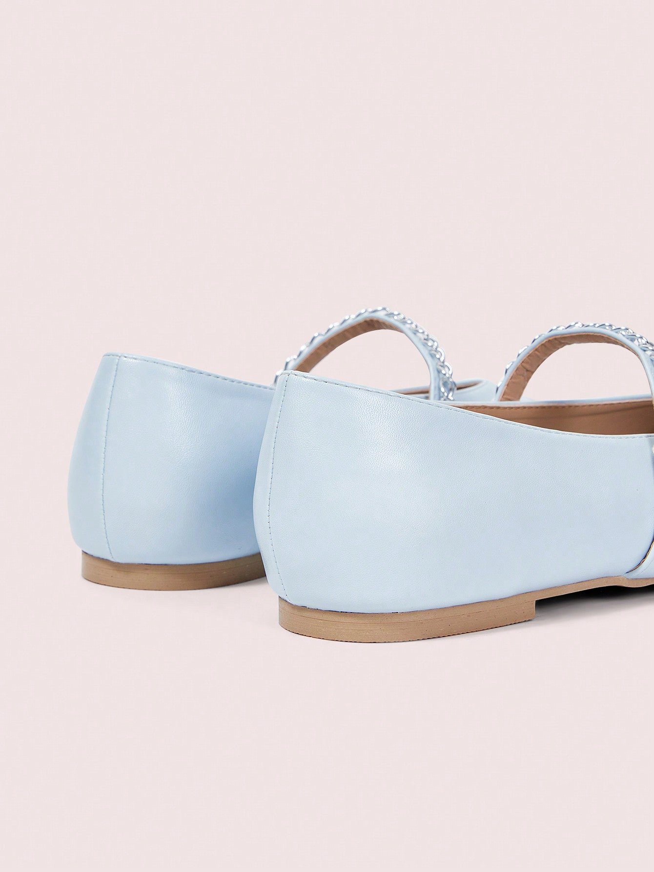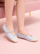 CUCCOO DOLLMOD Women's Blue & White Contrast Color Panel Comfortable Flat Shoes