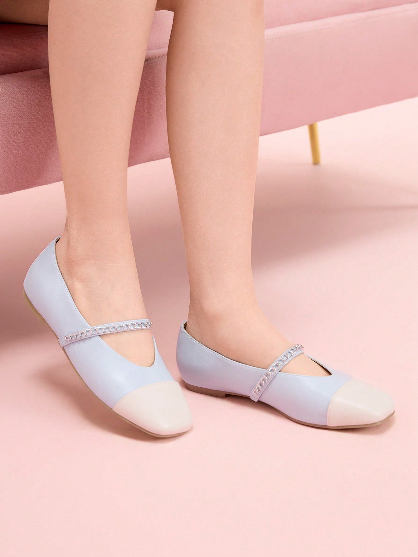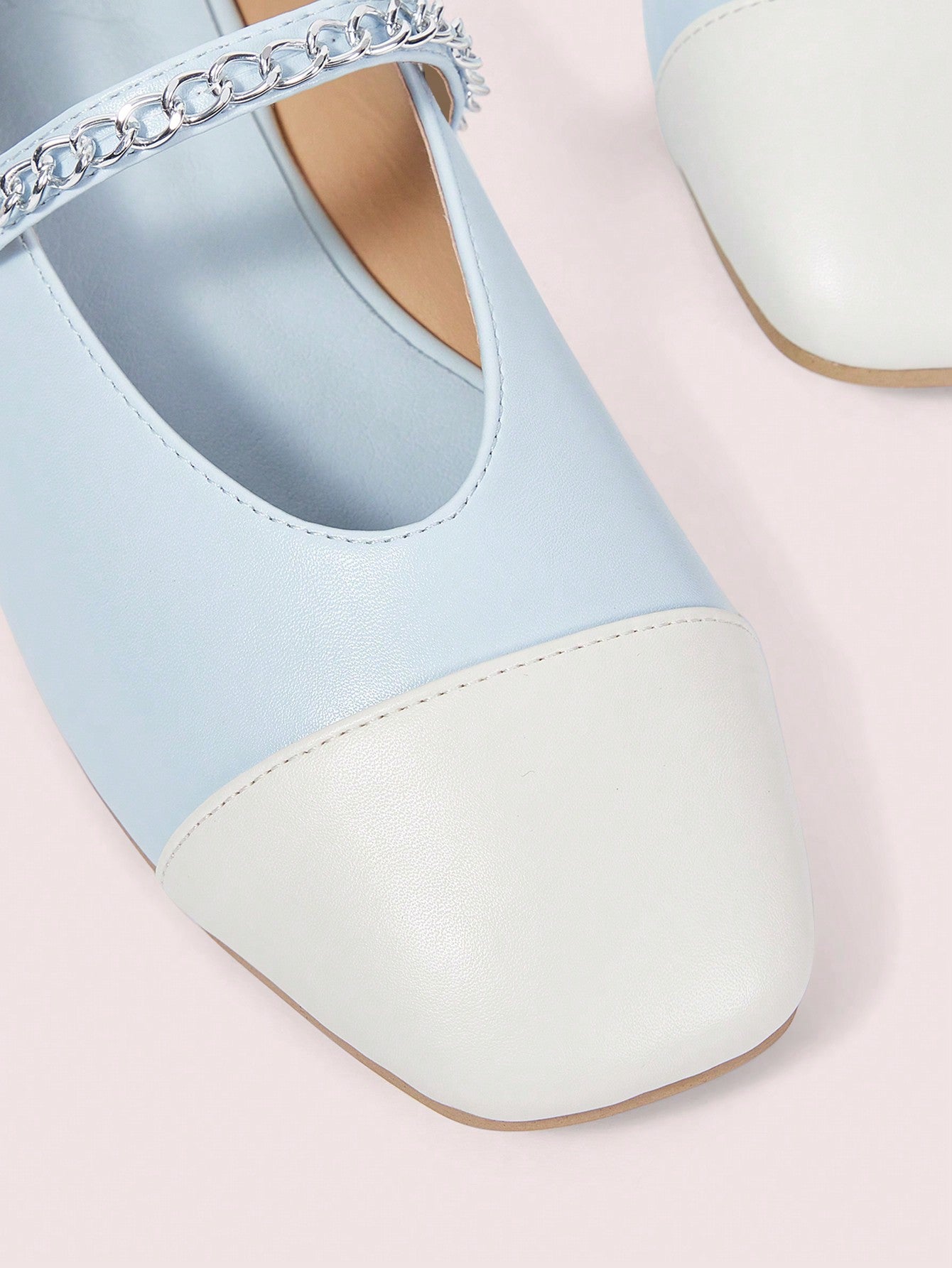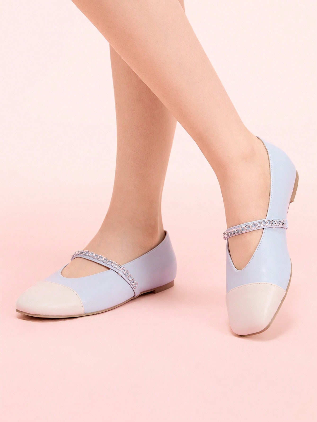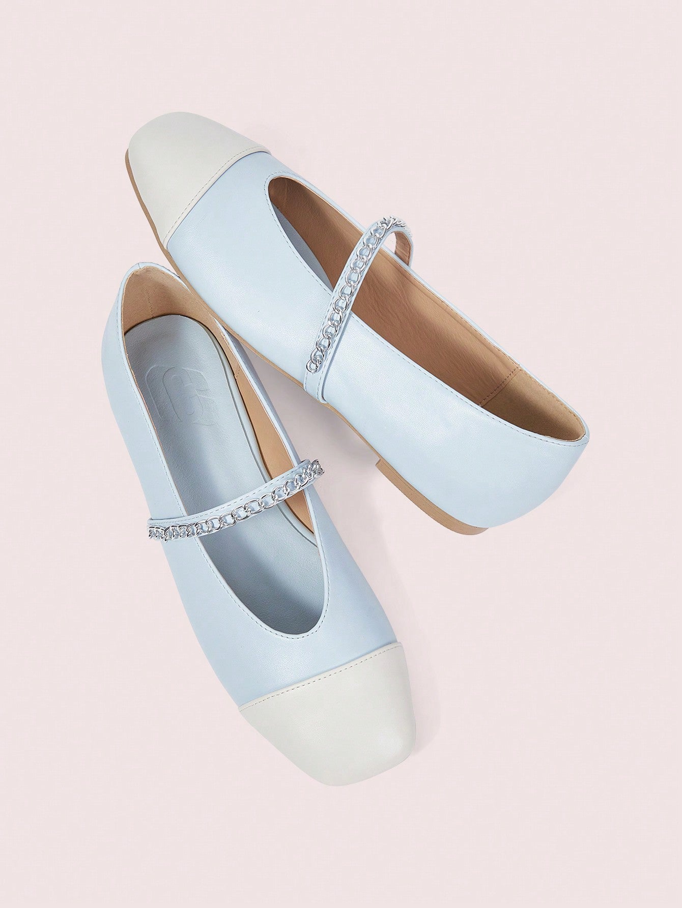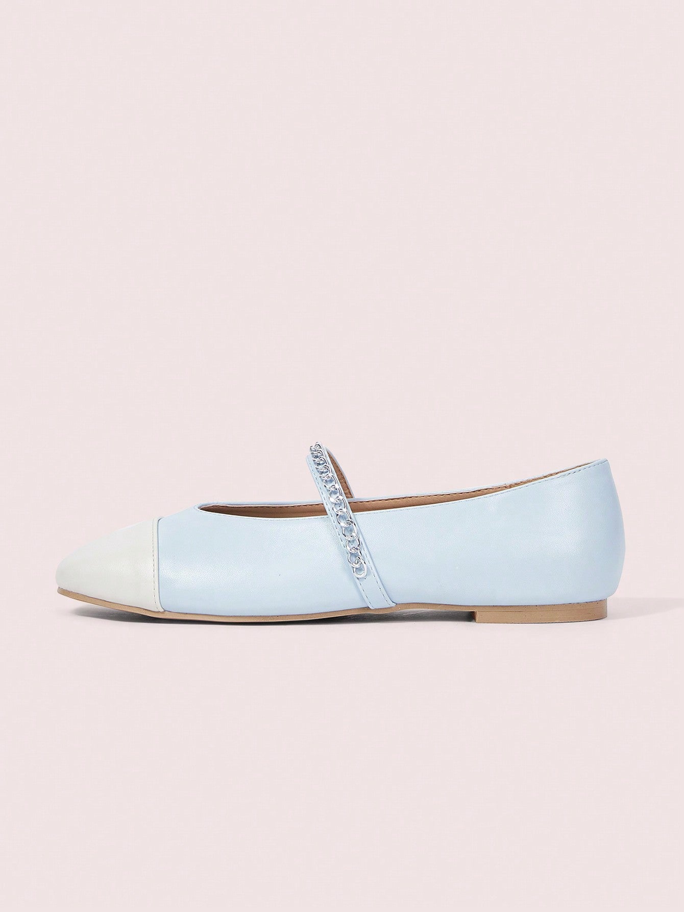 حذاء مسطح مريح للنساء من CUCCOO DOLLMOD بلوحة ألوان متباينة باللونين الأزرق والأبيض