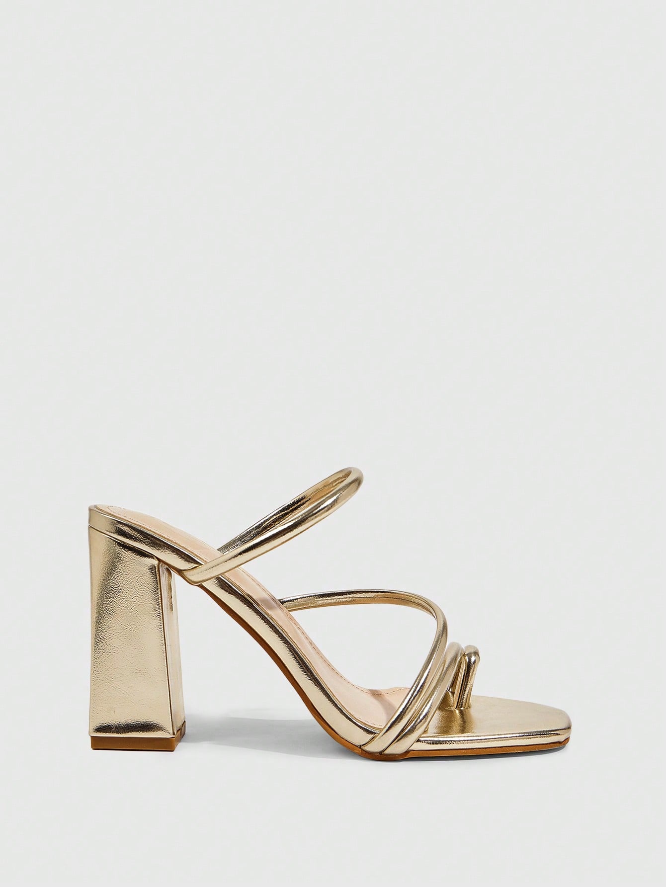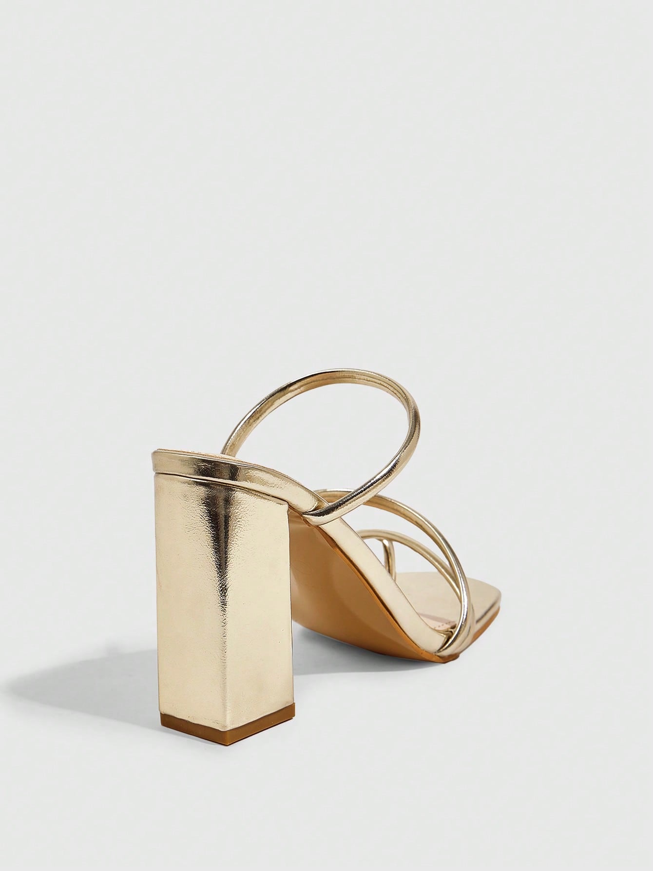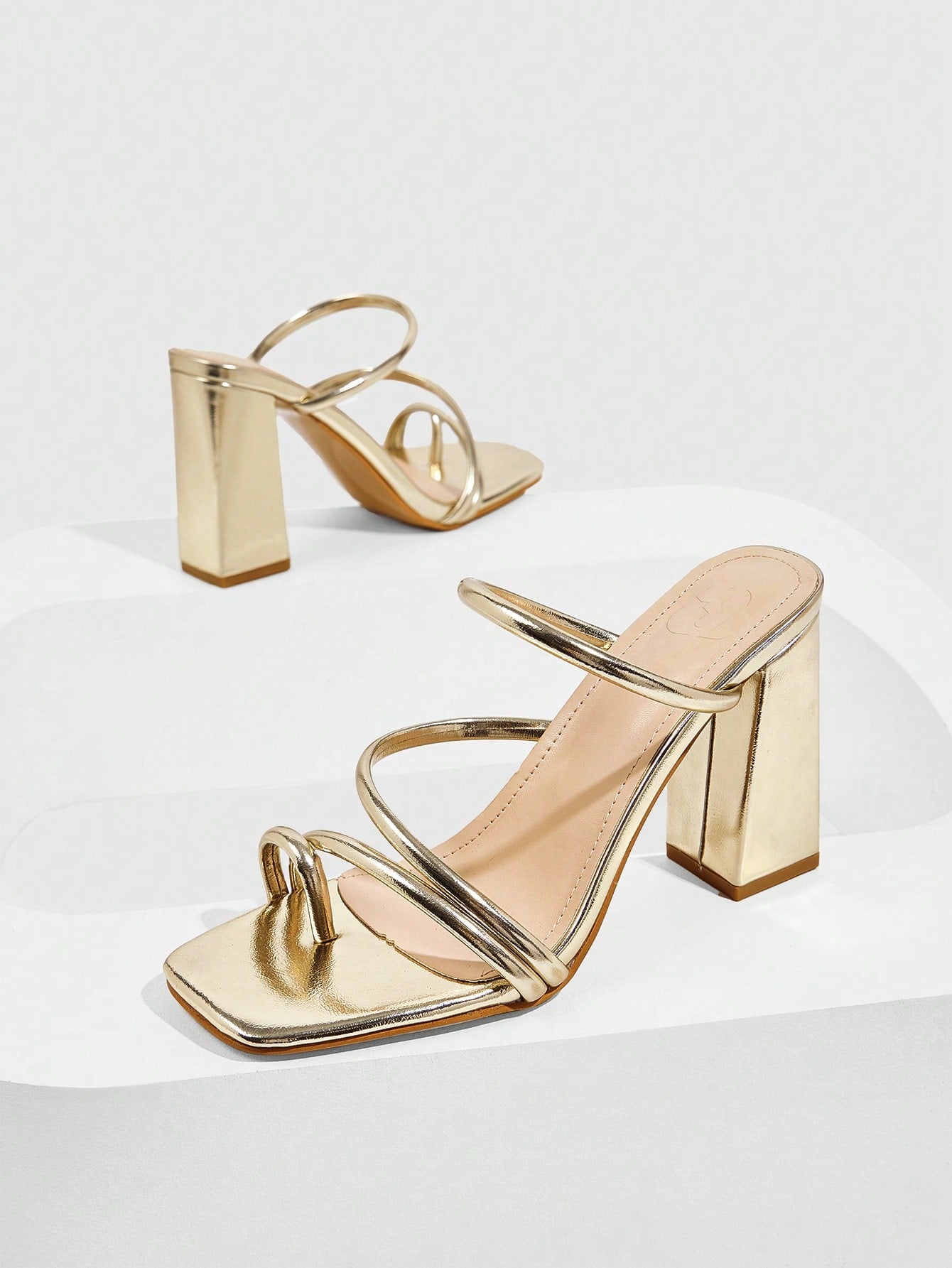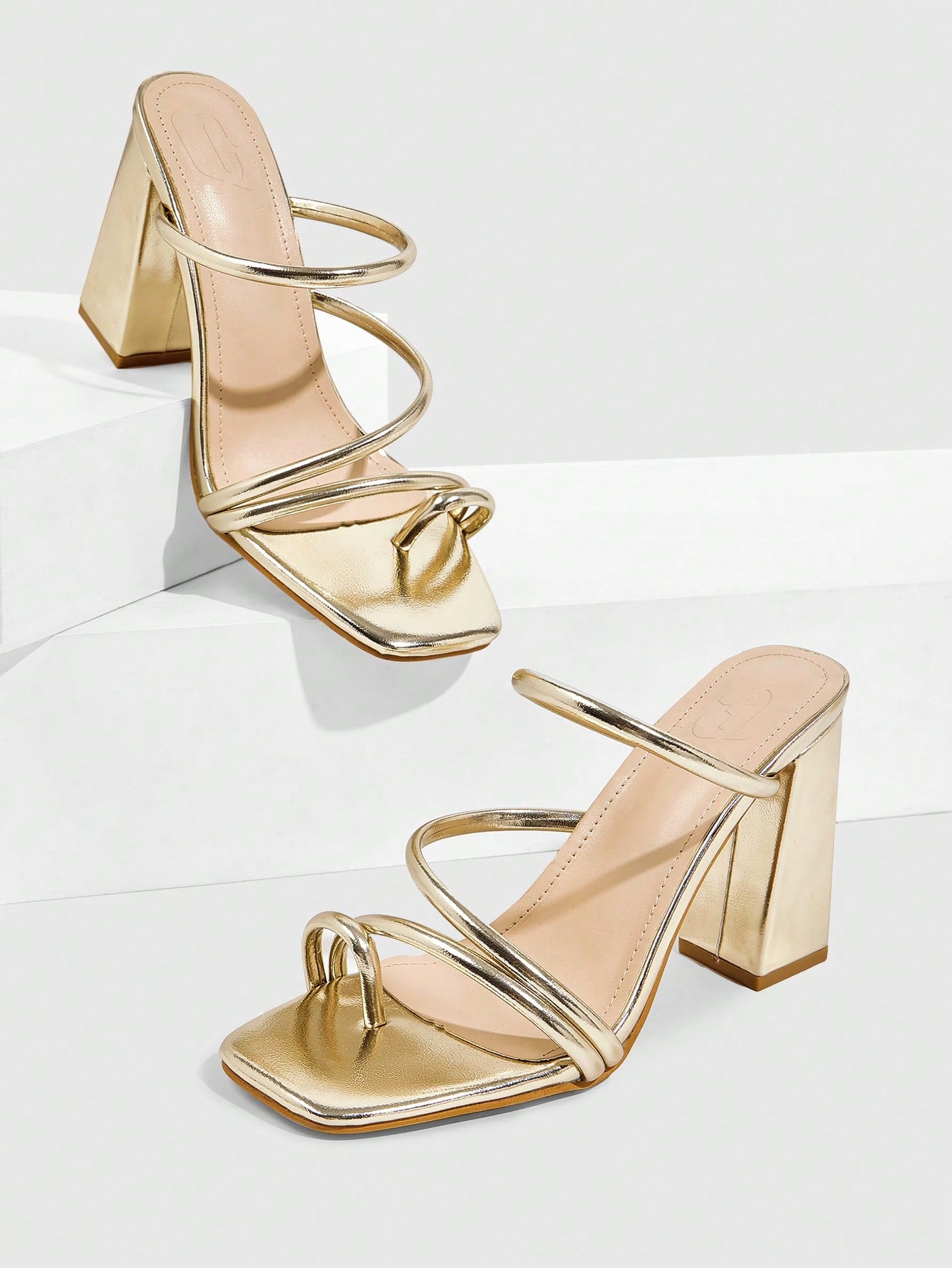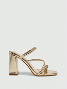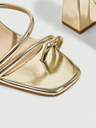 صندل نسائي أنيق من CUCCOO SZL مصنوع من الجلد اللامع الذهبي اللامع بمقدمة مربعة وكعب سميك