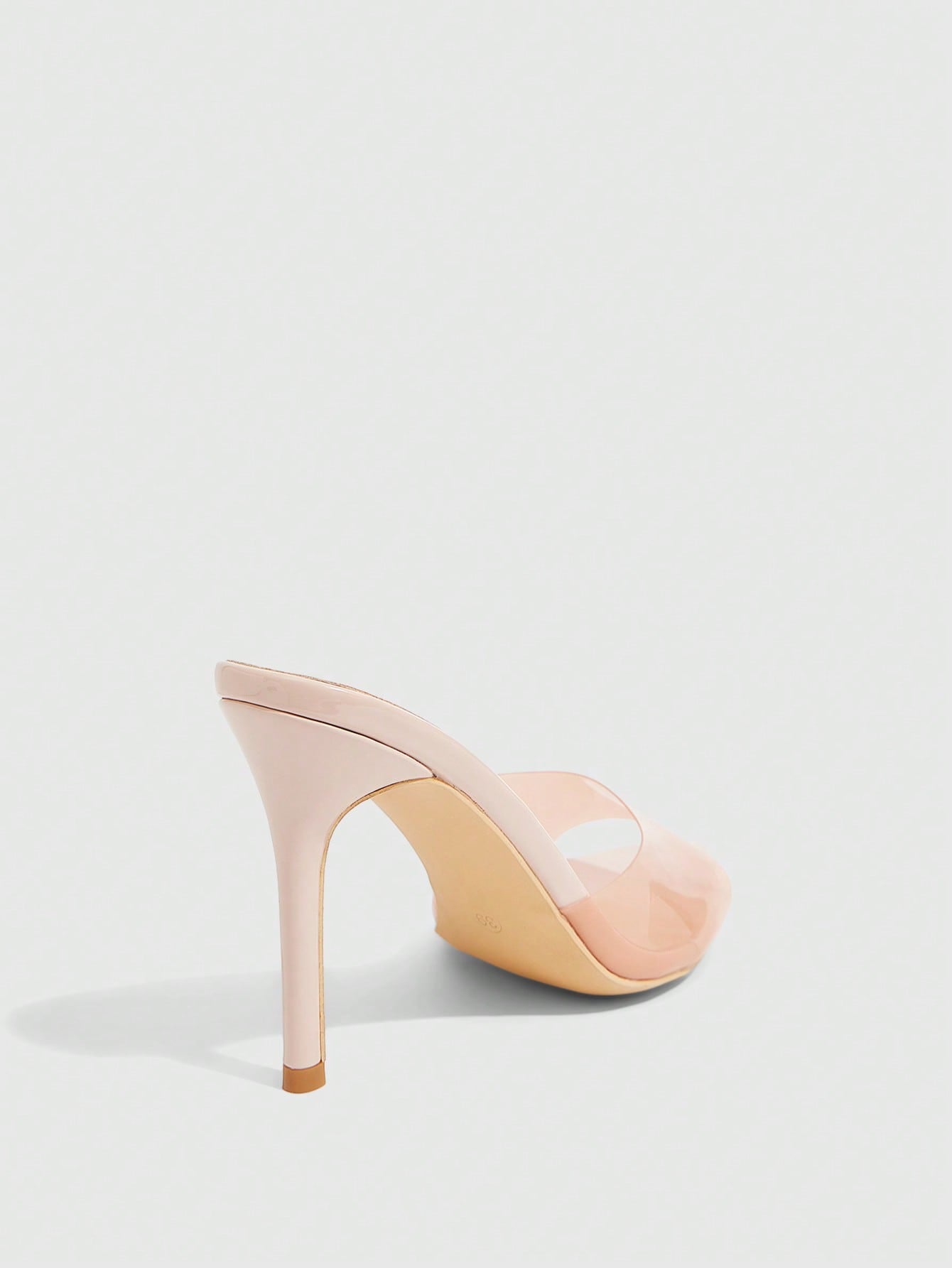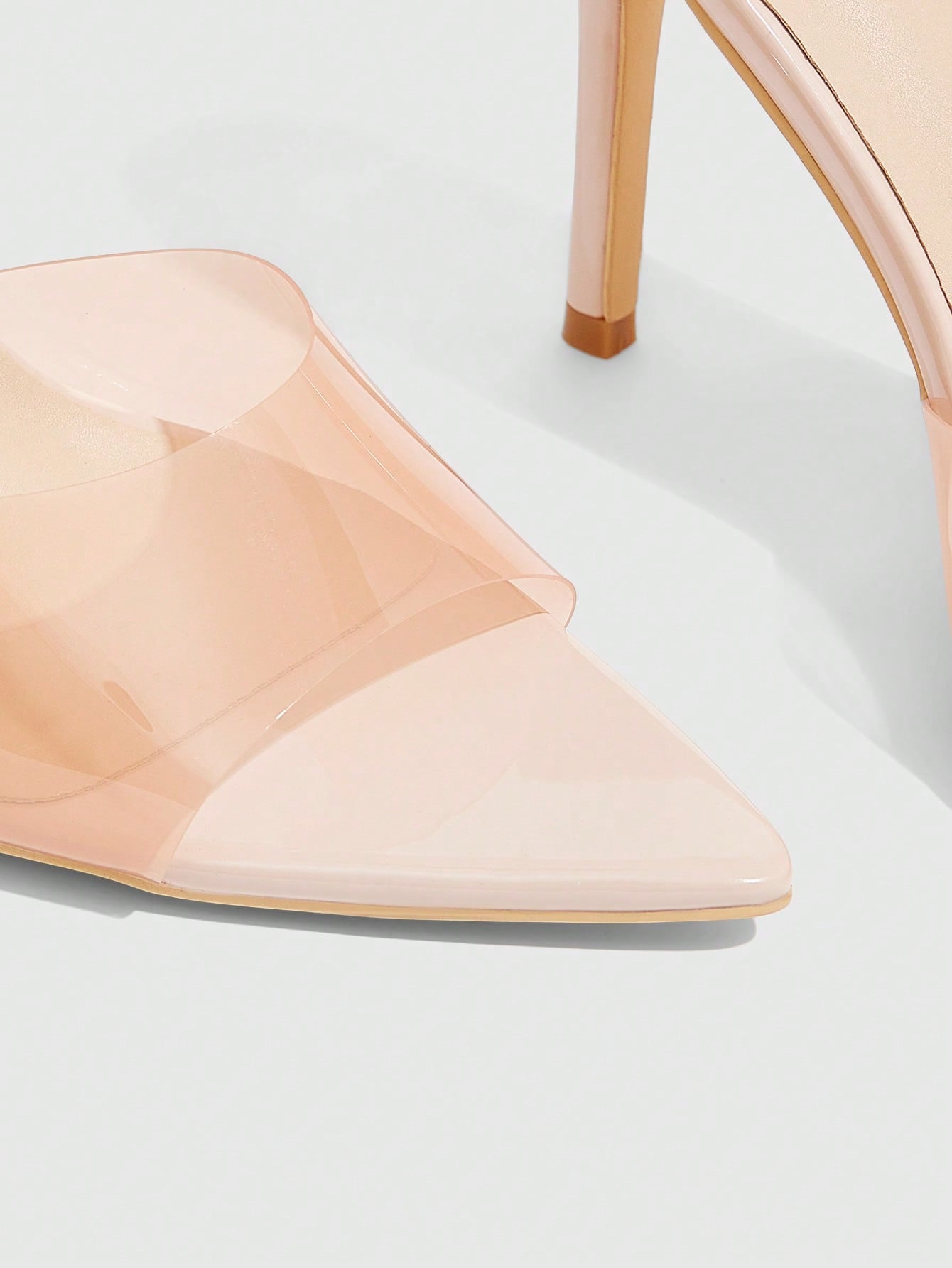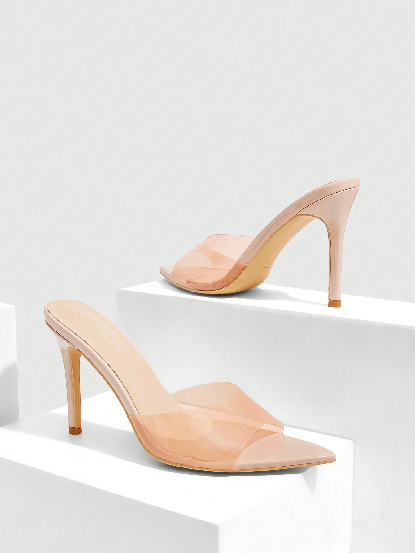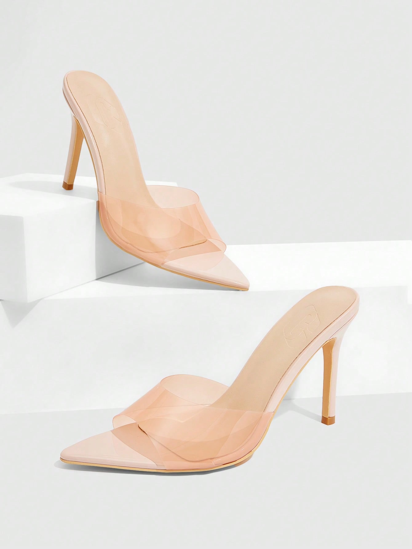 women CUCCOO SZL Women's Pointed Toe Apricot See-Through TPU Mule High Heel Sandals