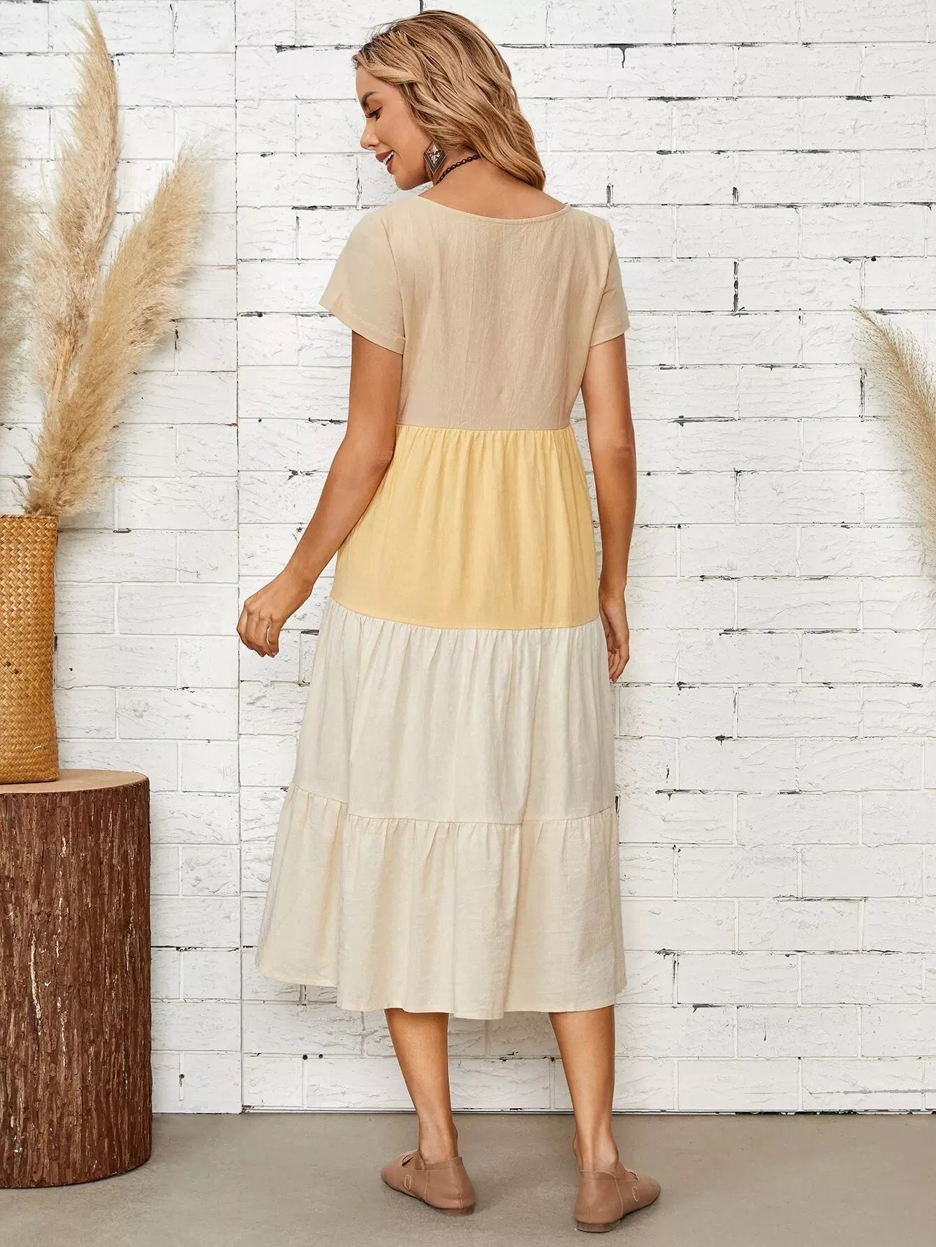 فستان بكشكشة مقطوعة ومخيطة