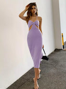 للنساء - فستان كامي بحاشية مقسمة