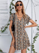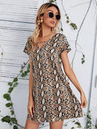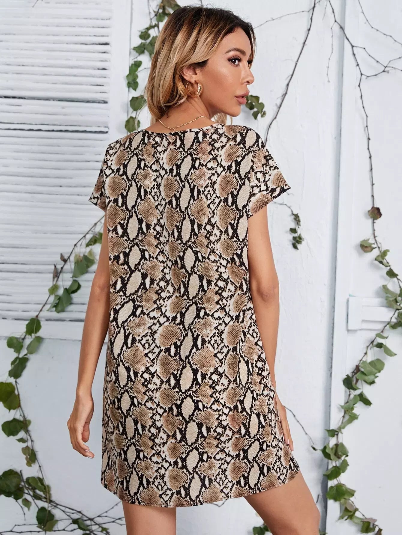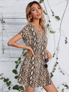 فستان بفتحة عنق على شكل V برقبة على شكل جلد الثعبان