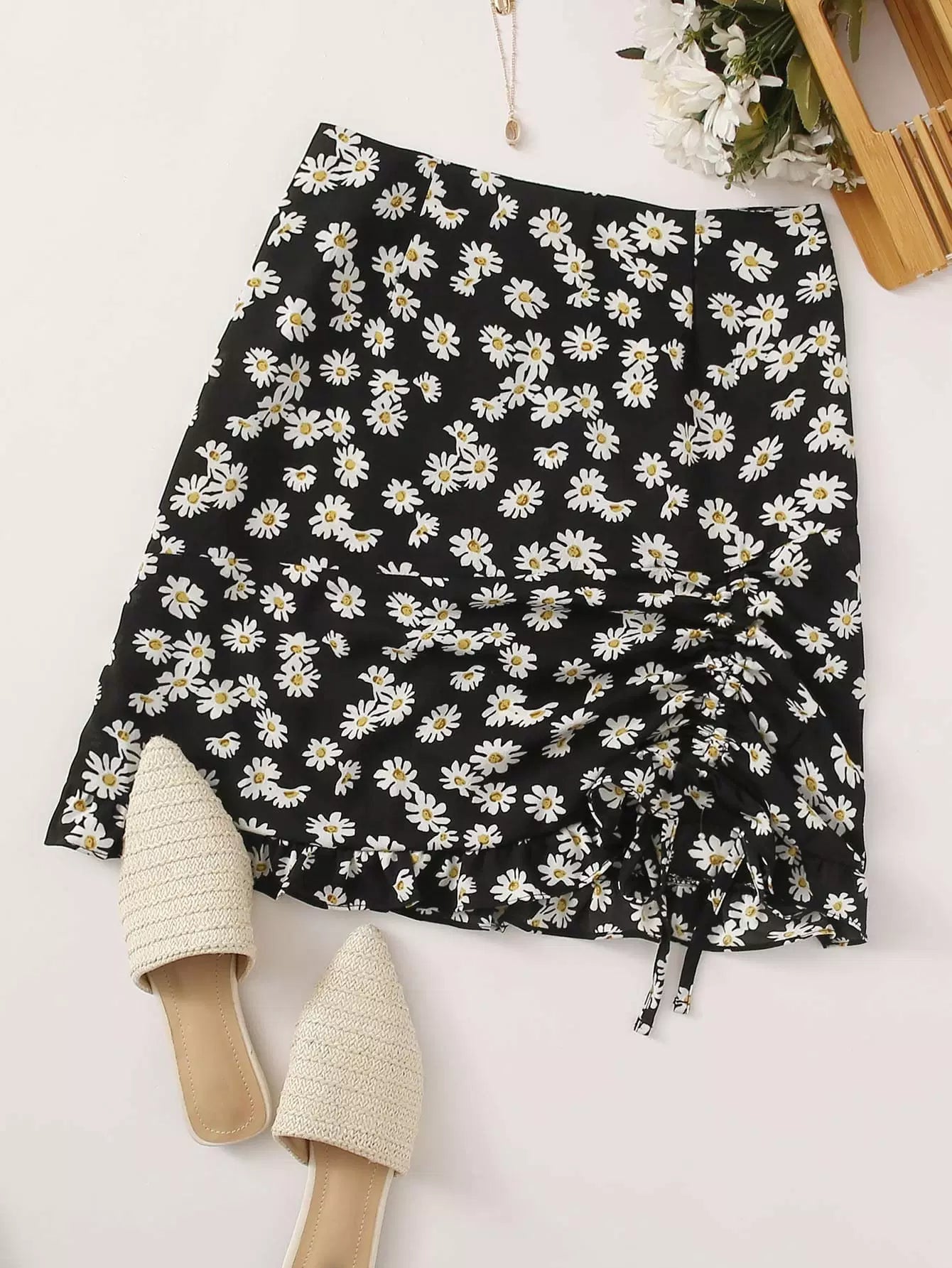 تنورة برباط رباط دايزي مزركش بنقوش الزهور