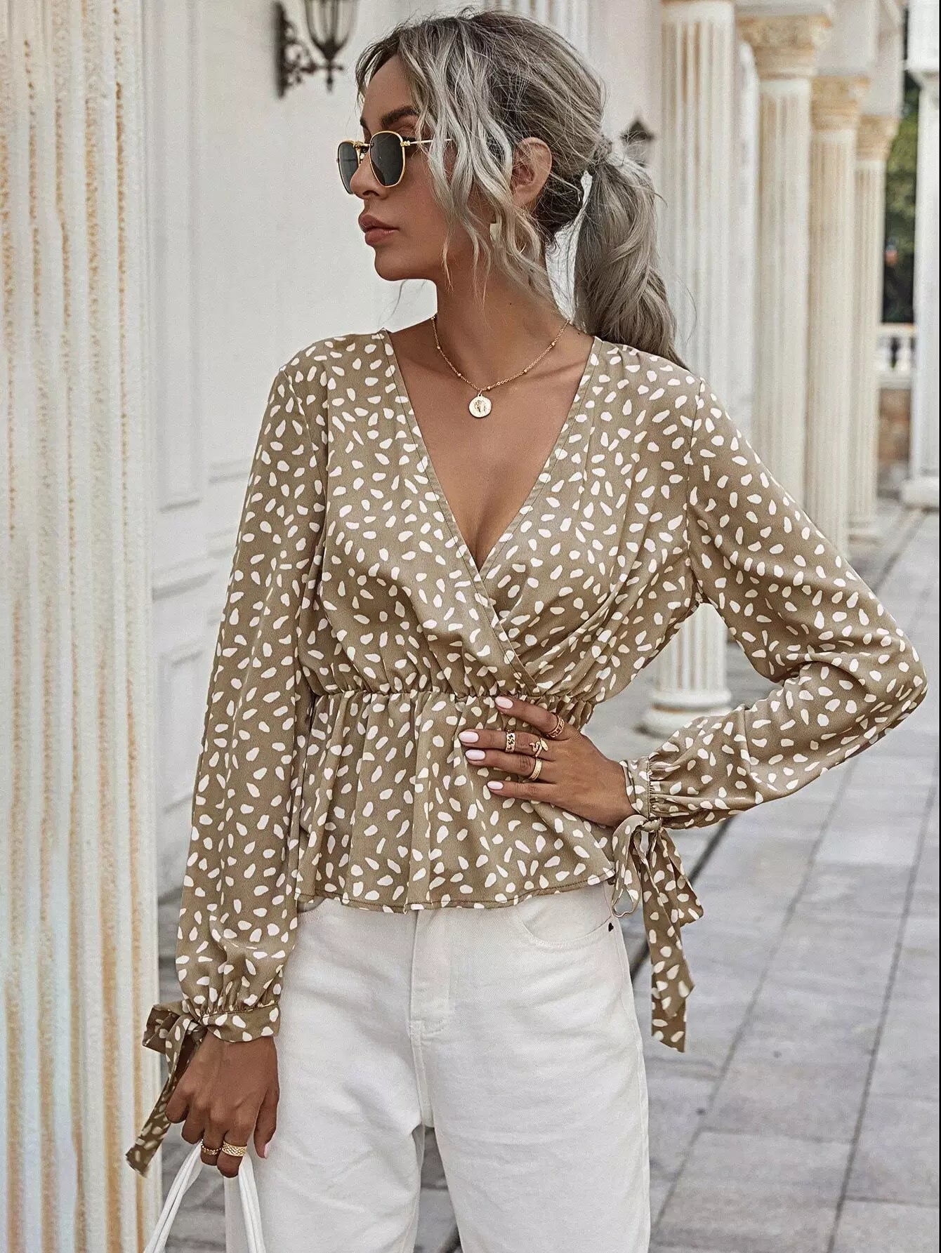 بلوزة بطبعة مرقش بطبعة مرقش