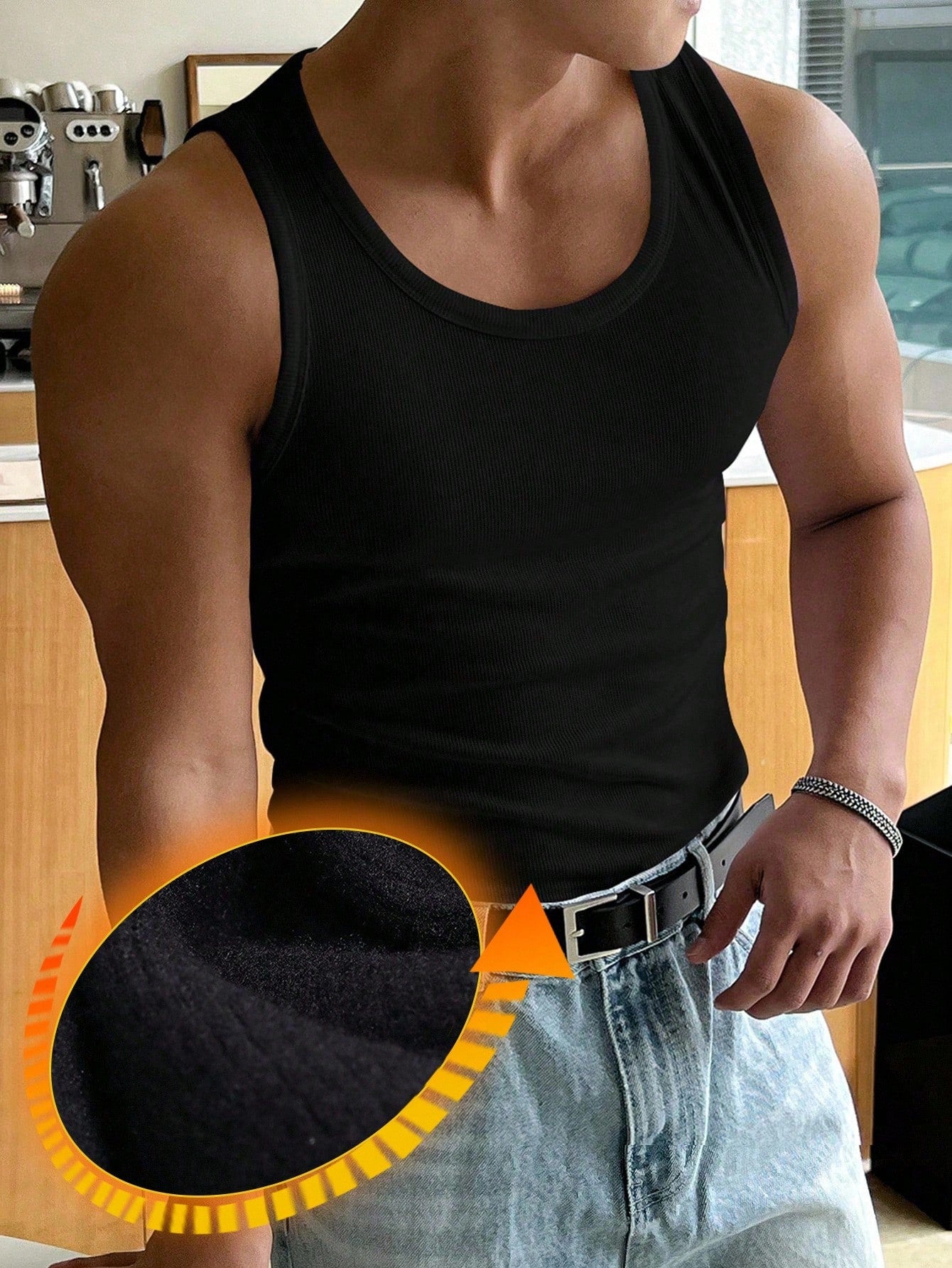 تيشيرت رجالي بدون أكمام من DAZY، دافئ، بياقة دائرية مضلعة