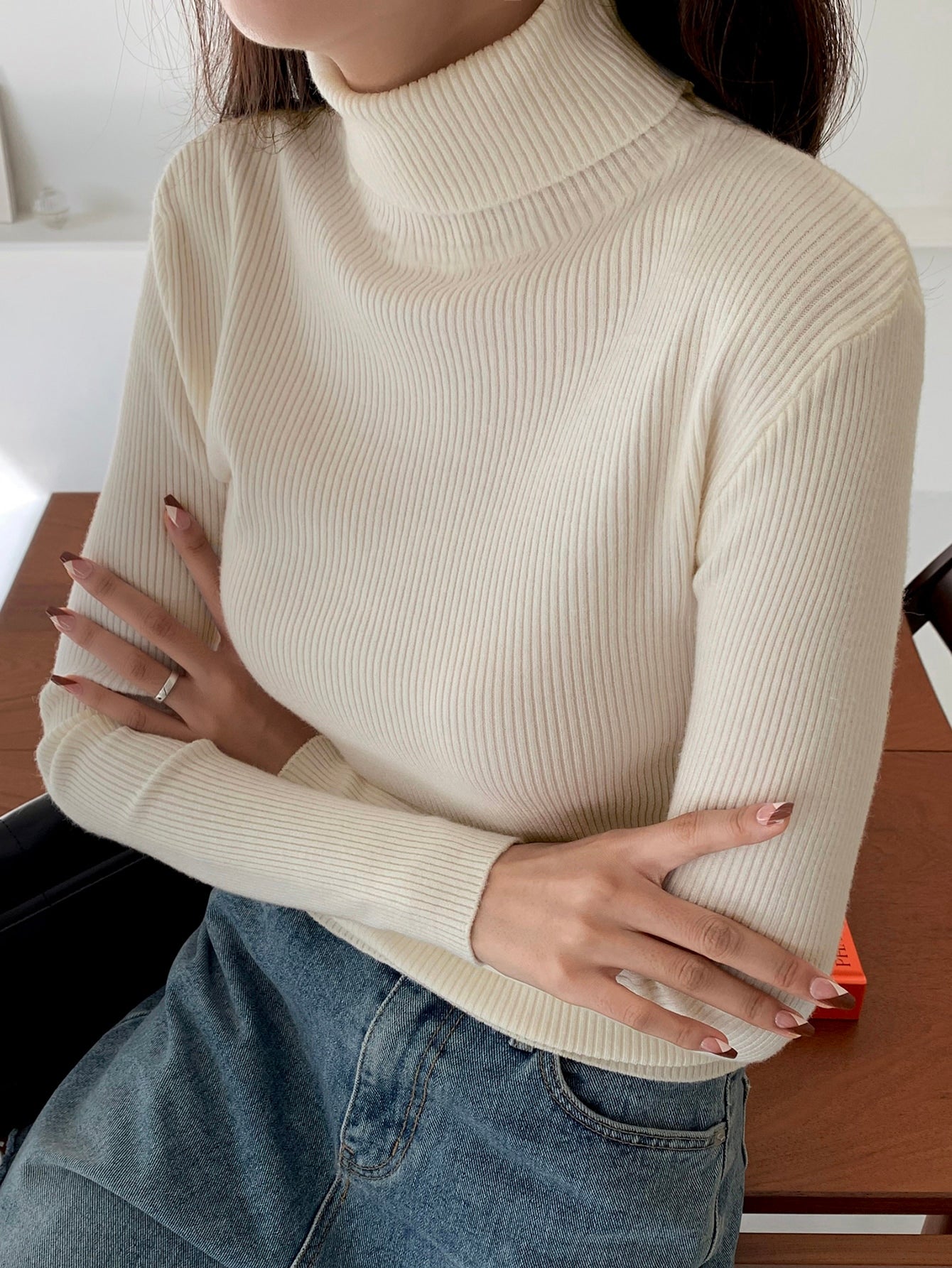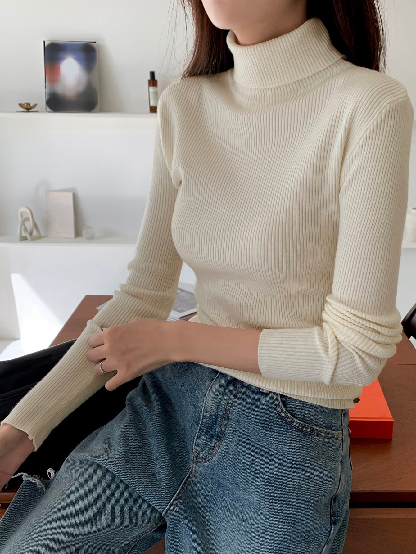 كنزة ديزي الجديدة ذات الياقة العالية بلون موحد مناسبة للعمل والمناسبات الرسمية وفصل الخريف