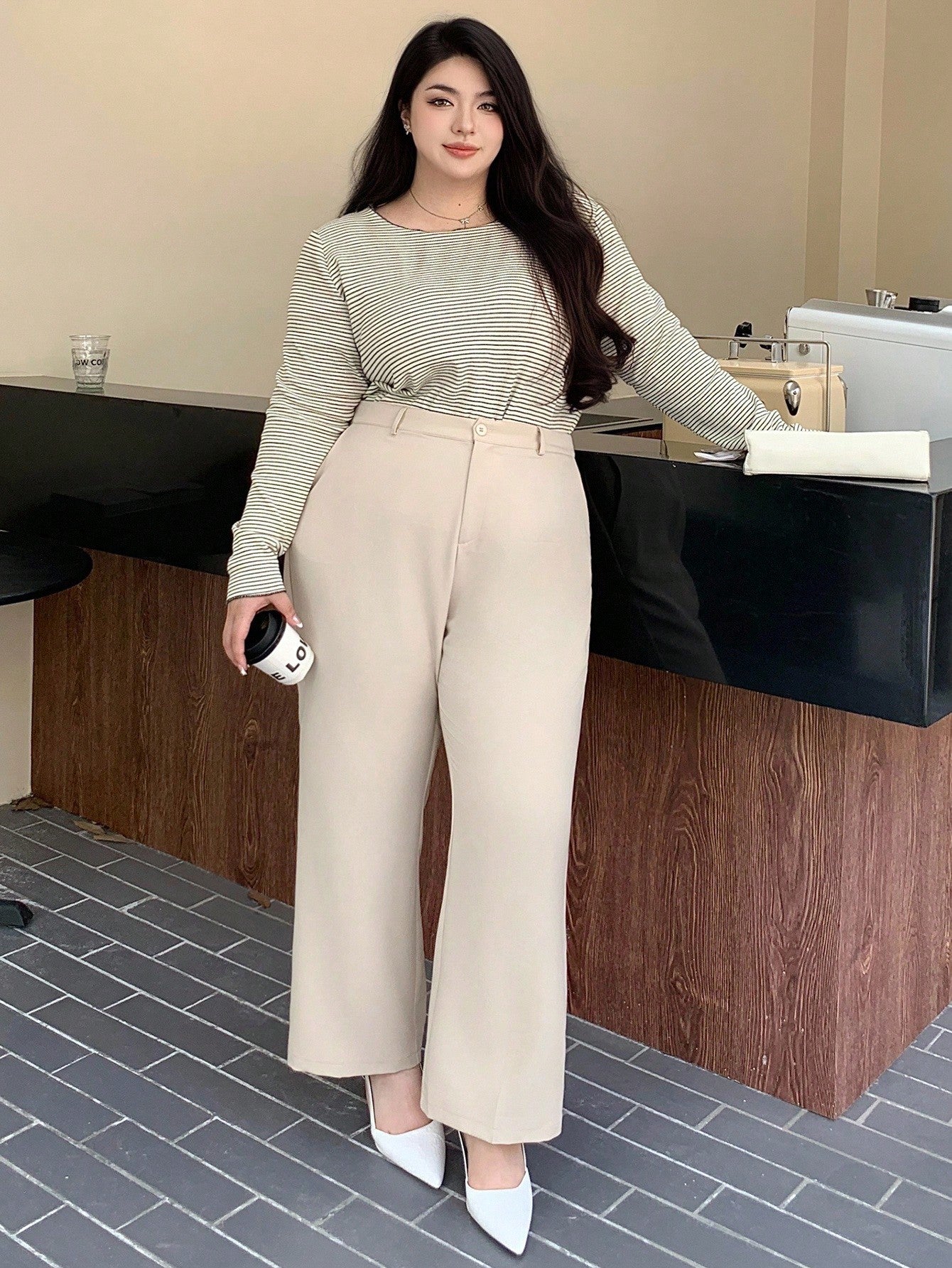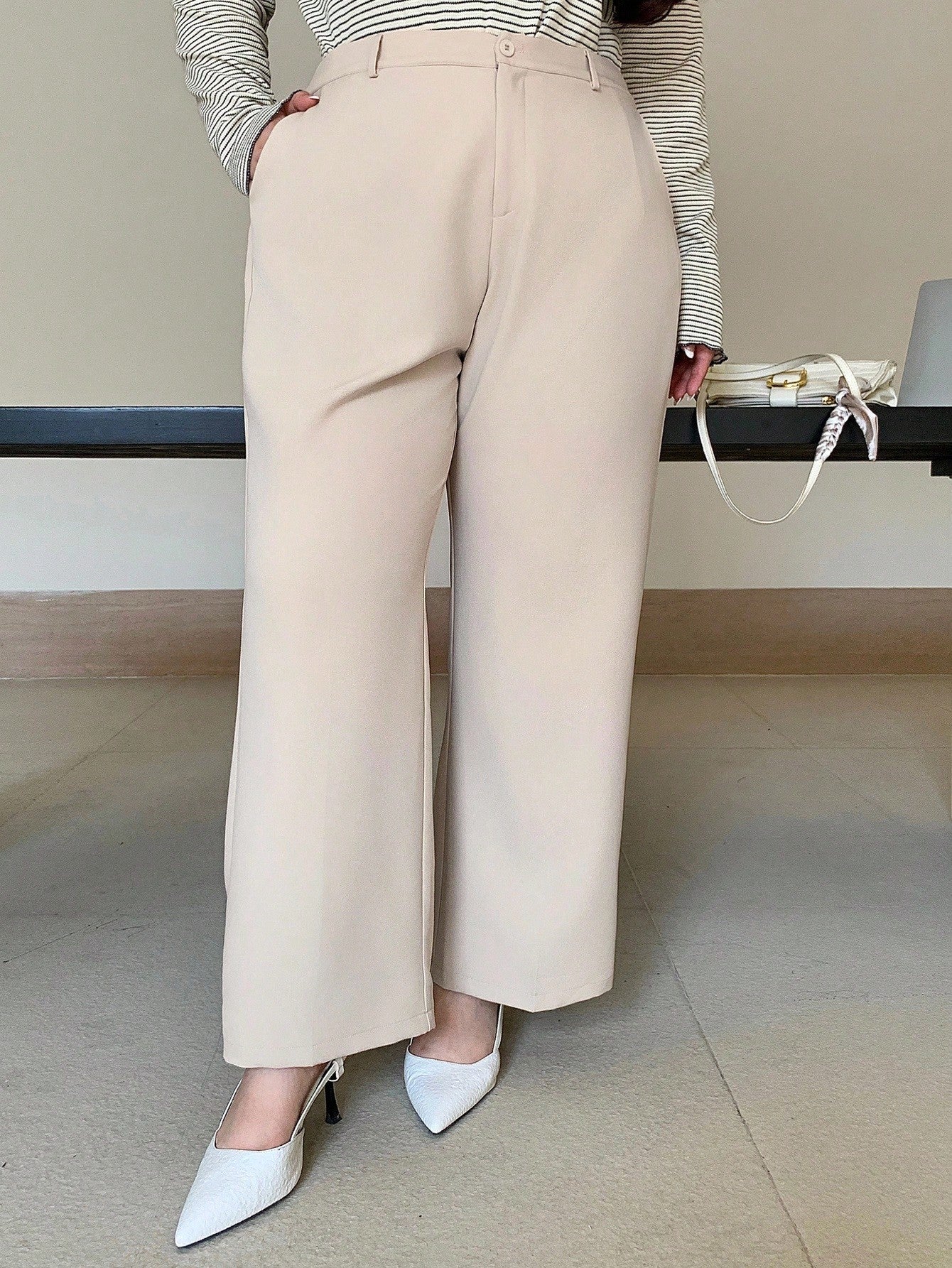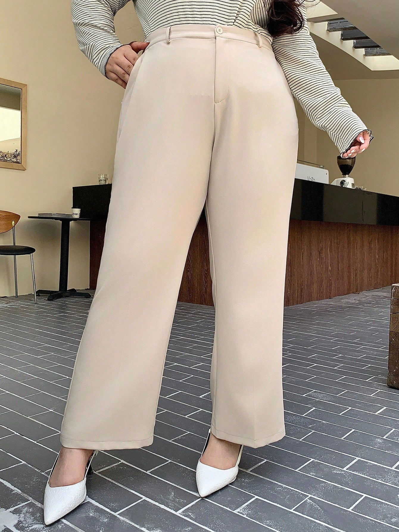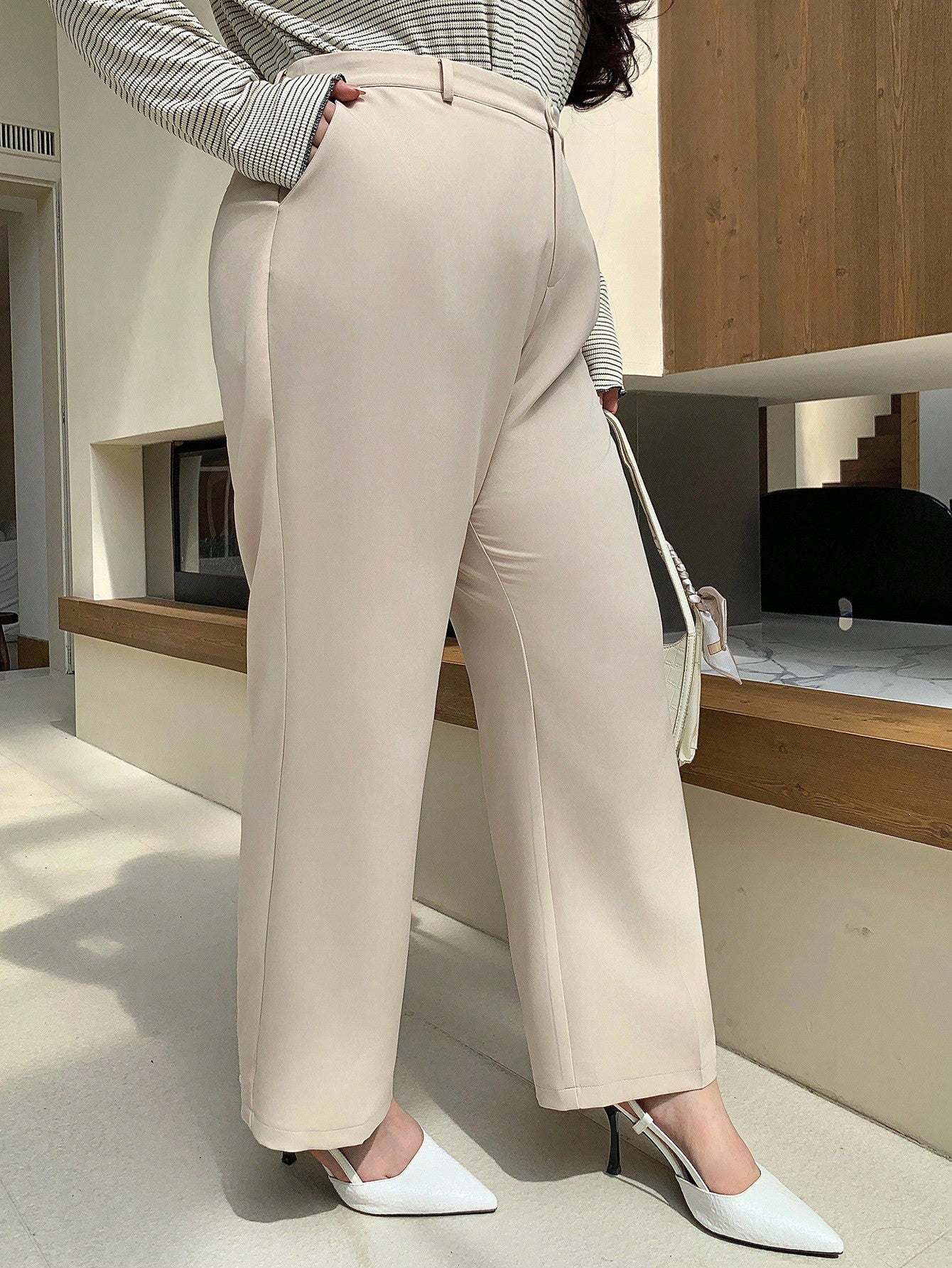 بدلة ديزي بلس مقاسات كبيرة بلون موحد وبنطال بقصة مستقيمة