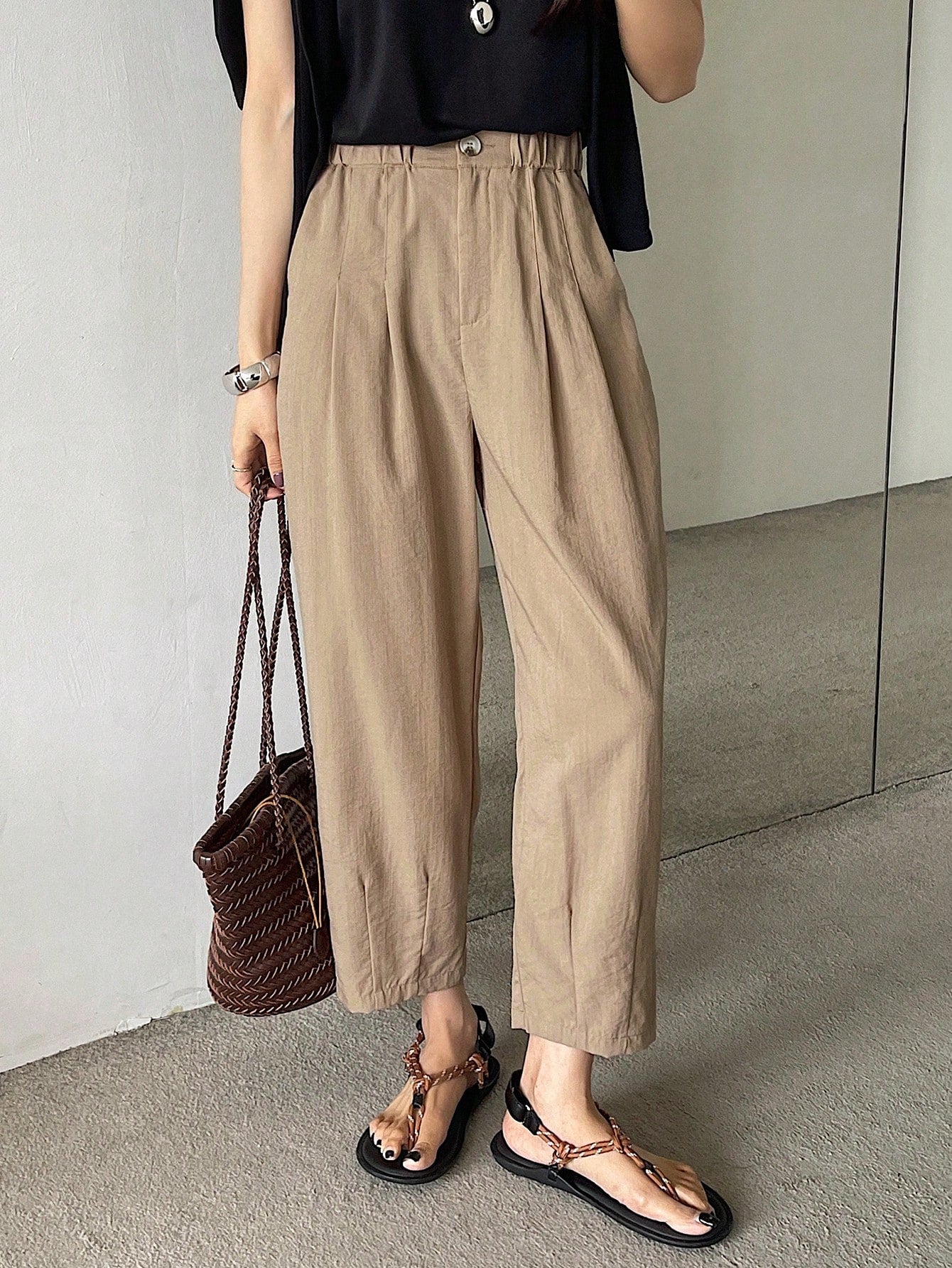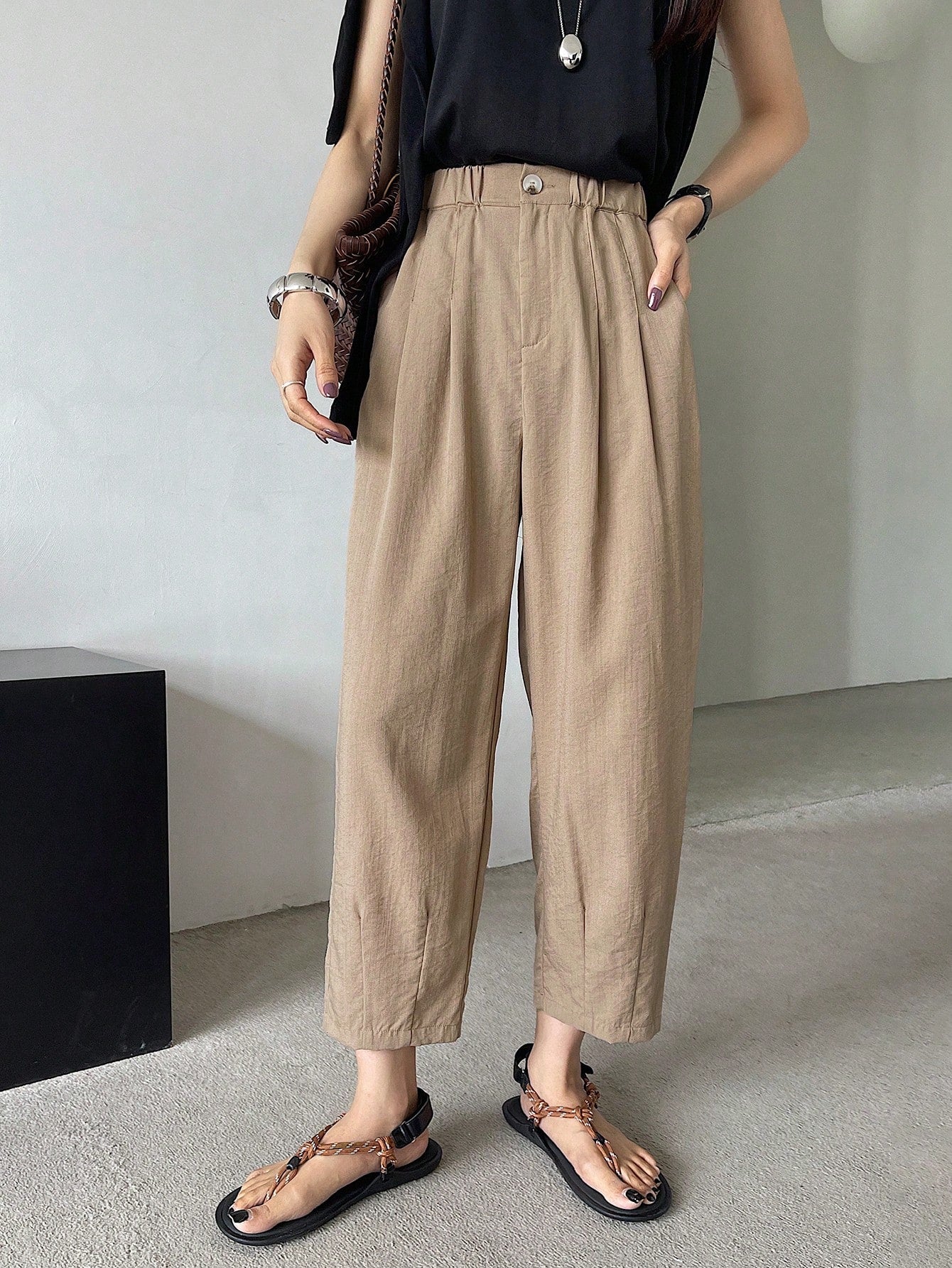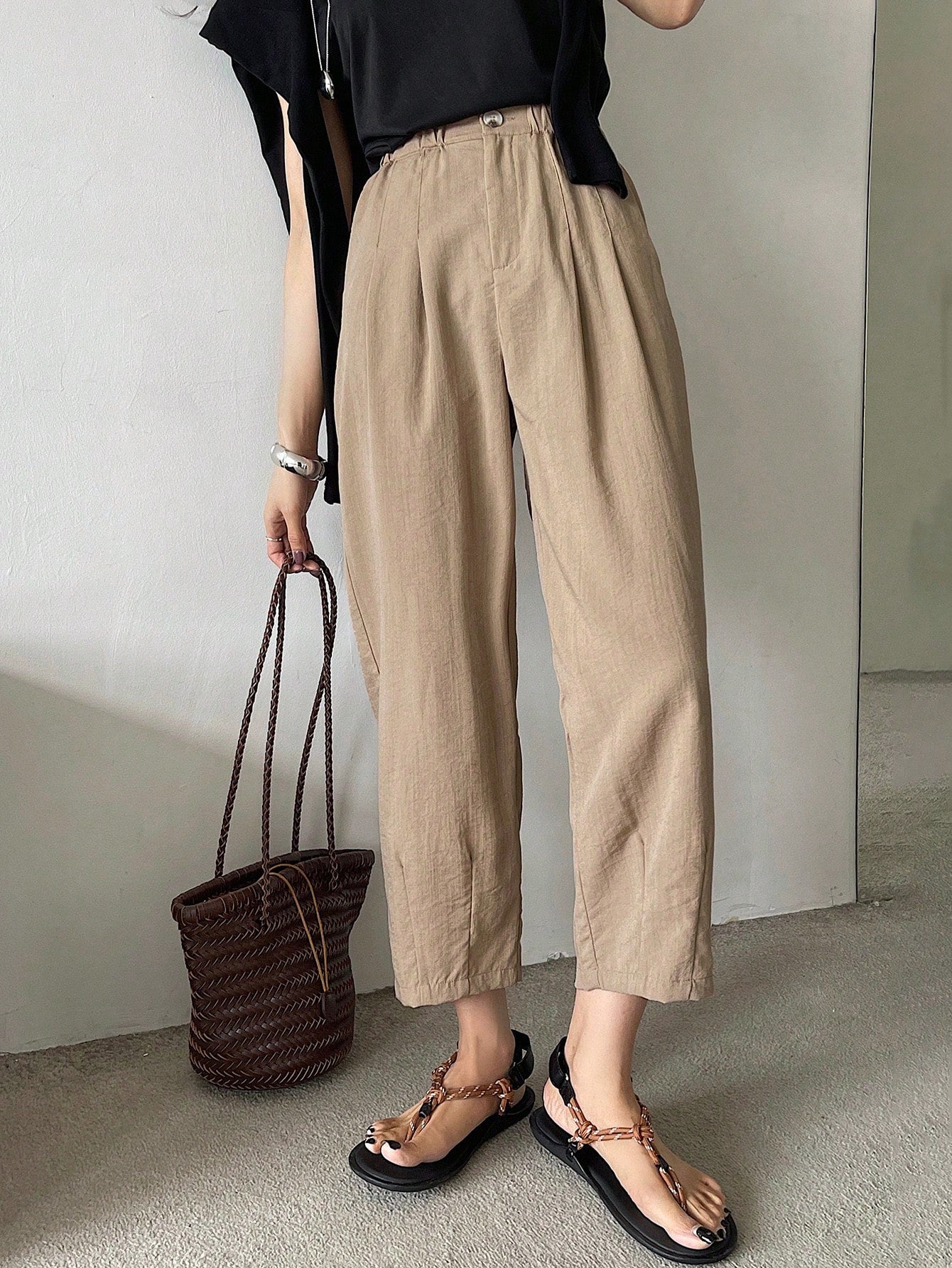 DAZY Solid Color Casual 7/8 Length Trousers, Suitable For Holiday And Business Occasions,Teacher Pants
