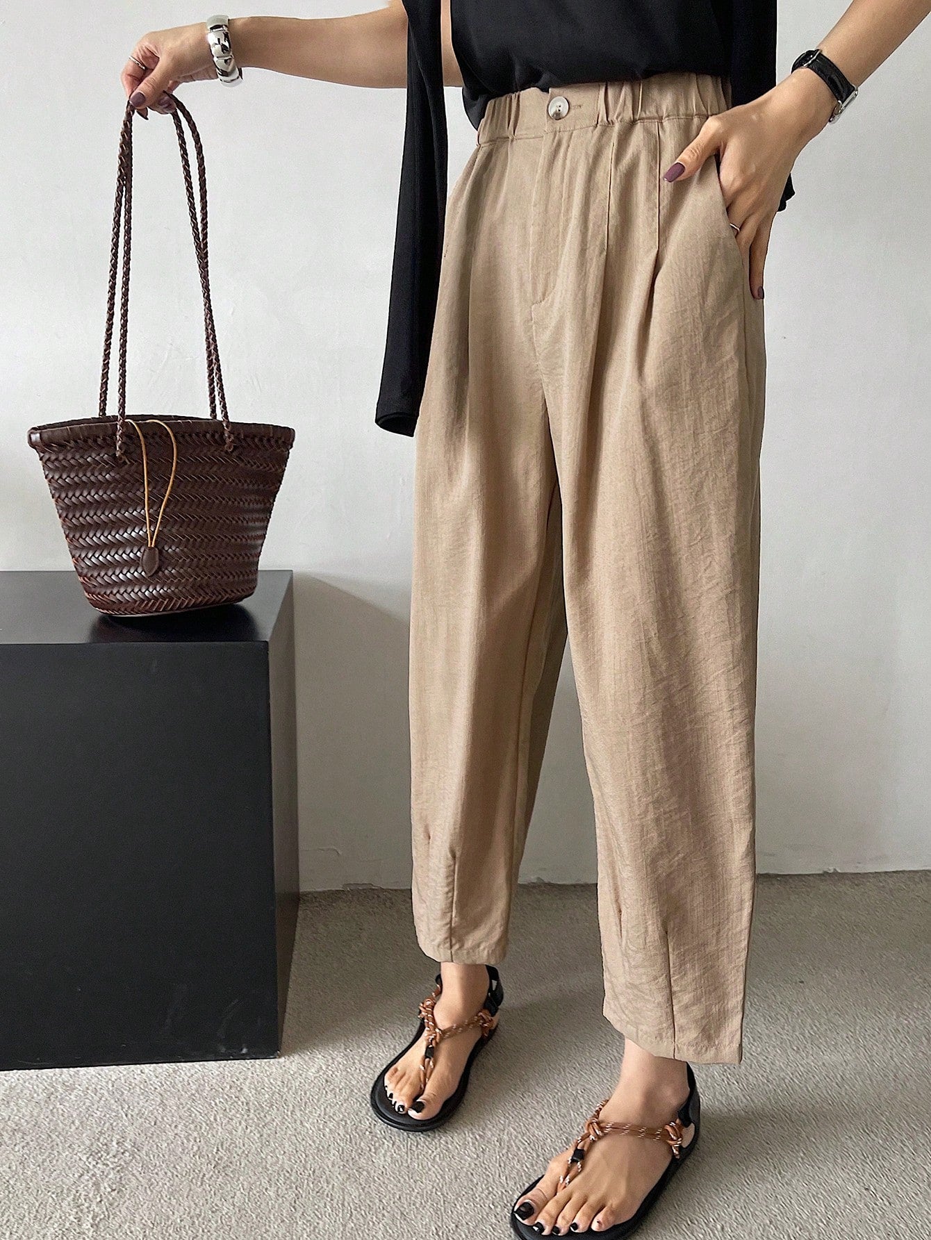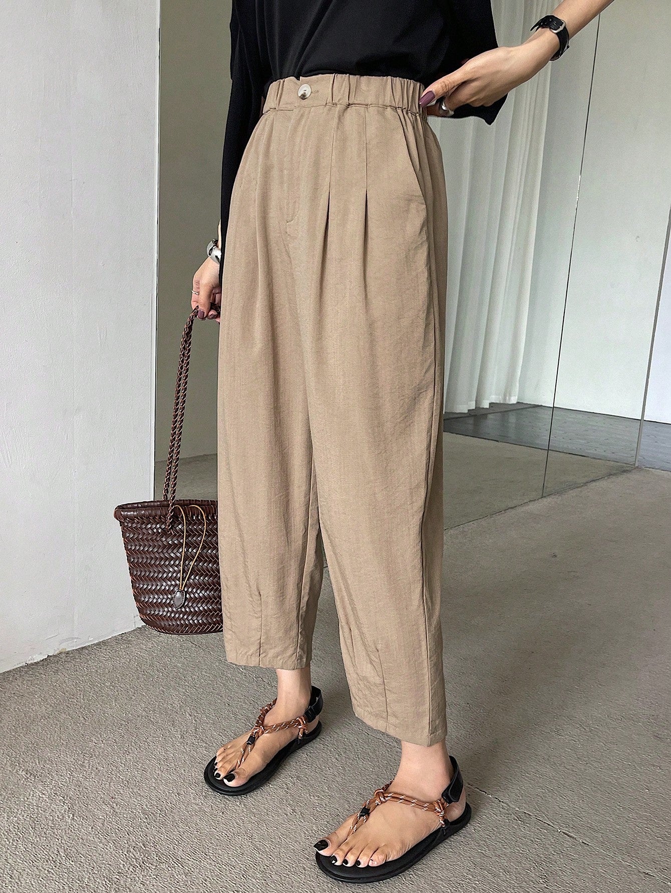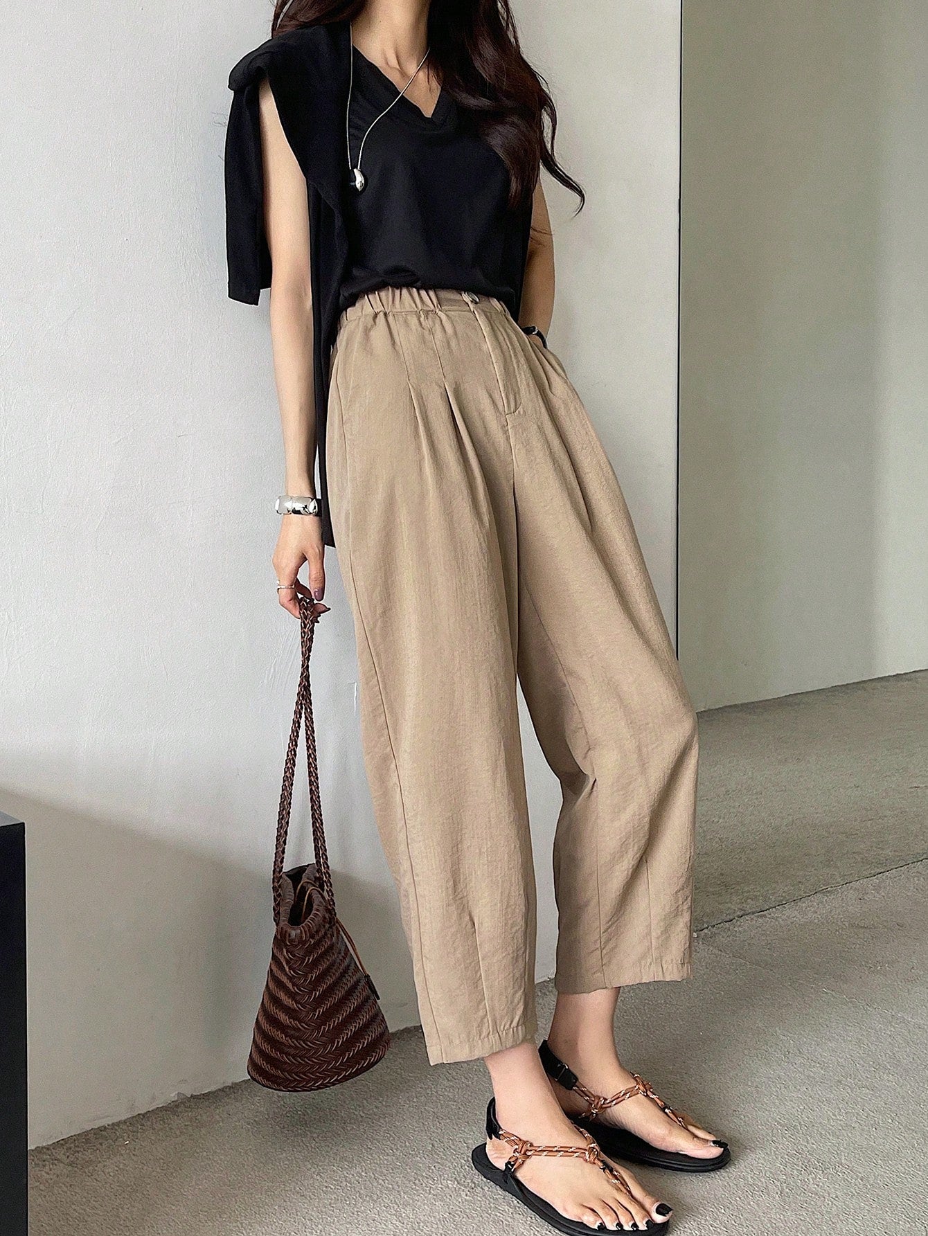 DAZY Solid Color Casual 7/8 Length Trousers, Suitable For Holiday And Business Occasions,Teacher Pants