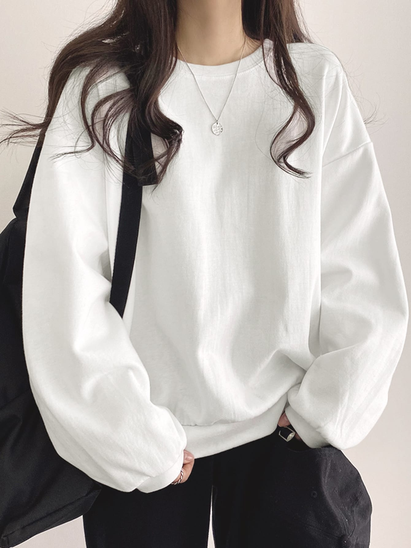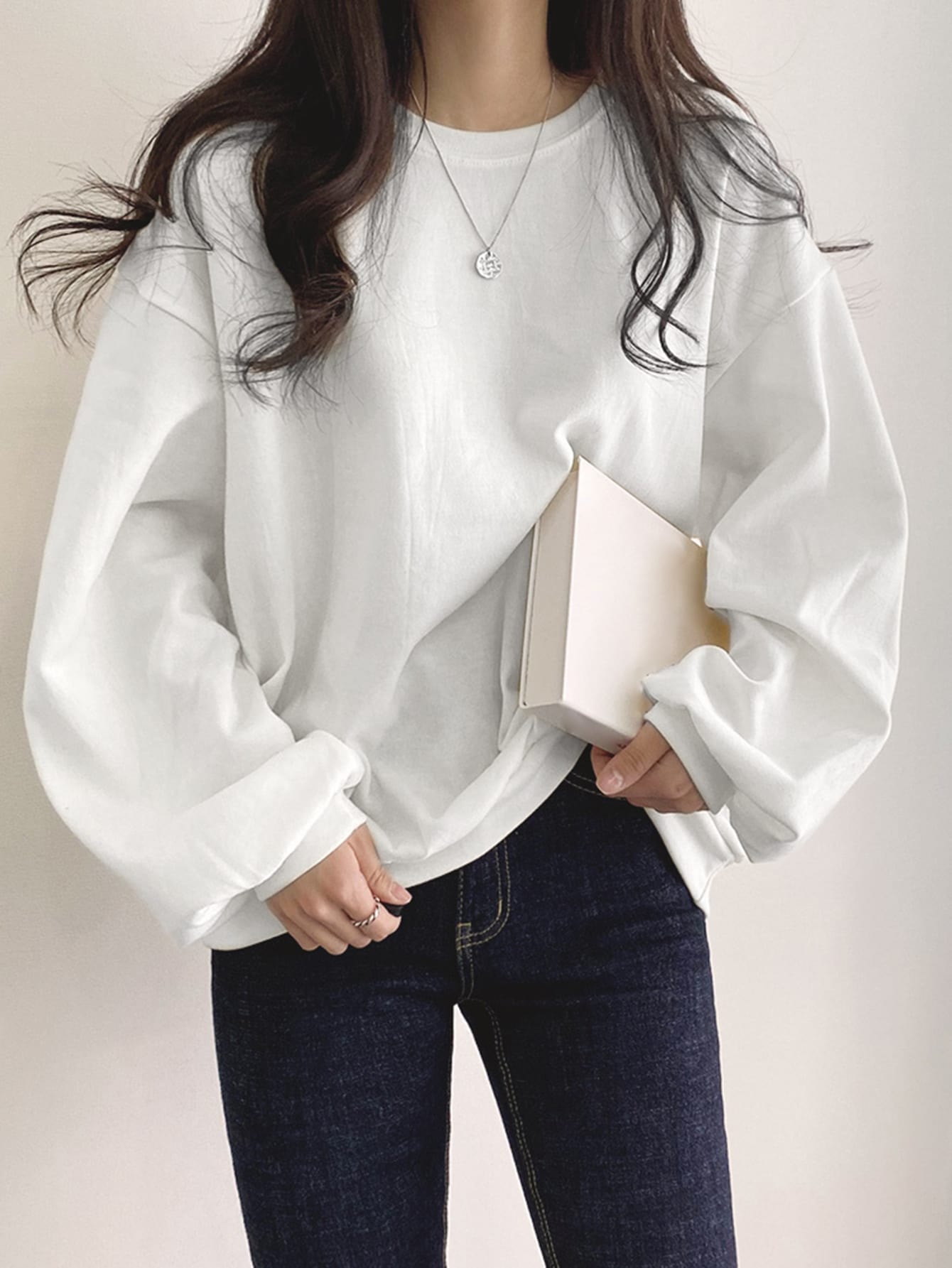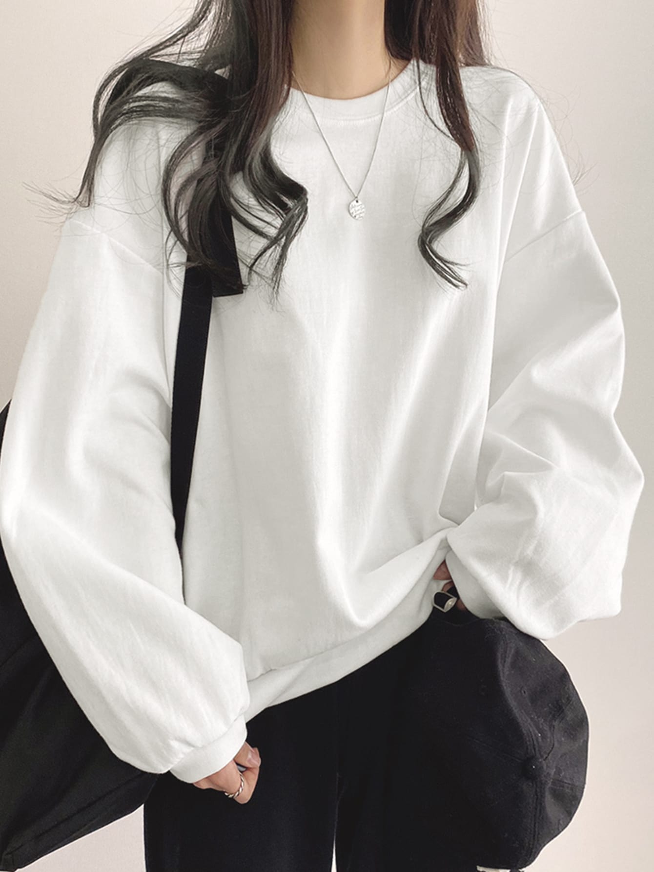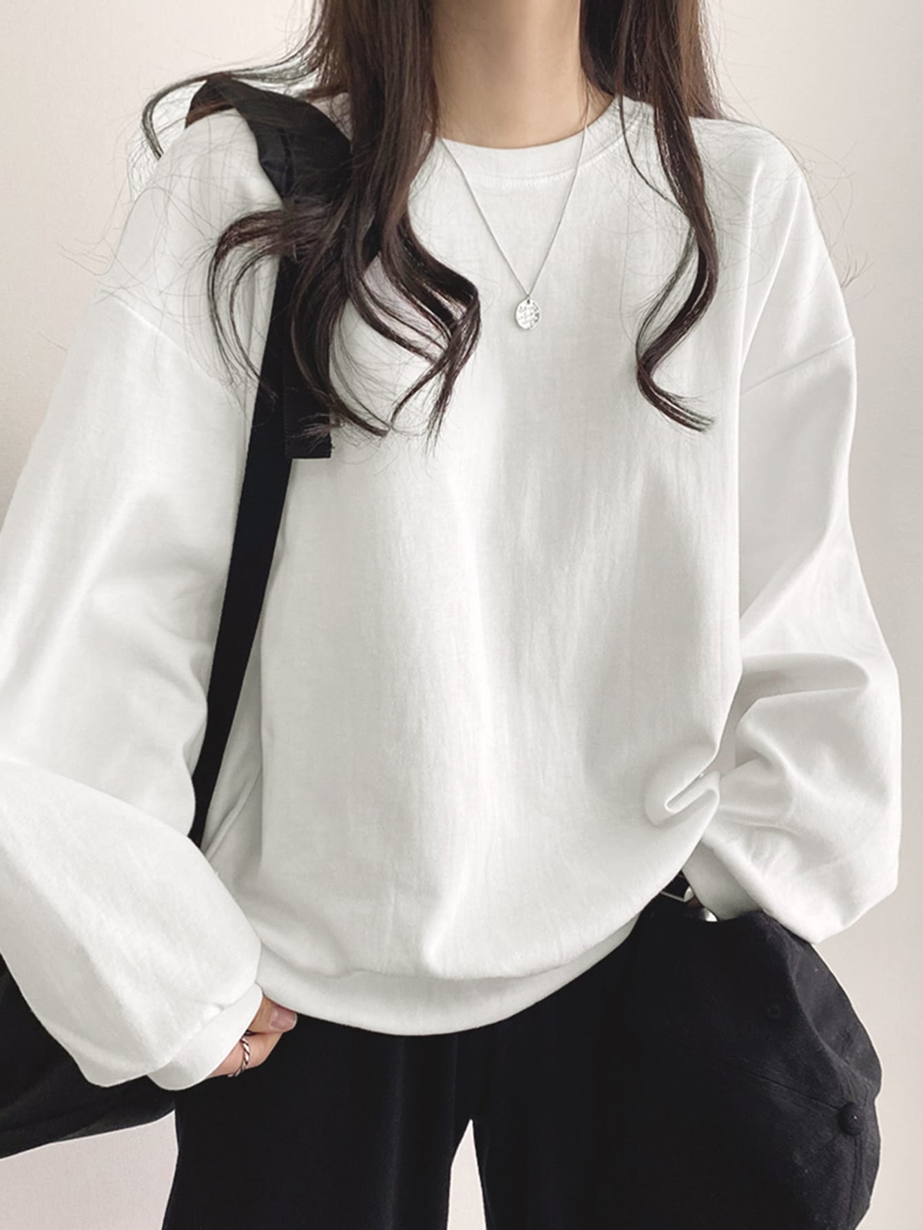 تيشيرت واسع بأكمام طويلة منسدلة الكتف من DAZY
