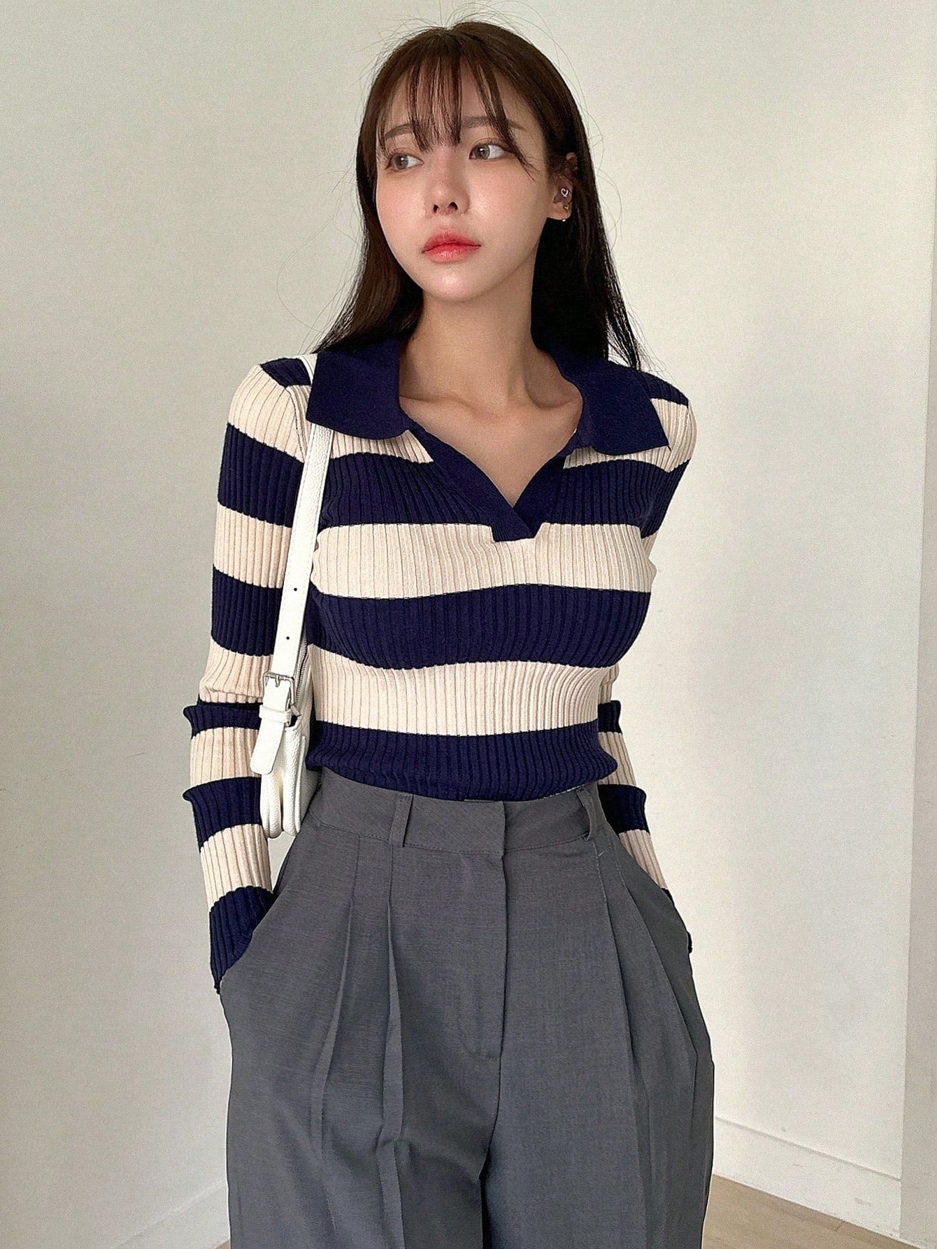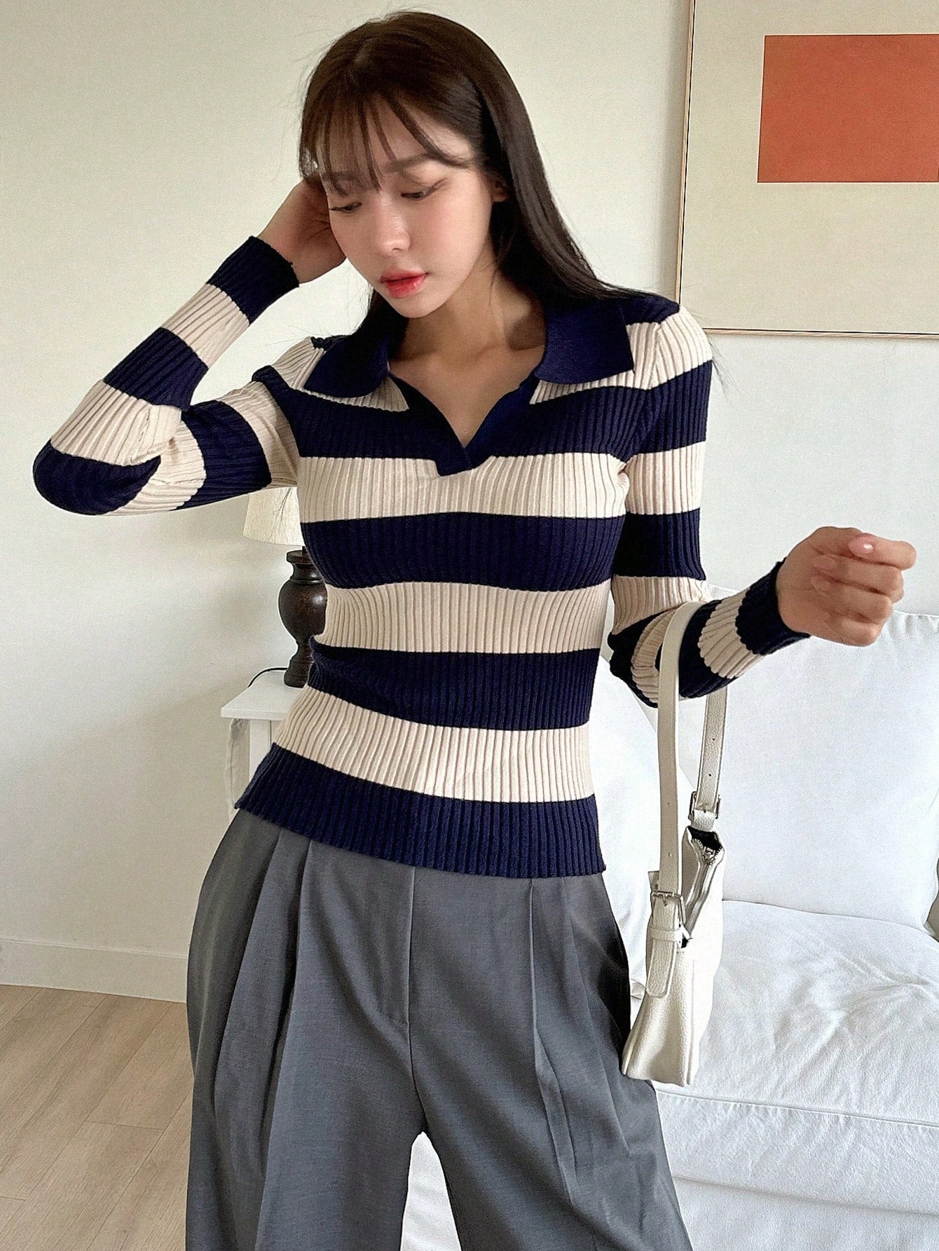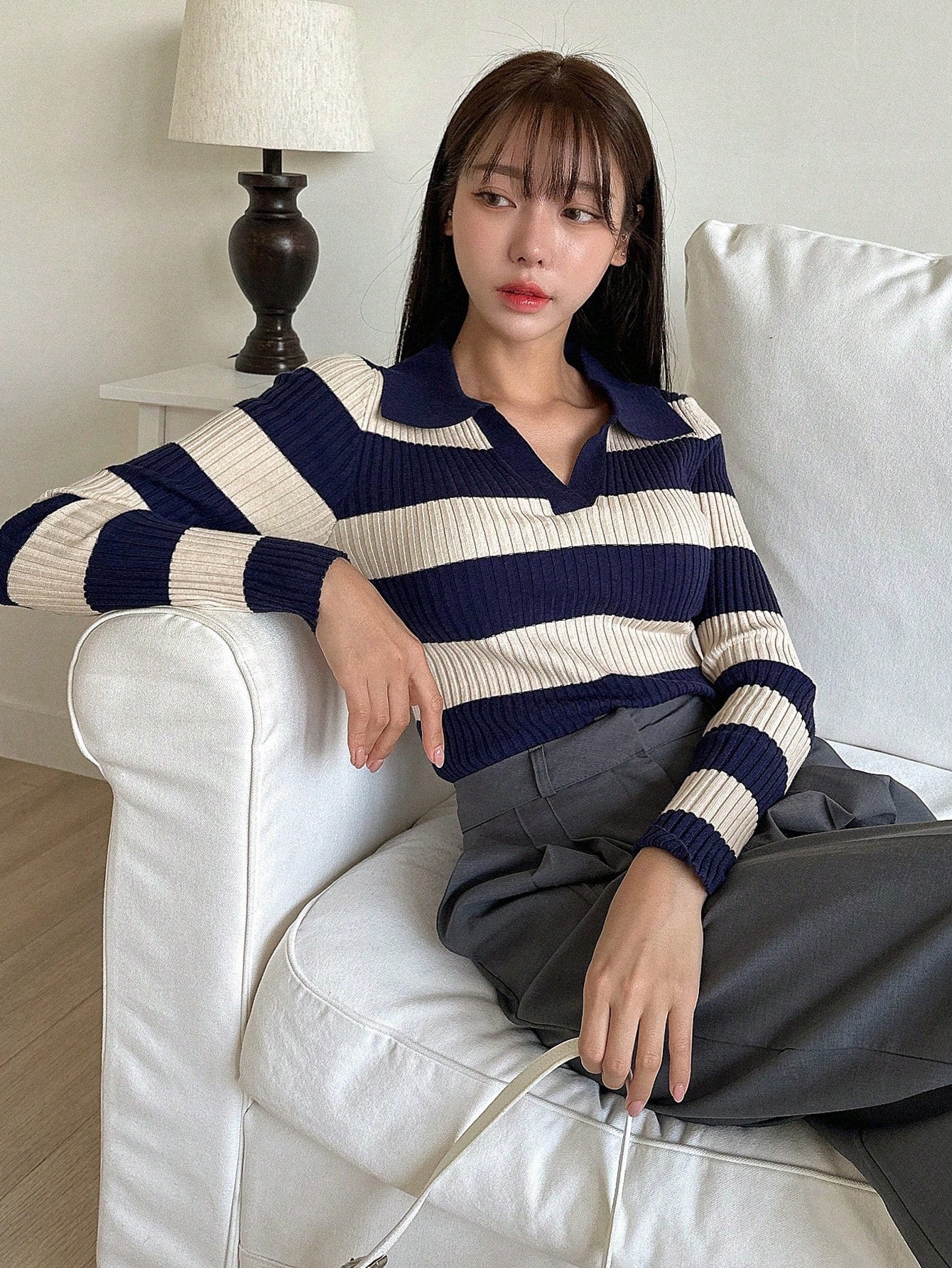كنزة صوفية محبوكة مضلعة بنمط مخطط من DAZY - ملابس الخريف