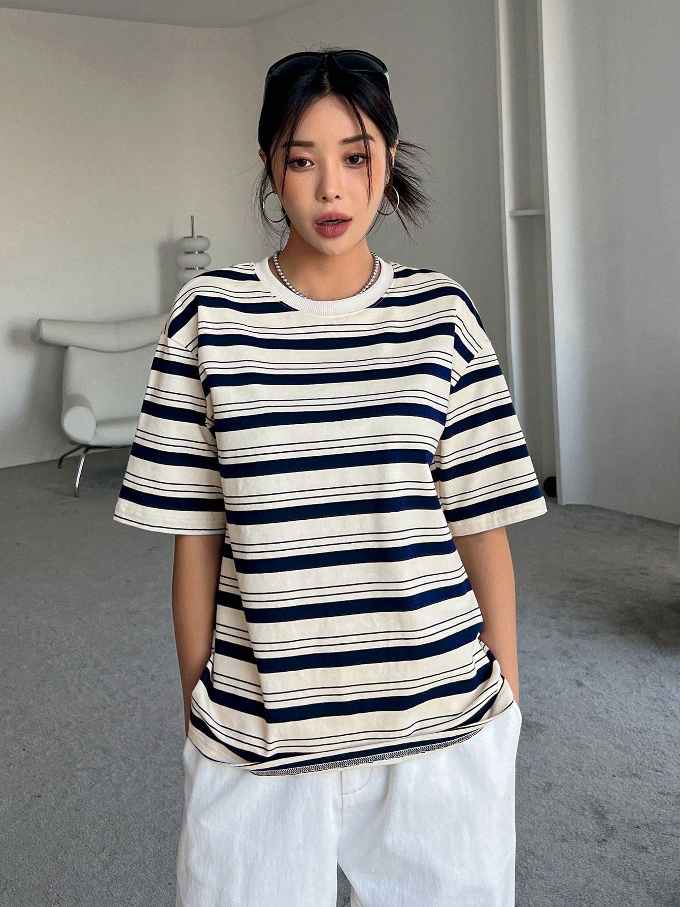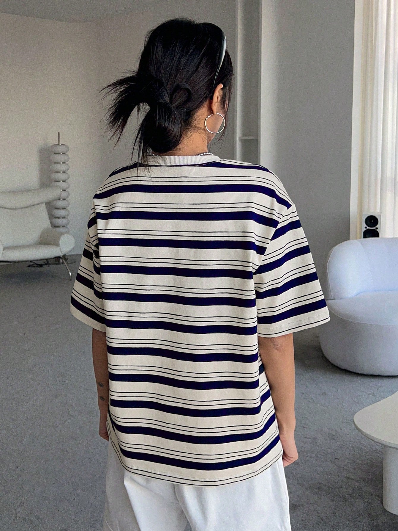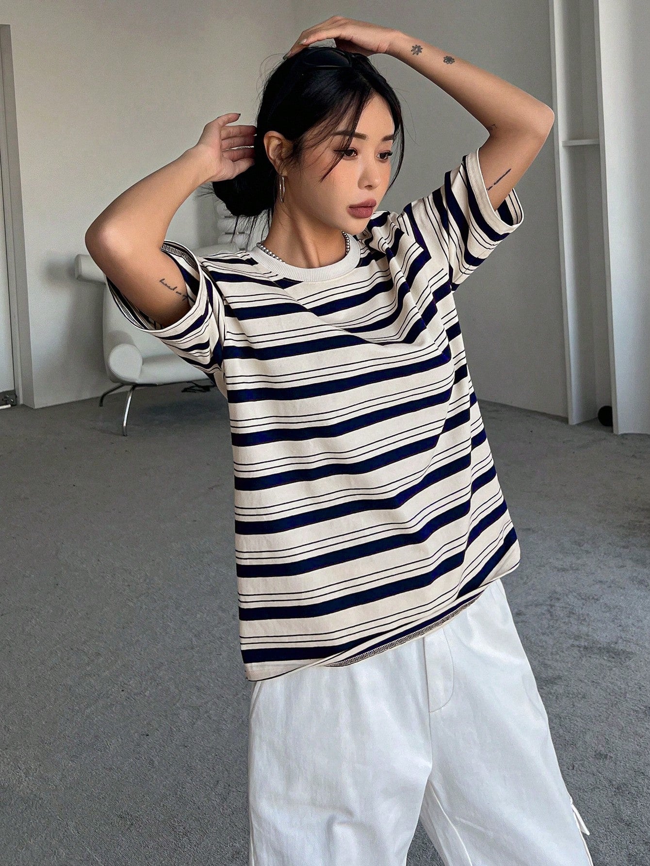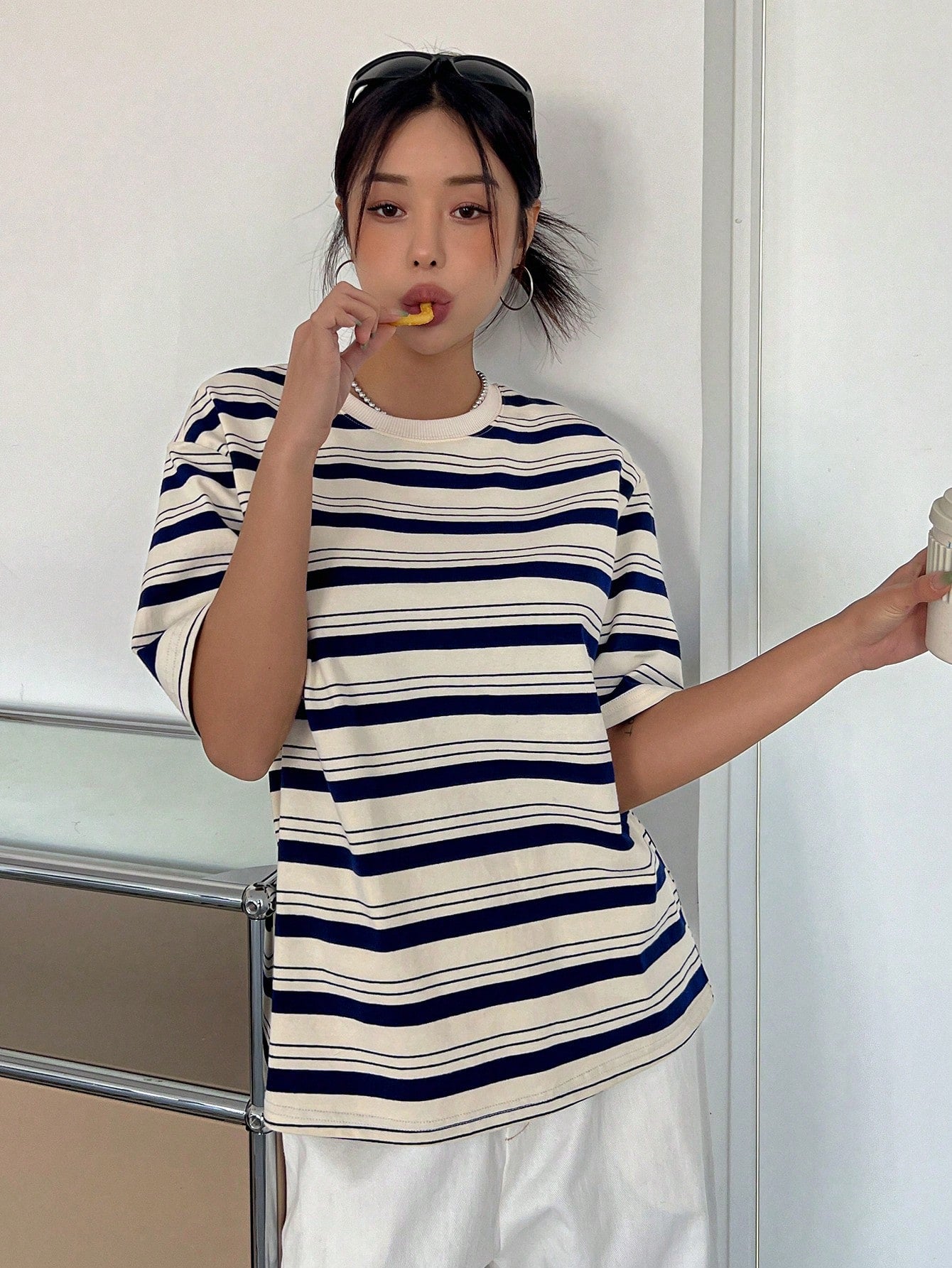 تي شيرت DAZY مخطط مطبوع بأكمام منسدلة