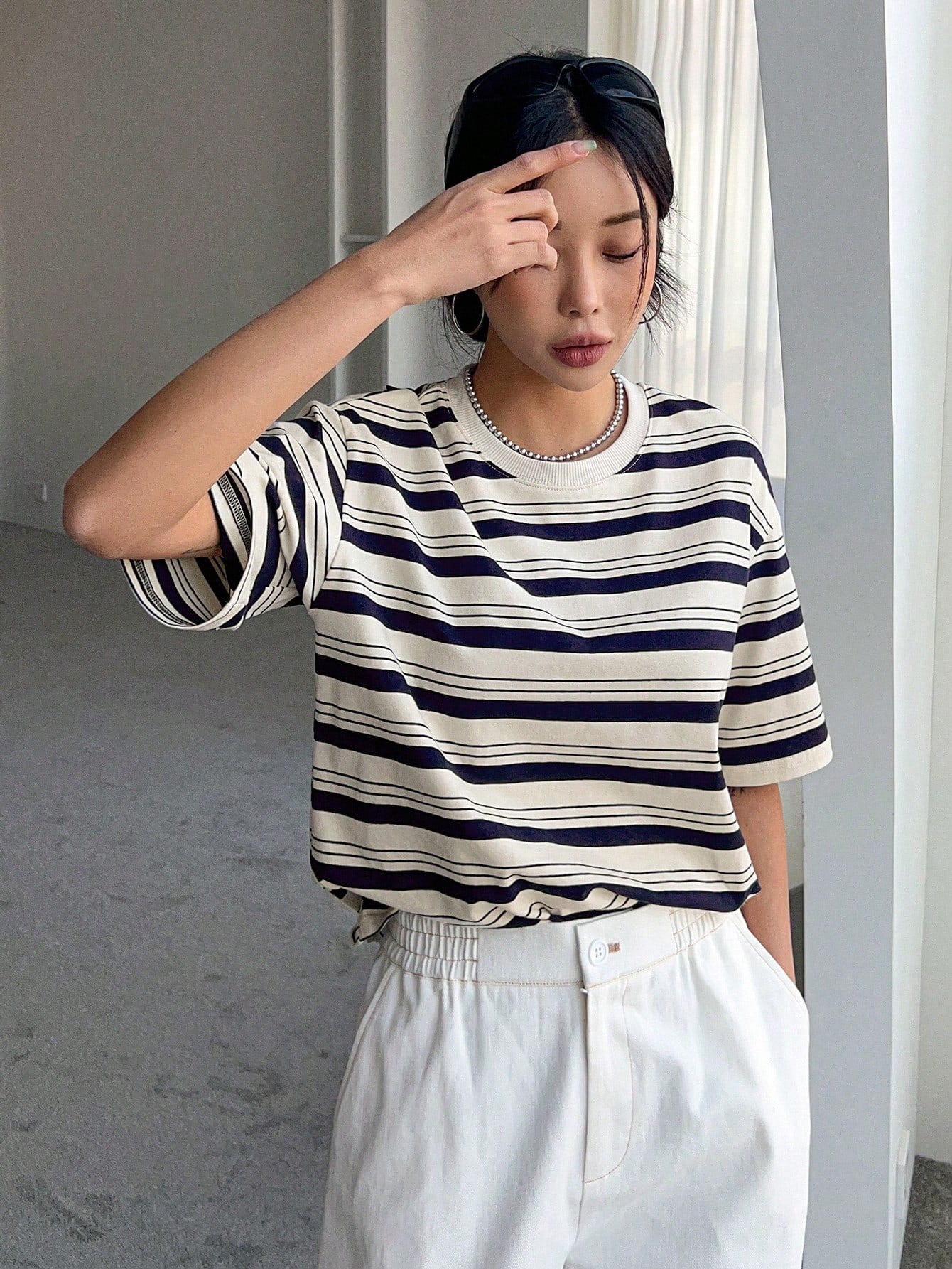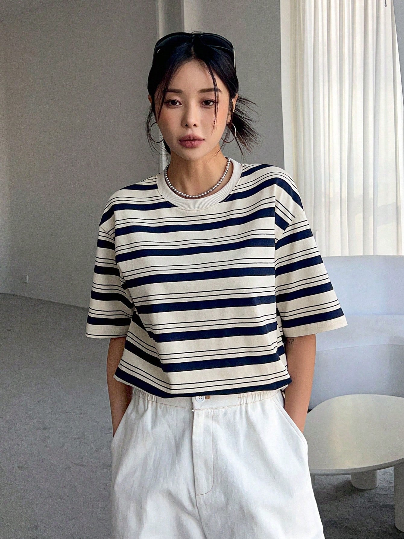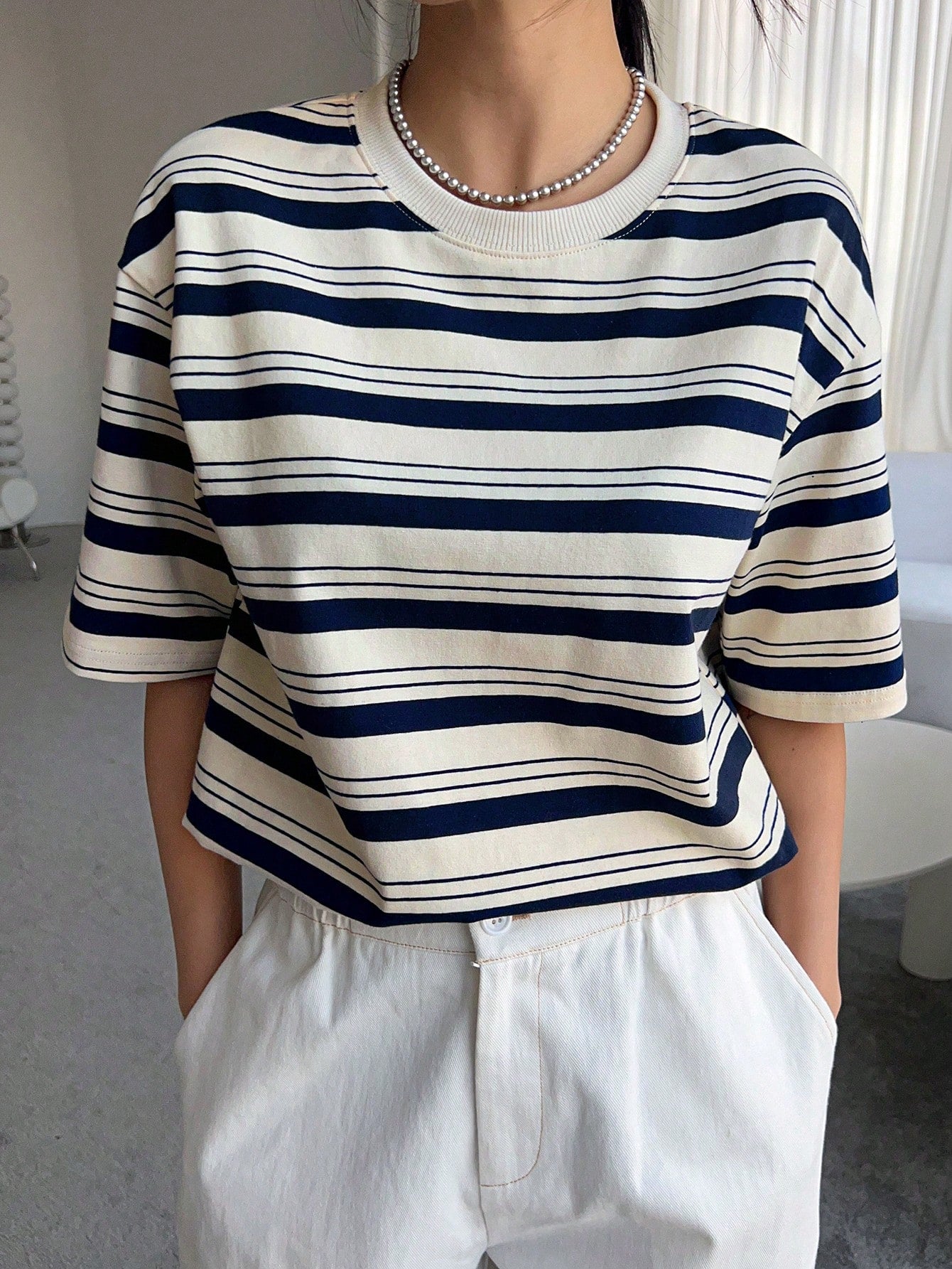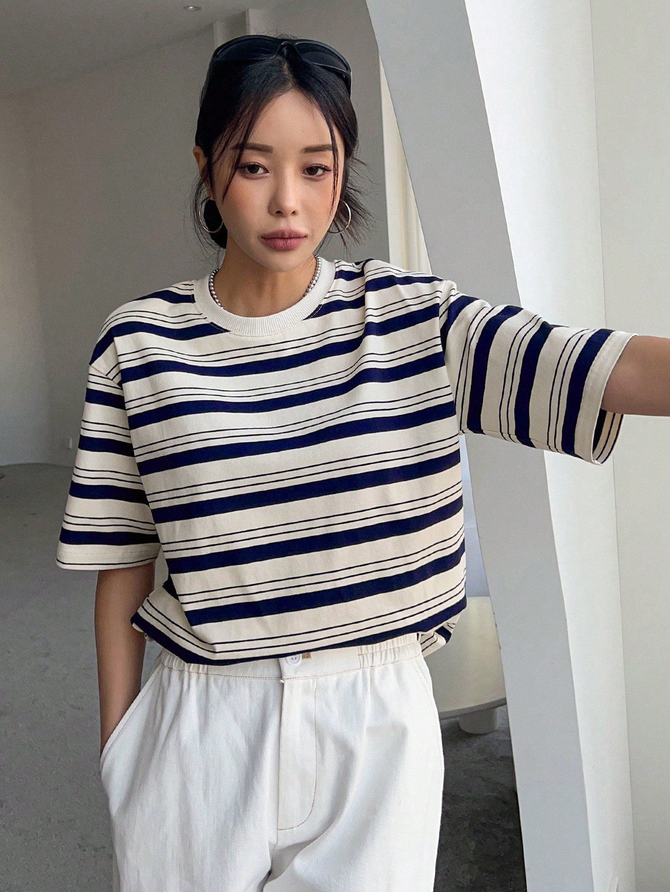 تي شيرت DAZY مخطط مطبوع بأكمام منسدلة