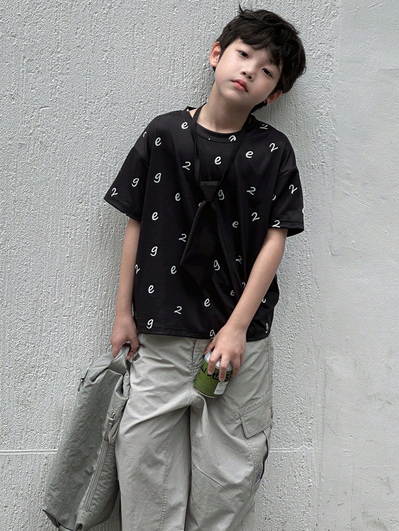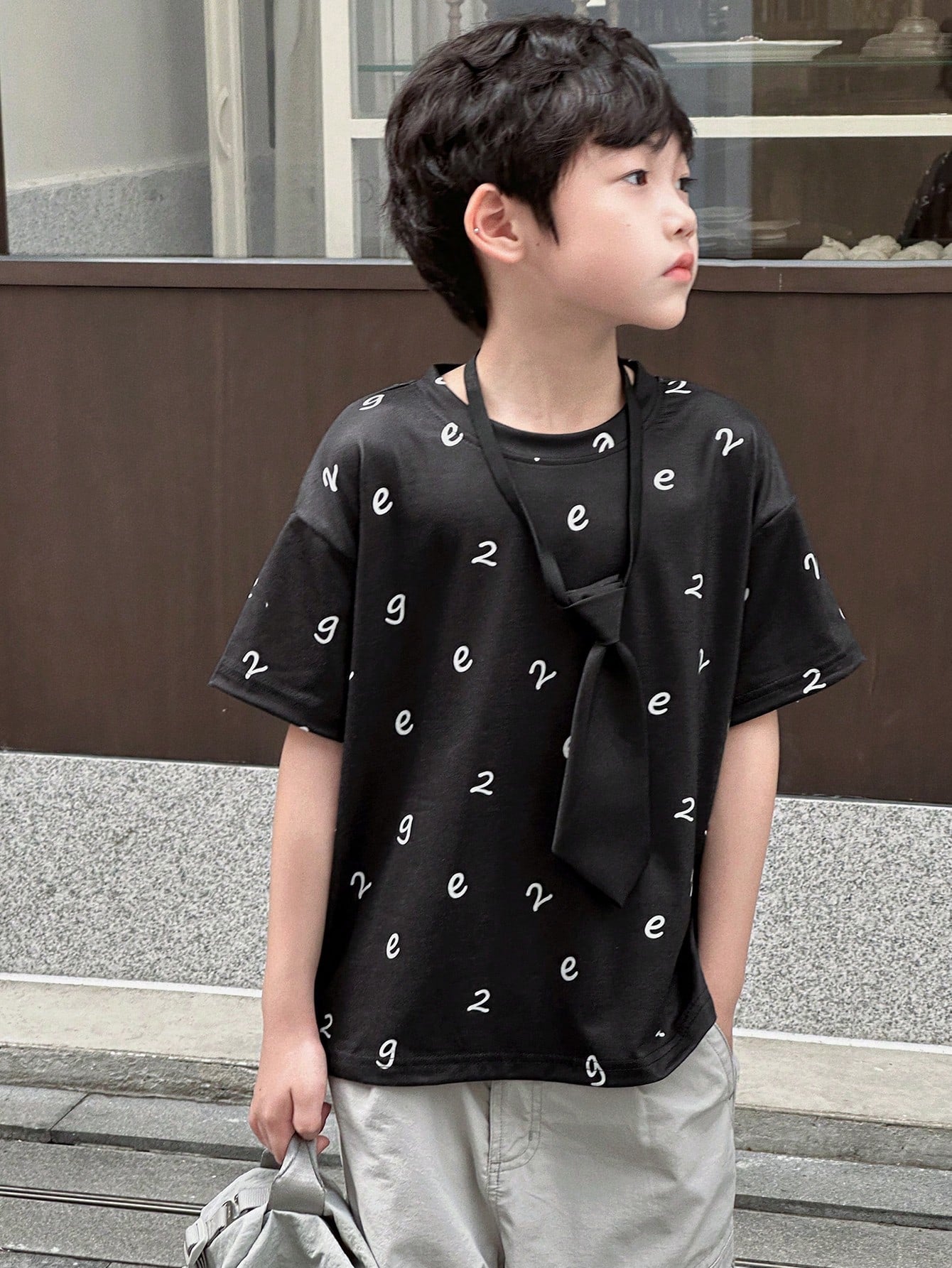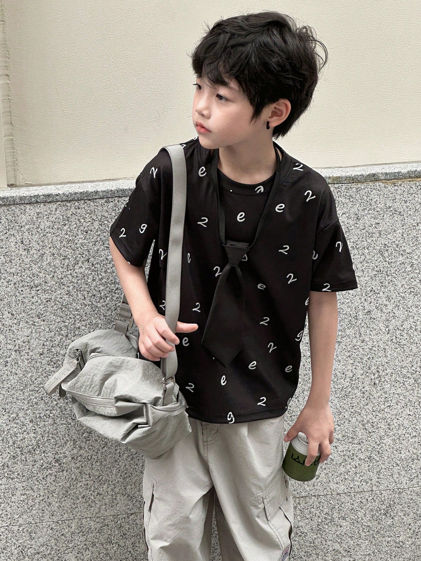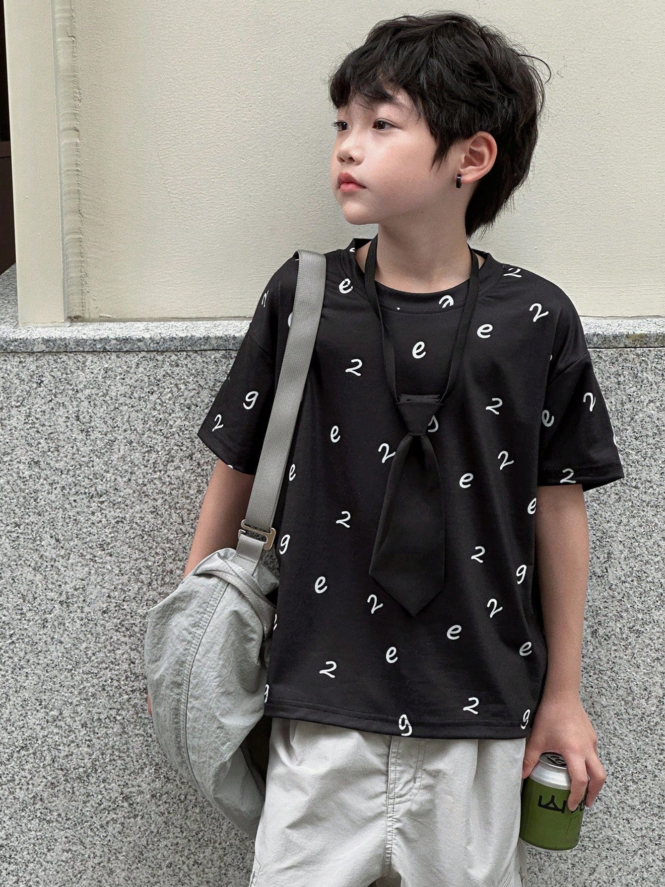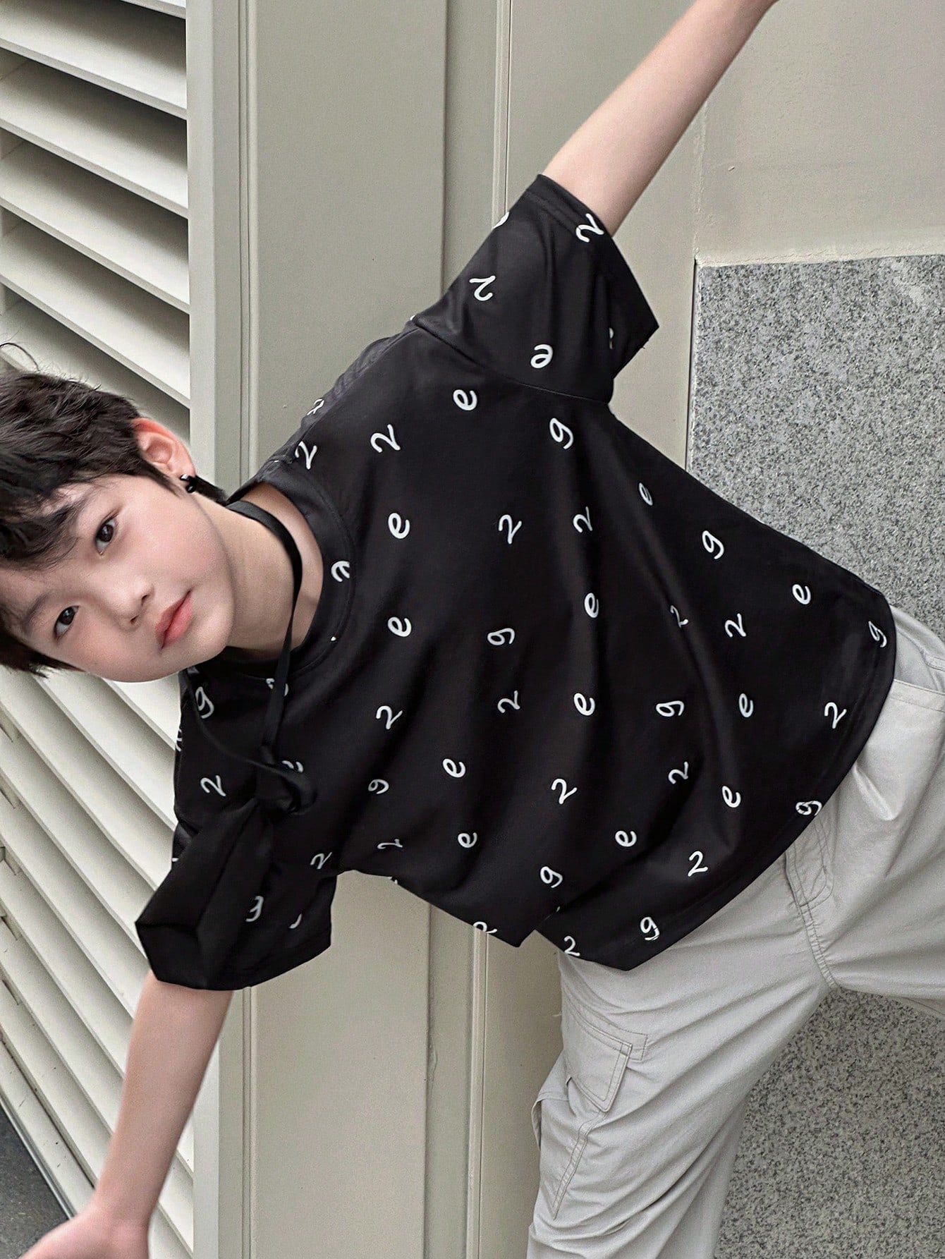 تي شيرت DAZY Tween للأولاد برقبة دائرية وطبعة حروف صيفية كاجوال على طراز الشارع، ملابس العودة إلى المدرسة
