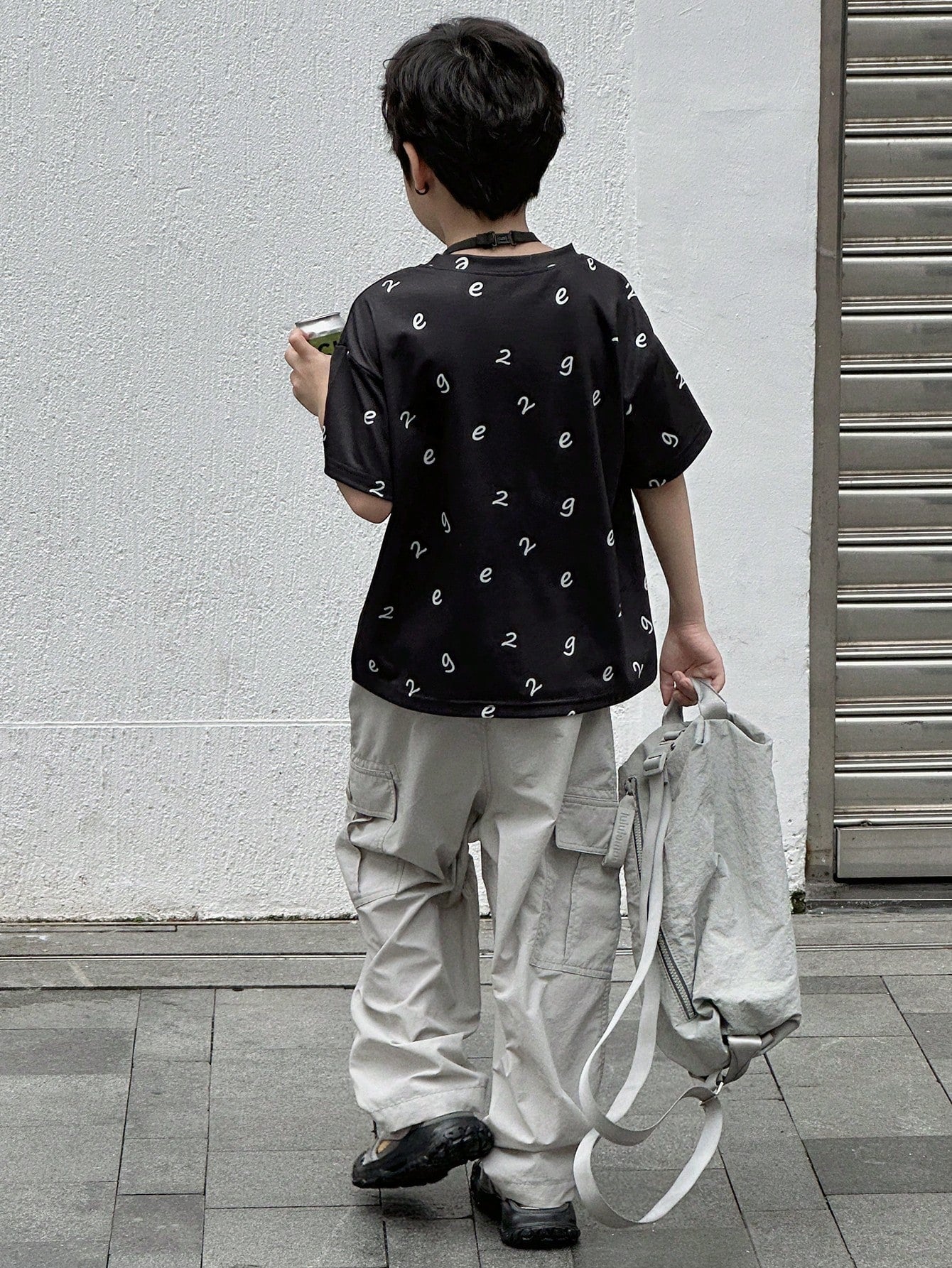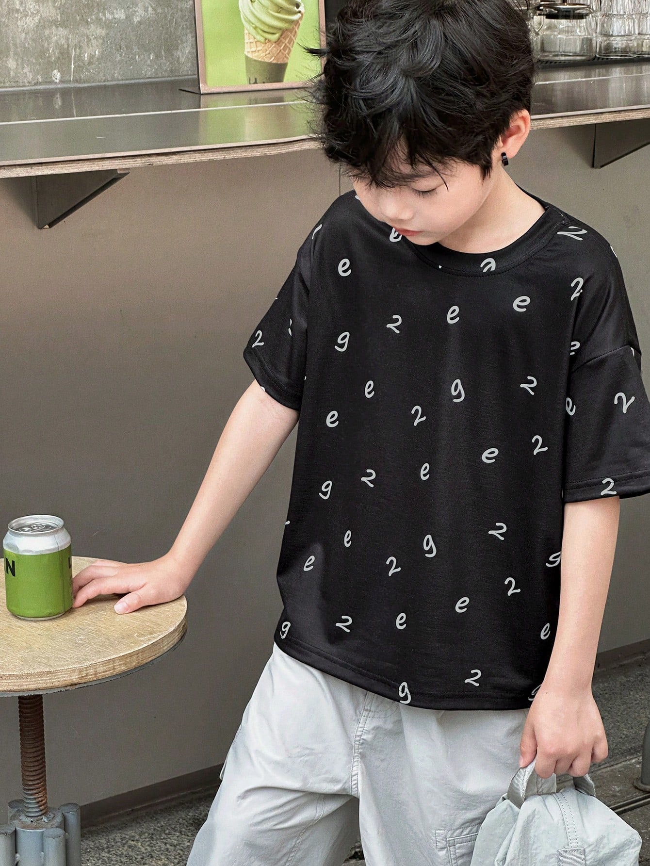 DAZY Tween Boys' Round Neck Summer Letter Printed Casual Street Style T-Shirt, Back To School Clothes