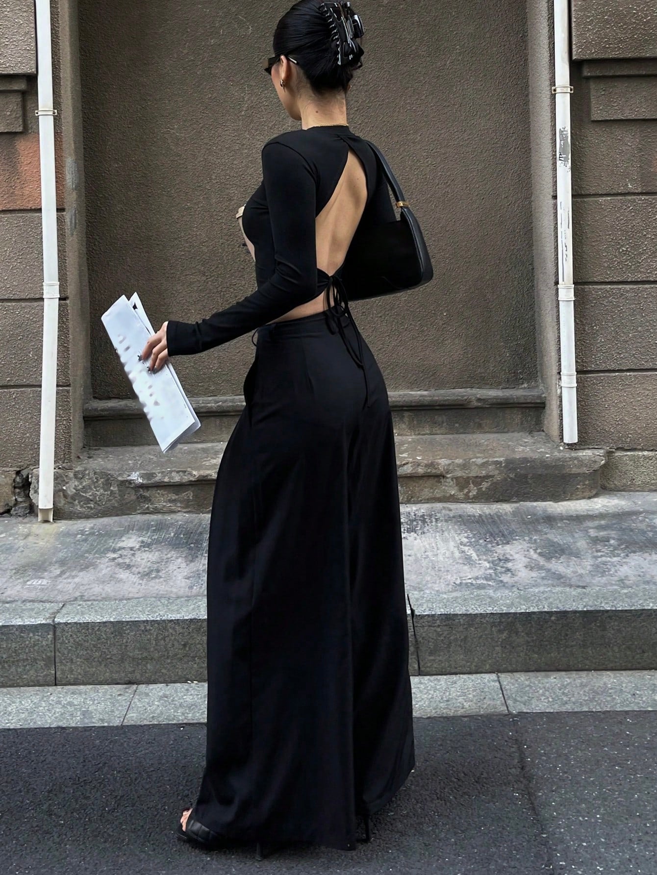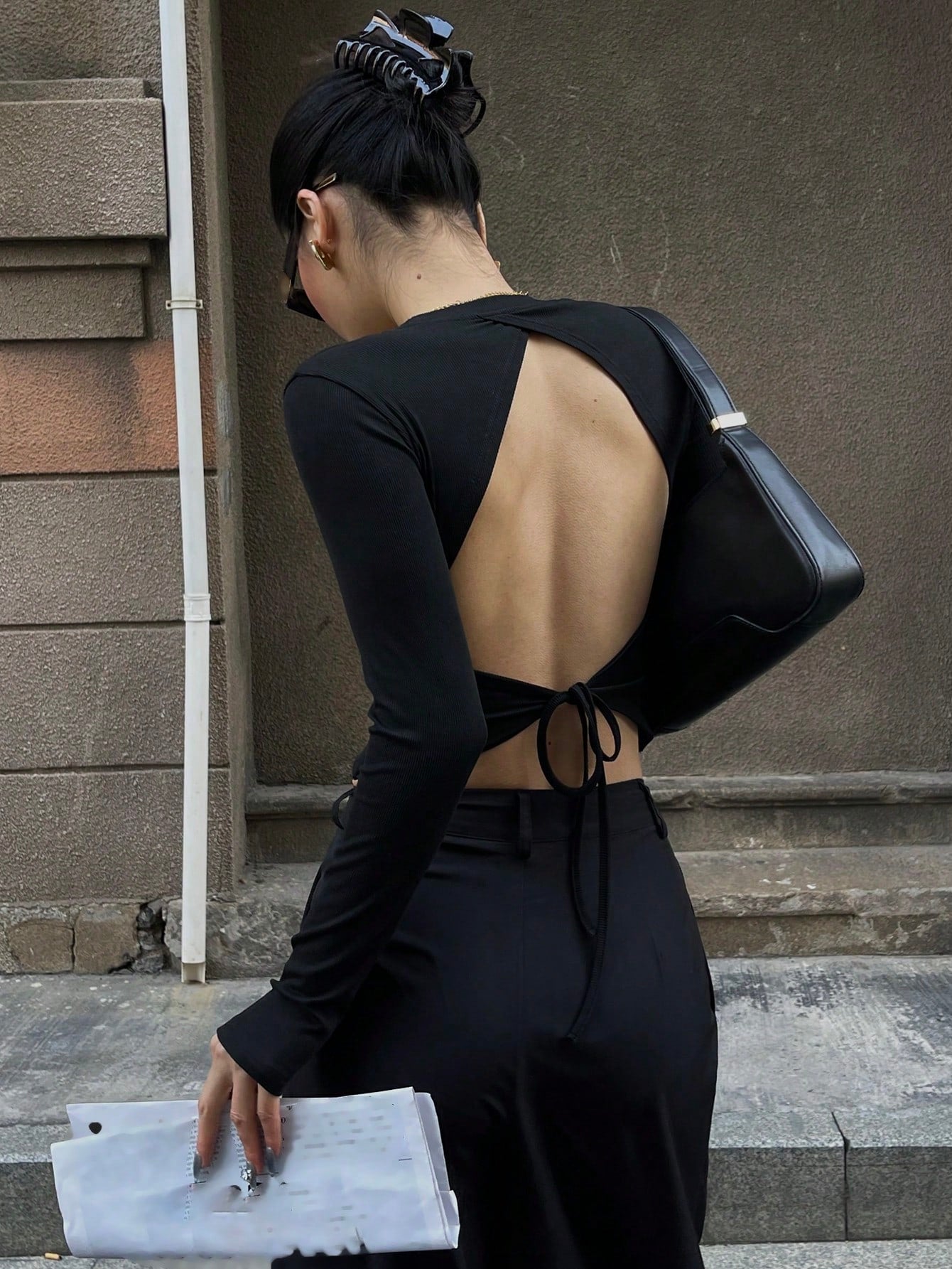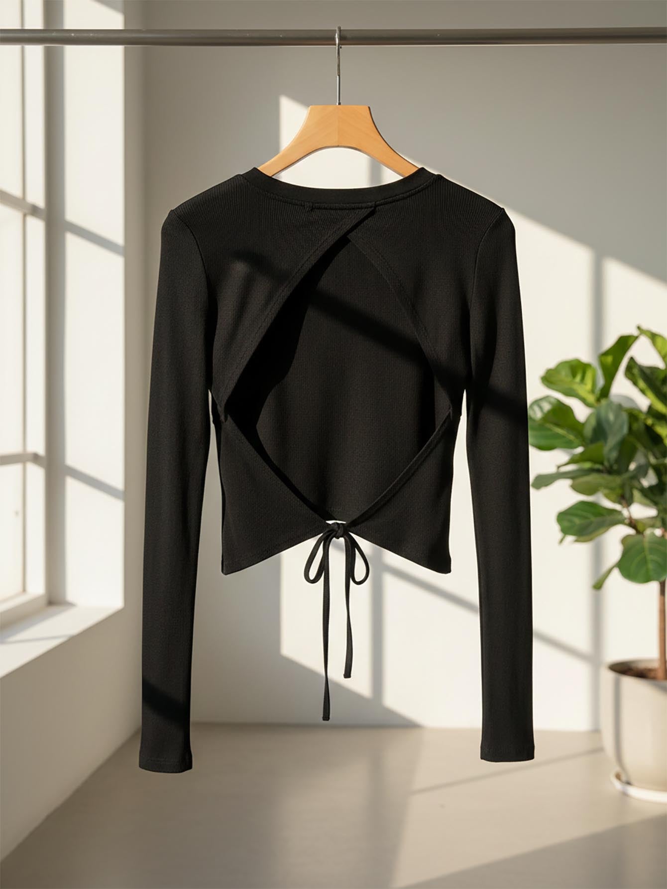 تيشيرت نسائي بأكمام طويلة من DAZY، مكشوف الظهر، بقصة ضيقة، مثير