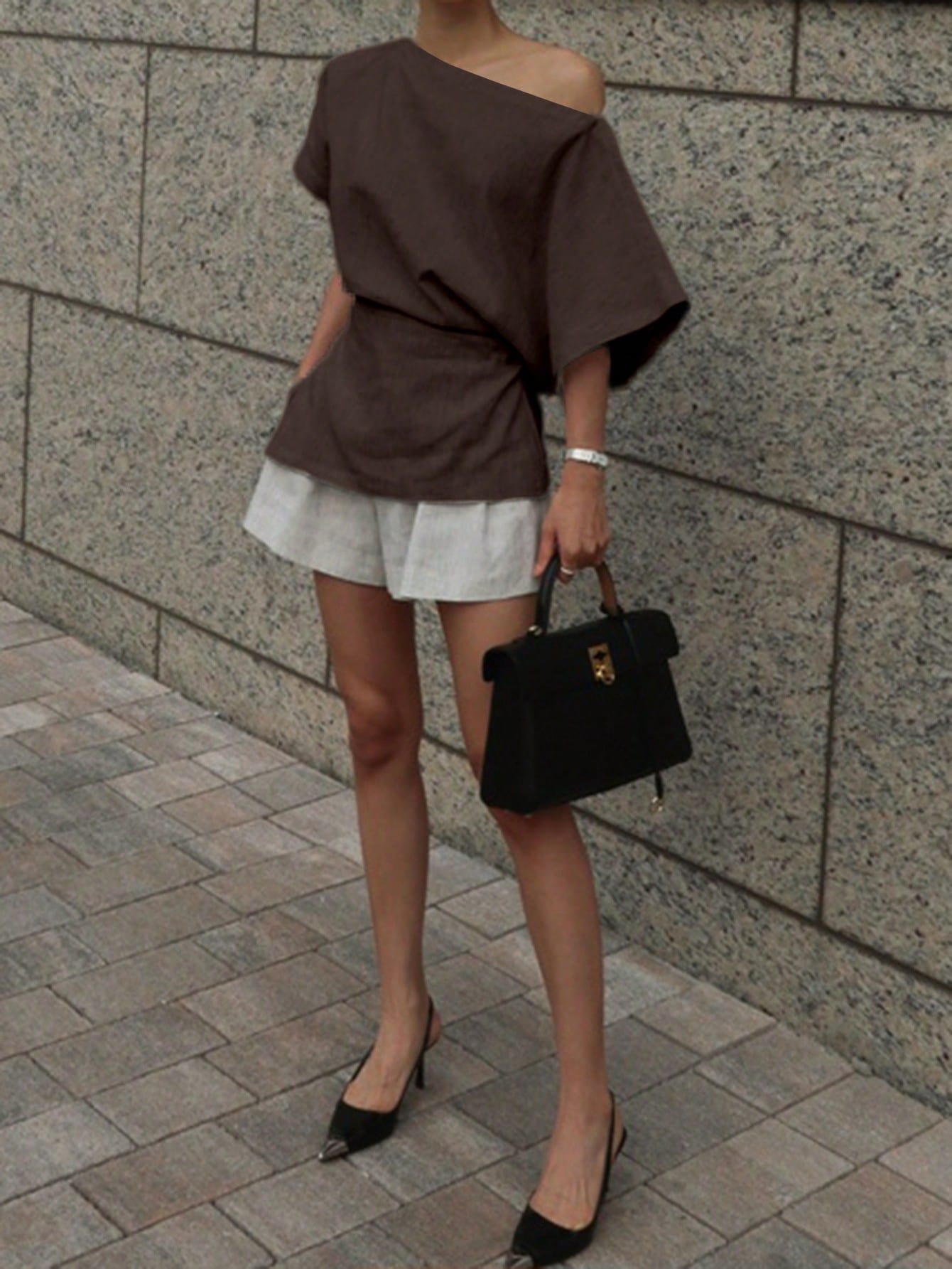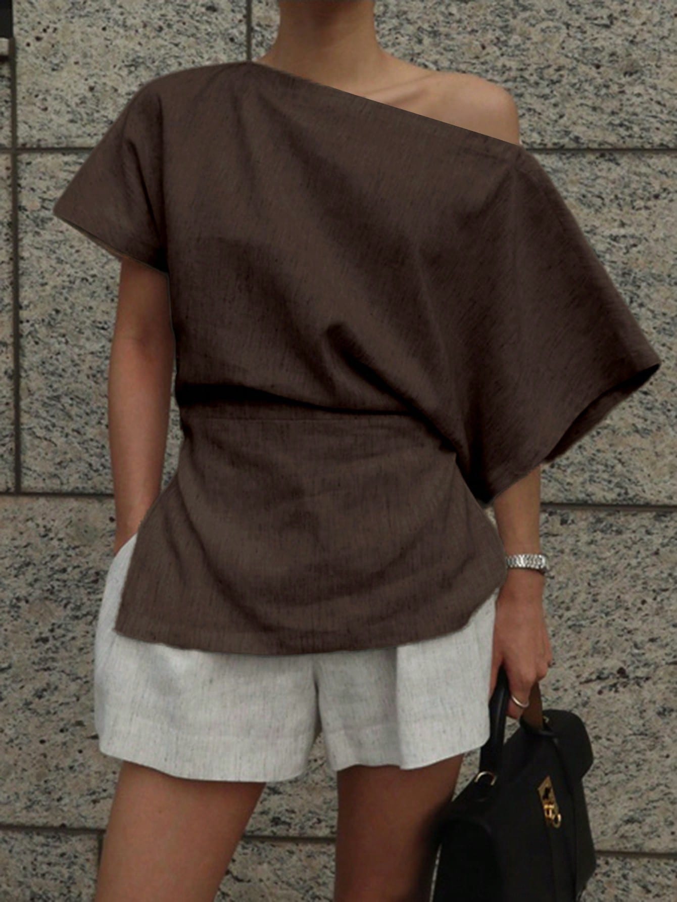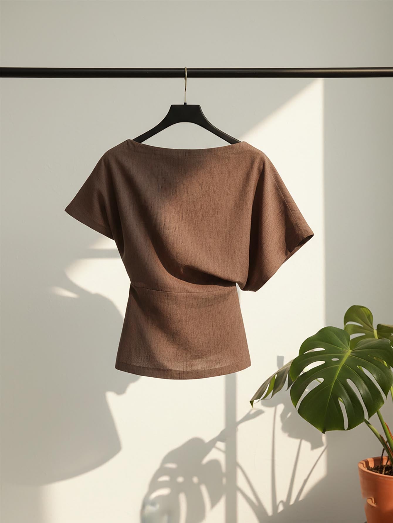 بلوزة نسائية أنيقة من الكتان بلون موحد من DAZY، بياقة غير متماثلة وأكمام واسعة، مستوحاة من موضة الألفية الجديدة.