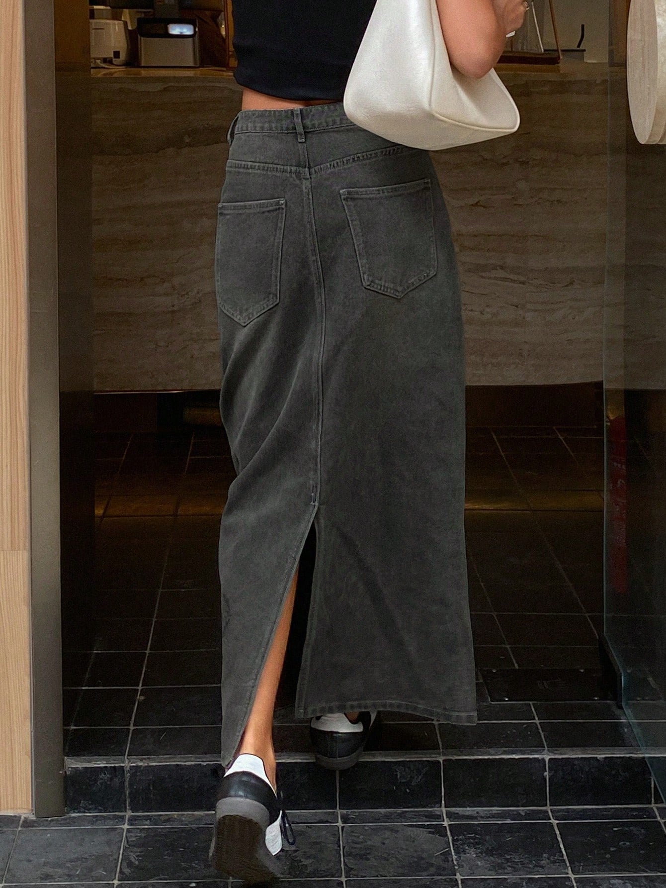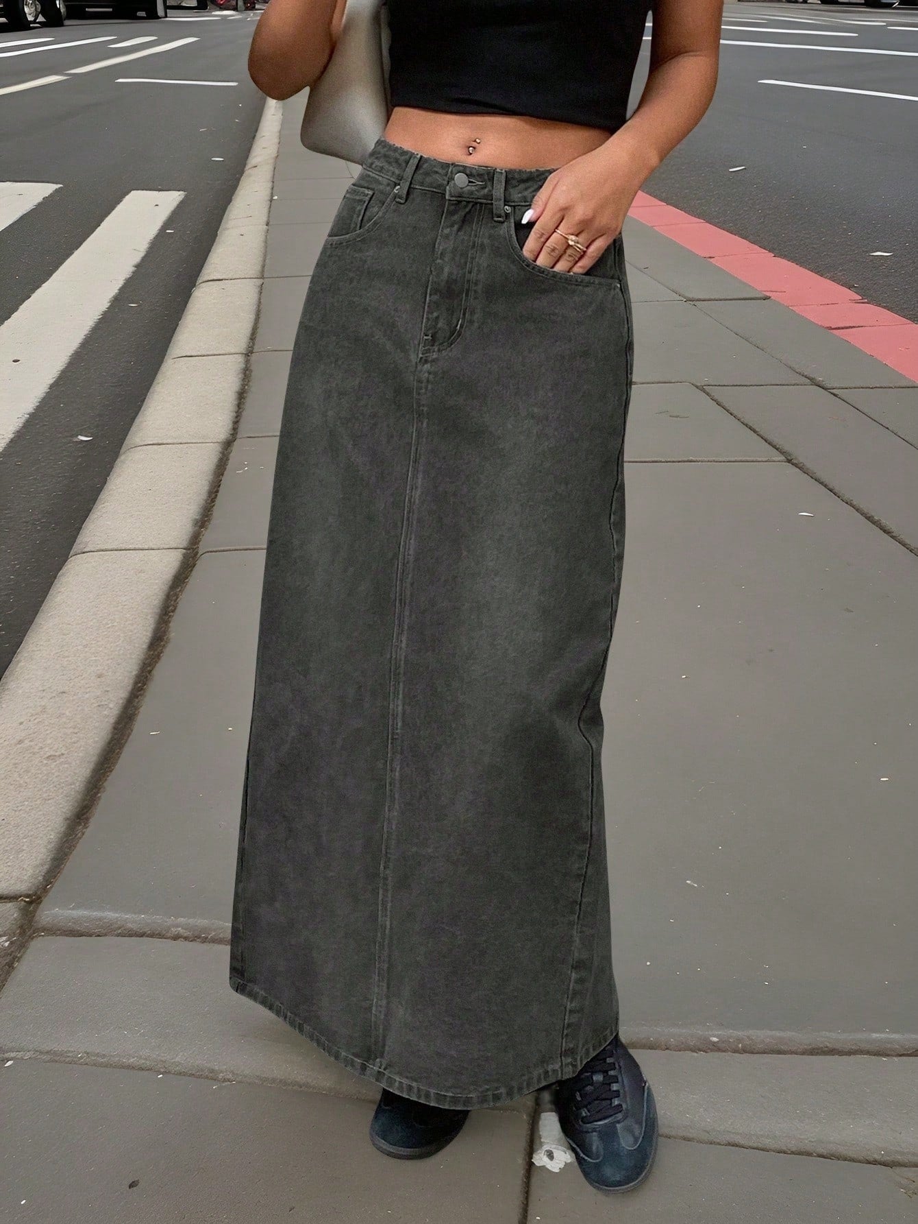 DAZY Women's Front Button Pocket Casual Denim Skirt Jeans Skirt